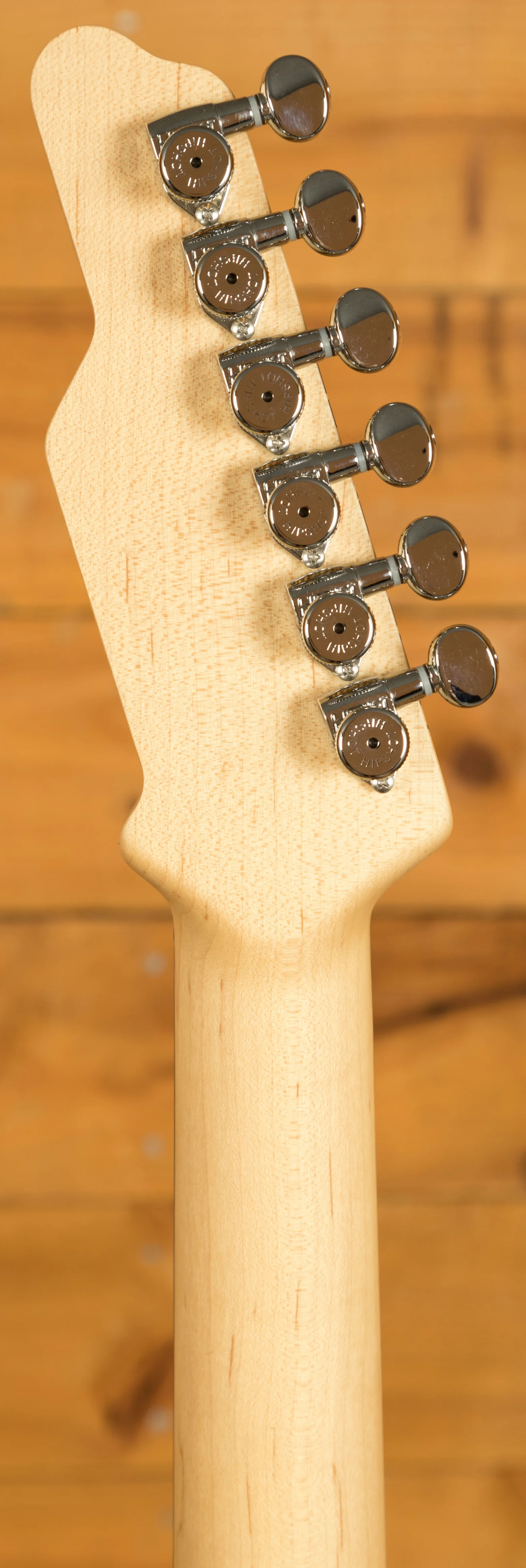 Neck and Fretboard: The neck is made from quartersawn maple, paired with an Indian rosewood fretboard. This combination provides exceptional stability, smooth playability, and a warm, rich tonal character. The fingerboard also features a 10"-12" compound radius. The neck shape is Tyler's "Standard" 64 profile, measuring .825" at the 1st fret and .950 at the 12th, and has "Narrow/Tall" frets.