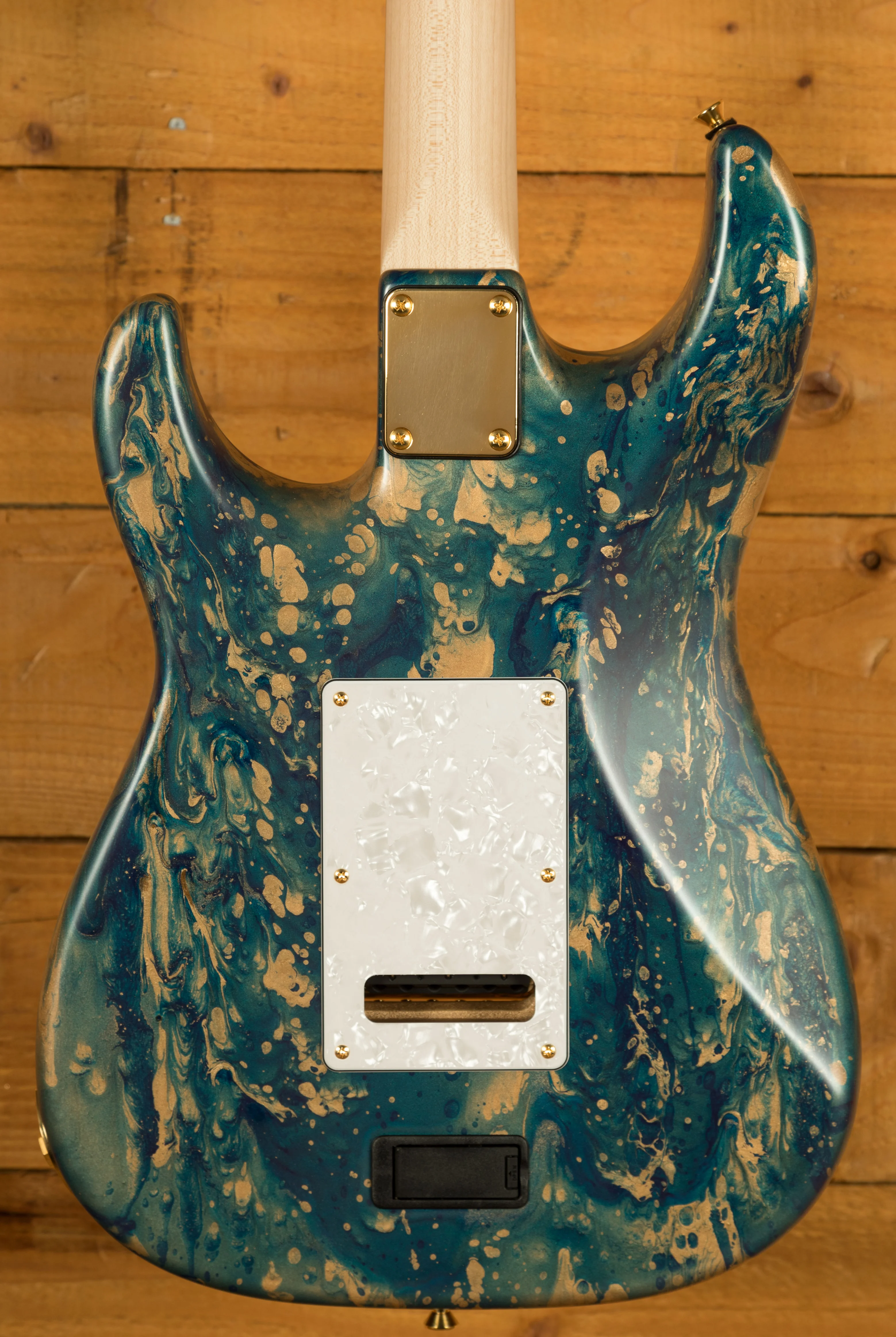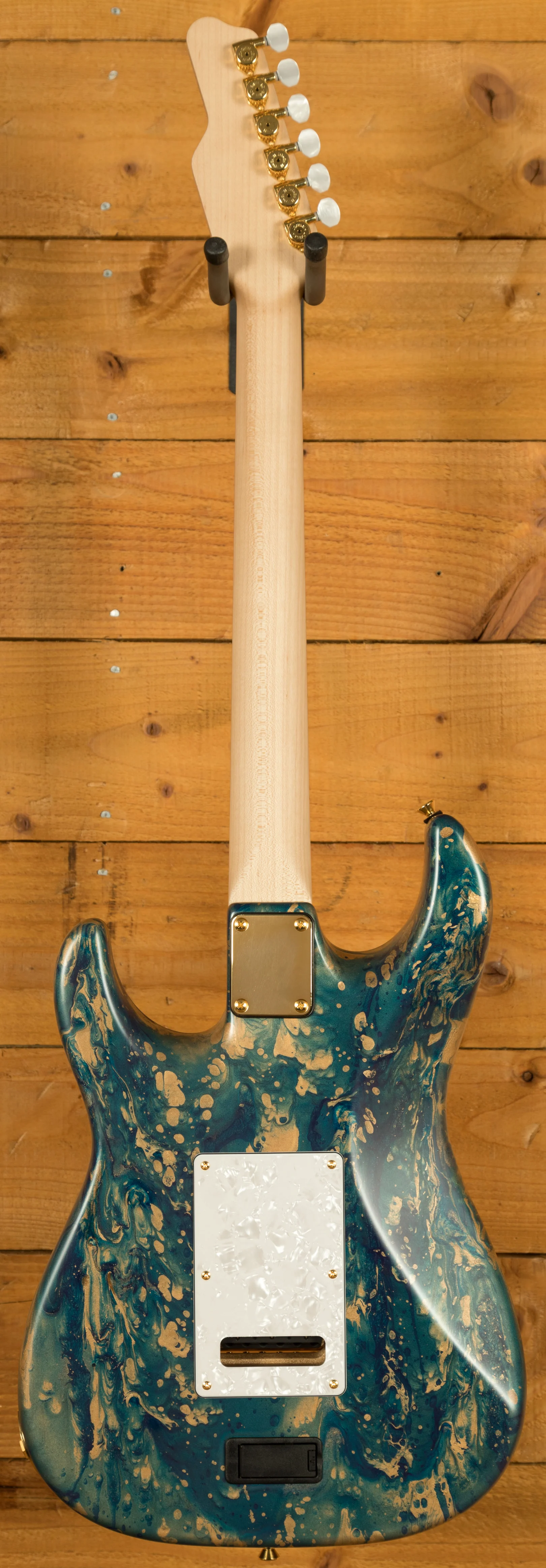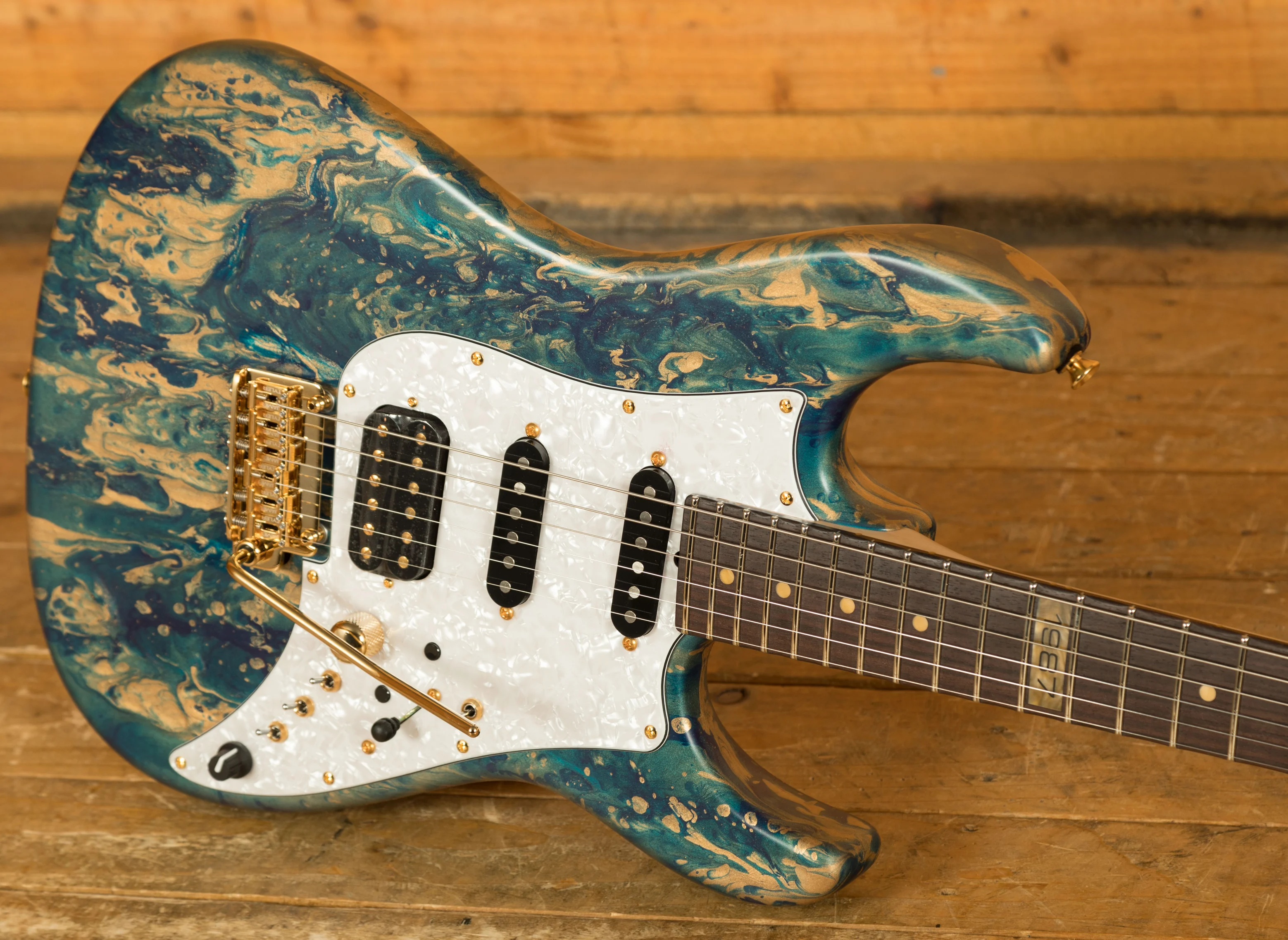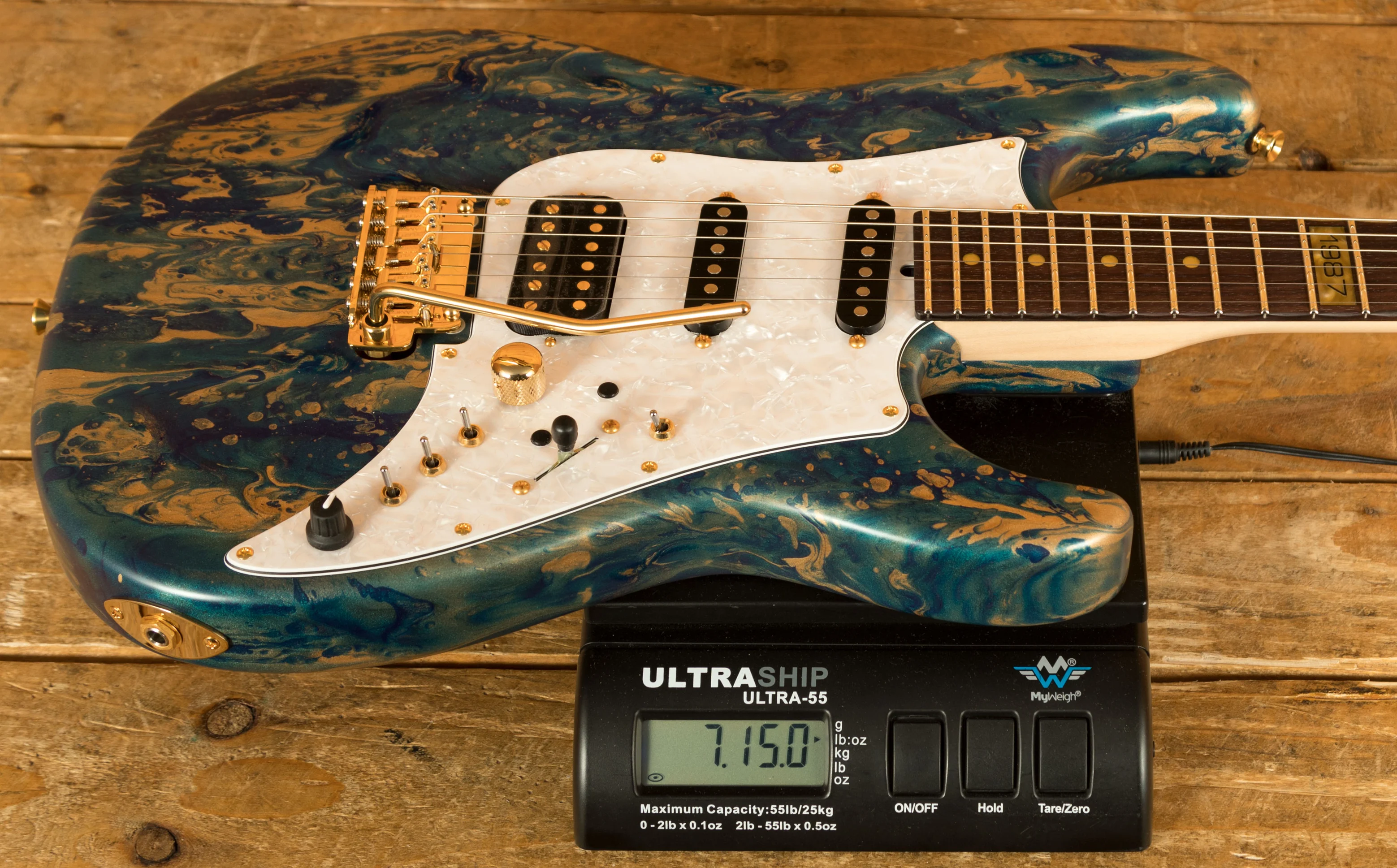 Body: The Studio Elite 1987 is crafted from solid Mamywo, a light wood that gives a nice raise in the mid frequencies. Finished in a semi-gloss Malibu Beach Shmear with faux matching headstock, this model commemorates the 35th anniversary of James Tyler Guitars
