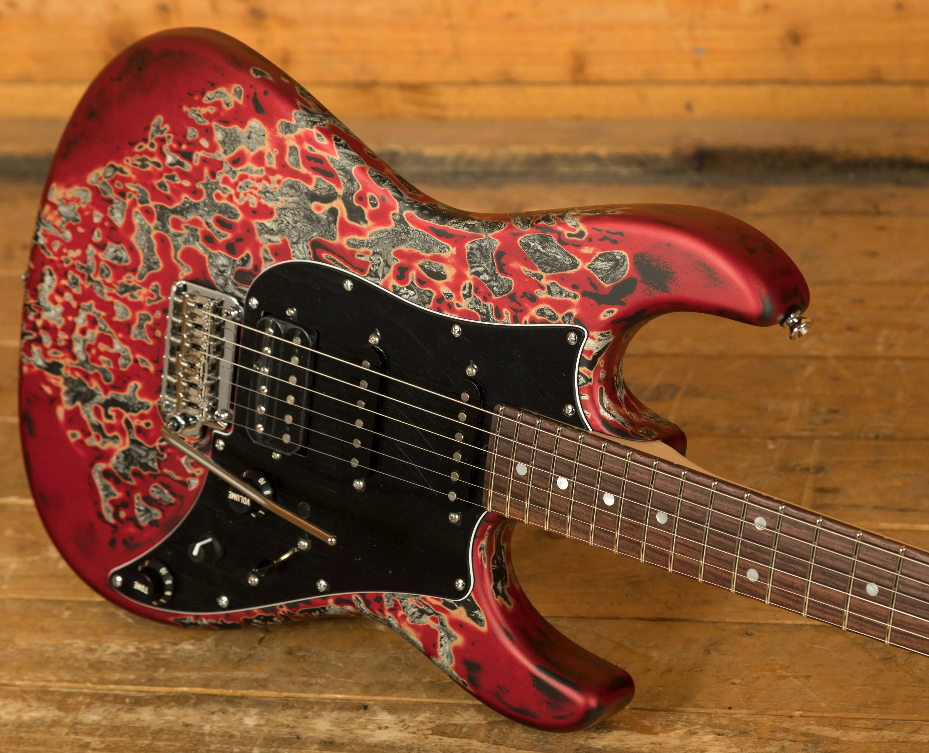 The body of the Burning Water 2K is made from solid alder, providing a balanced tone with tight lows and punchy mids. The neck is made from quartersawn maple for added stability, paired with an Indian rosewood fretboard that offers smooth playability and warmth. Featuring a comfortable Standard neck, this guitar feels amazing to play on with a 1959 Oval neck shape measuring .845" at the 1st fret and .975" at 12th. A 10"-12" compound radius helps to keep chords easy to fret on the lower frets and stops bends fretting out on the higher frets. Paired with a 1 5/8" nut width and wide/tall frets for a familiar feel. The guitars look is completed by a multilayer black/white/black pickguard, which contrasts beautifully with the finish.