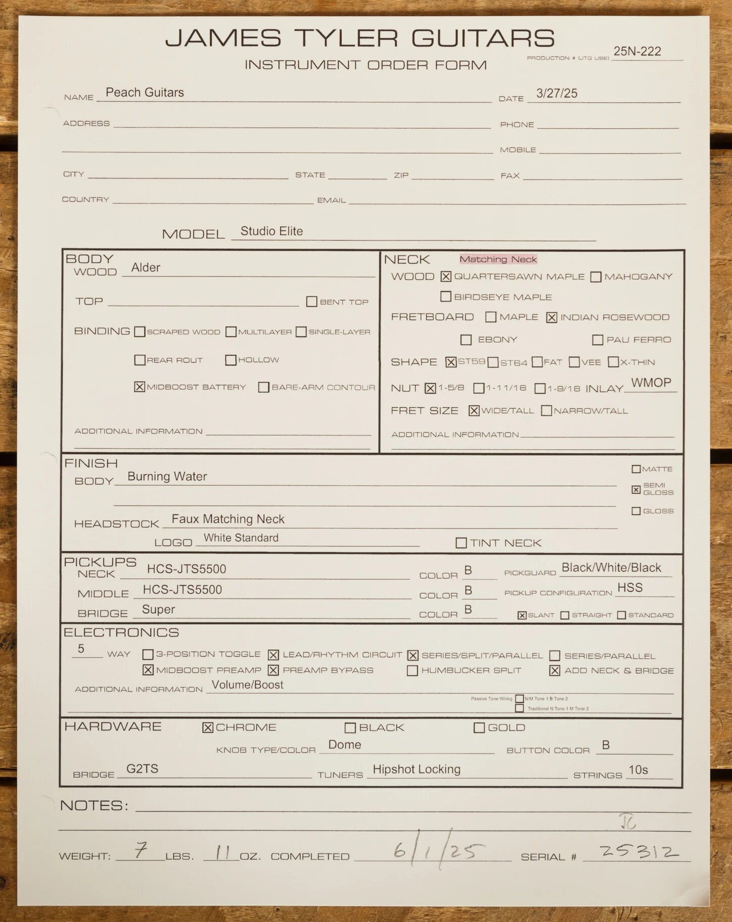 Amongst the Studio Elite models, the Burning Water stands as one of the most iconic creations from James Tyler Guitars. Originally developed for renowned session guitarist Michael Landau, it was named after Landaus band at the time. This variation of the Burning Water guitar includes a Faux Burning Water finish on the neck and headstock and a plethora of James Tyler electronics under the helm, bringing this guitar to new heights.