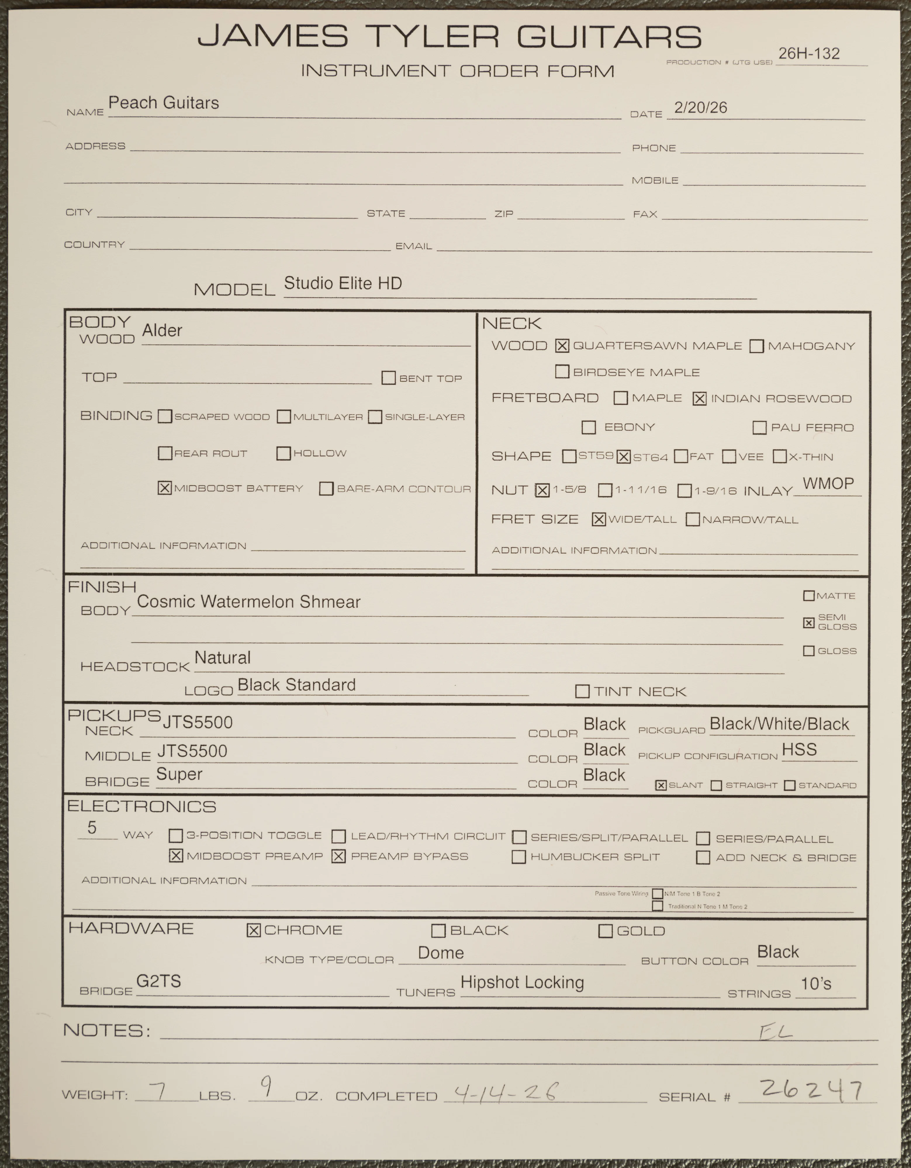 The Studio Elite models are the pinnacle of James Tyler Guitars' offerings, incorporating years of feedback from some of the most respected studio and live musicians in the world. These guitars are designed with both form and function in mind, making them the ultimate electric guitar for professionals. Whether you're recording in the studio or performing on stage, the Studio Elite delivers uncompromising sound and performance.