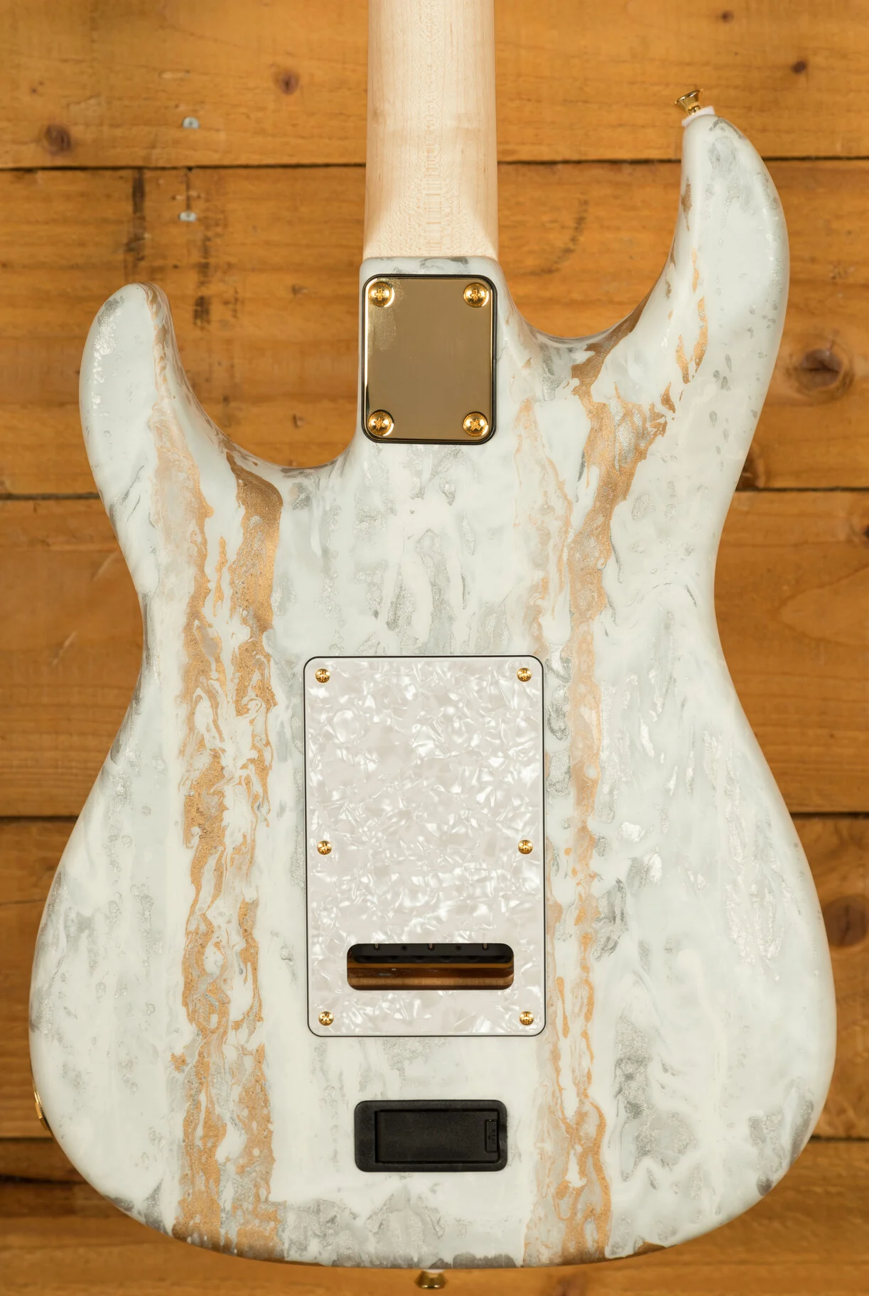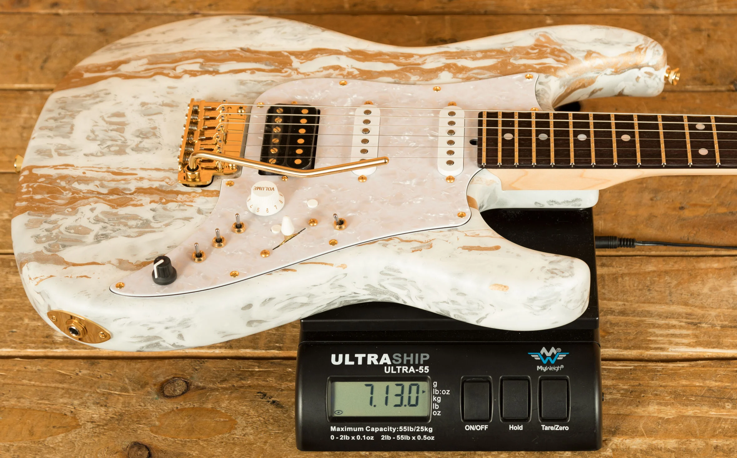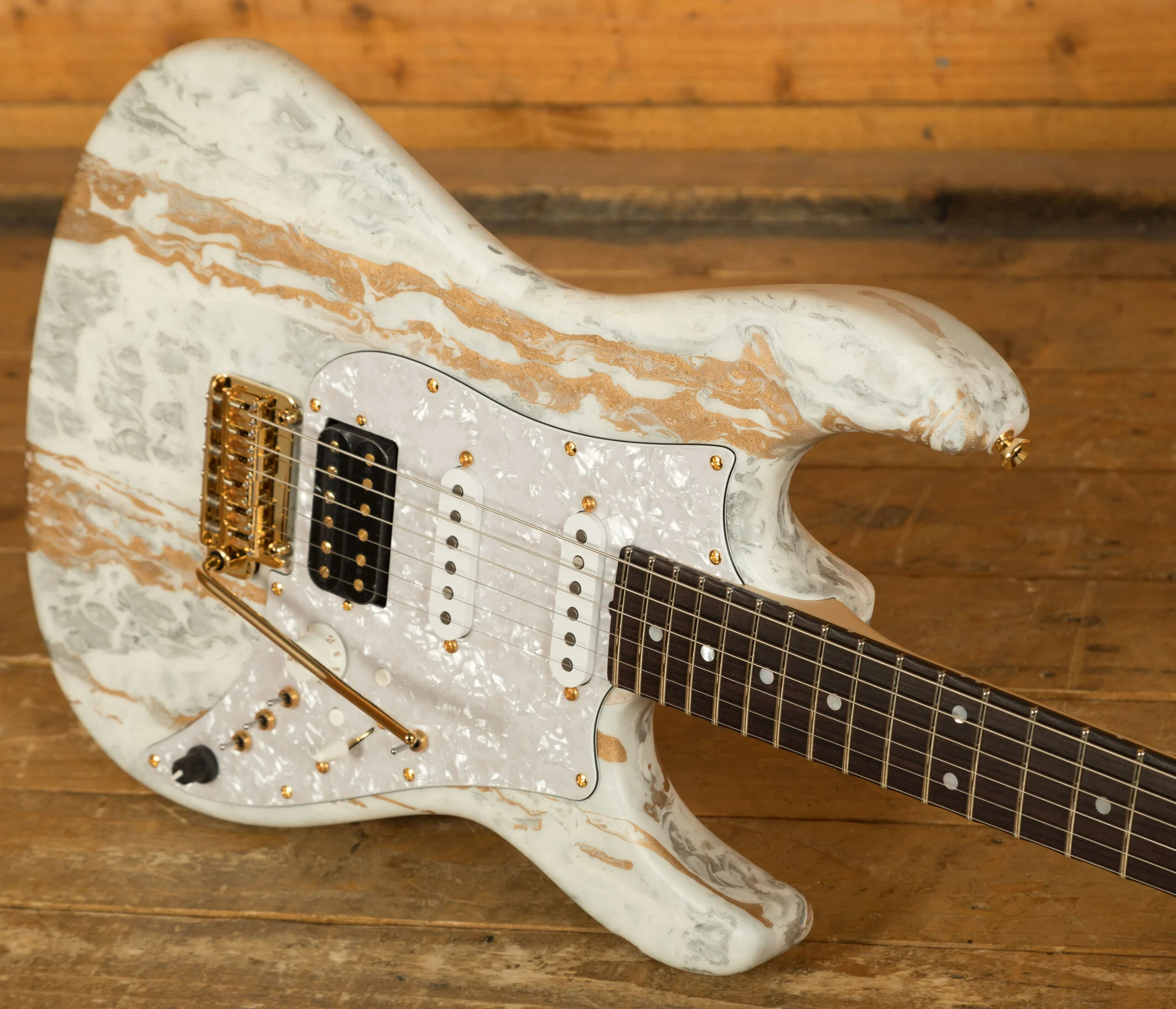 Body: The Studio Elite is crafted from solid alder, a tonewood known for its balanced tonal response and light weight. This gives the guitar a lively resonance and a clear, punchy sound. Finished in a matte White Shmear, this regal looking guitar screams ultimate quality.