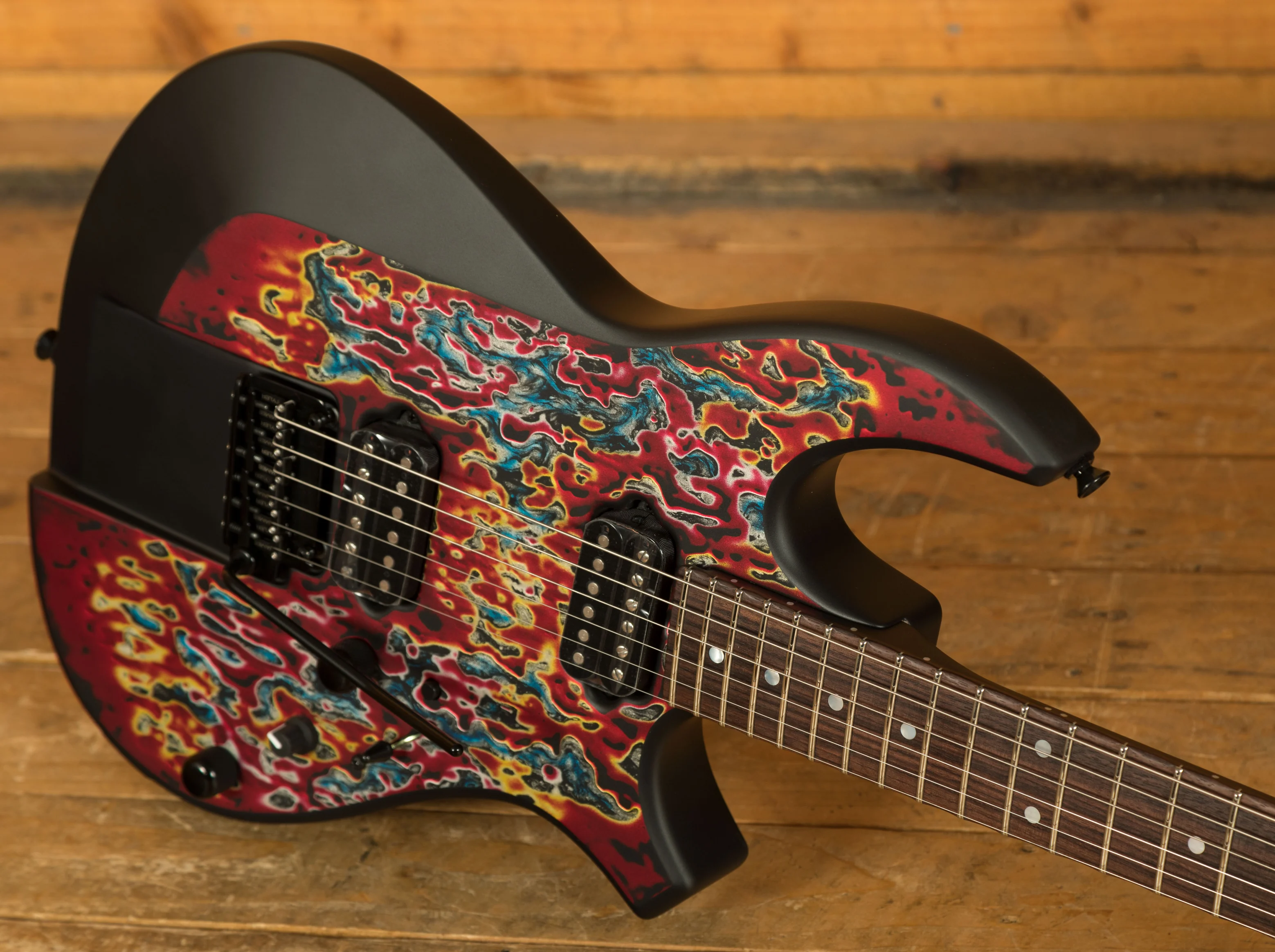 Pickups: Equipped with a pair of humbuckers, the Ultimate Weapon HD brings with it even more of an edge. The Retro Reverse in the neck position delivers a PAF-like character with a warm, clean tone and a sweet top end that stays clear without being too bright, even in the mids; it offers smooth, creamy overdrive with classic voicing and great articulation. Paired with the Shark bridge pickup - bringing with it a tight low end, balanced mids with a satisfying bark, and sweet, singing highs.