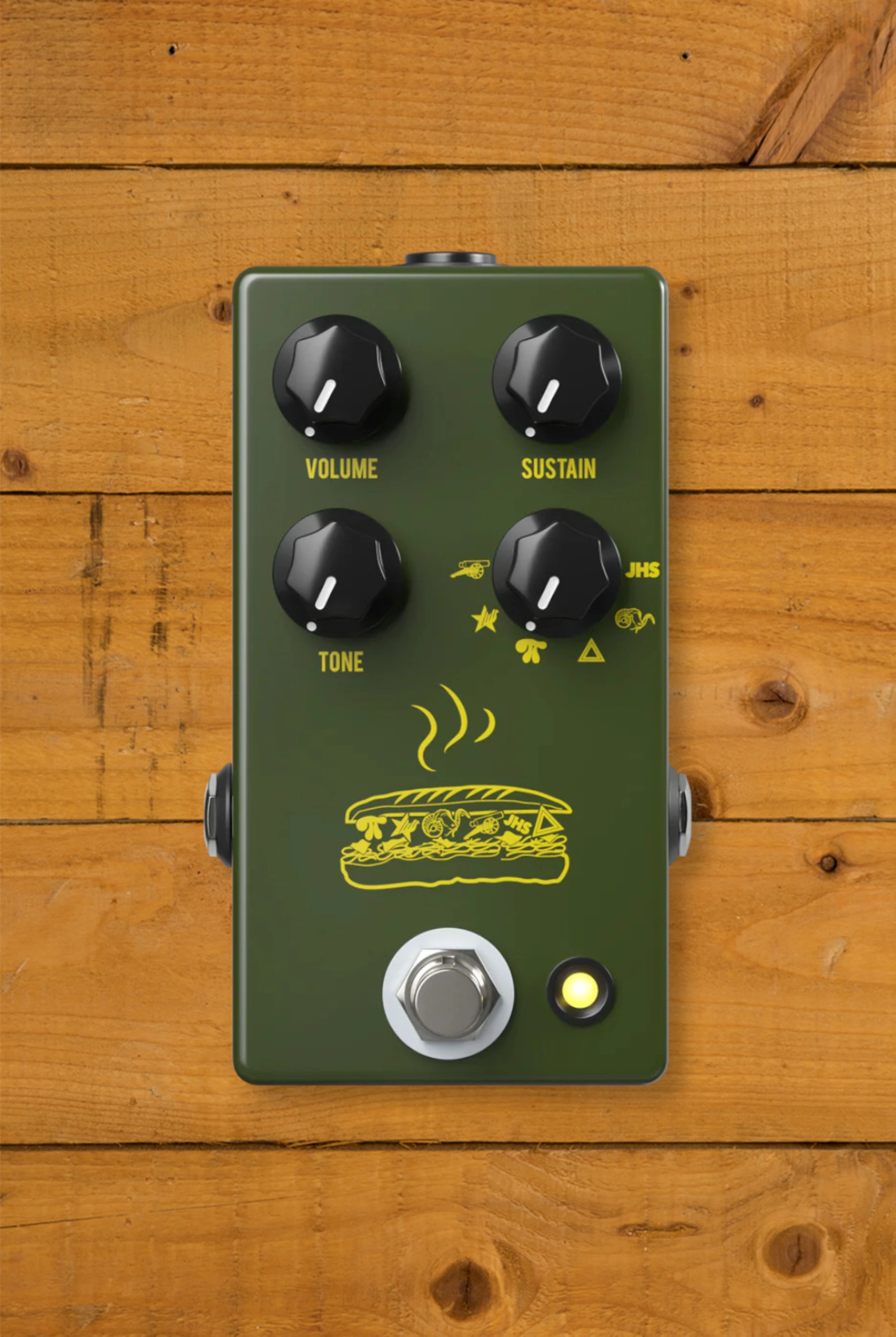 The JHS Muffuletta is a tribute to the legendary Big Muff fuzz, packing six distinct analog circuits into a single compact pedal. Each mode replicates a classic era of the Big Muff, plus one original JHS voicing - all executed without digital emulation. Whether you're chasing vintage sustain or modern punch, the Muffuletta delivers iconic fuzz tones with unmatched versatility.