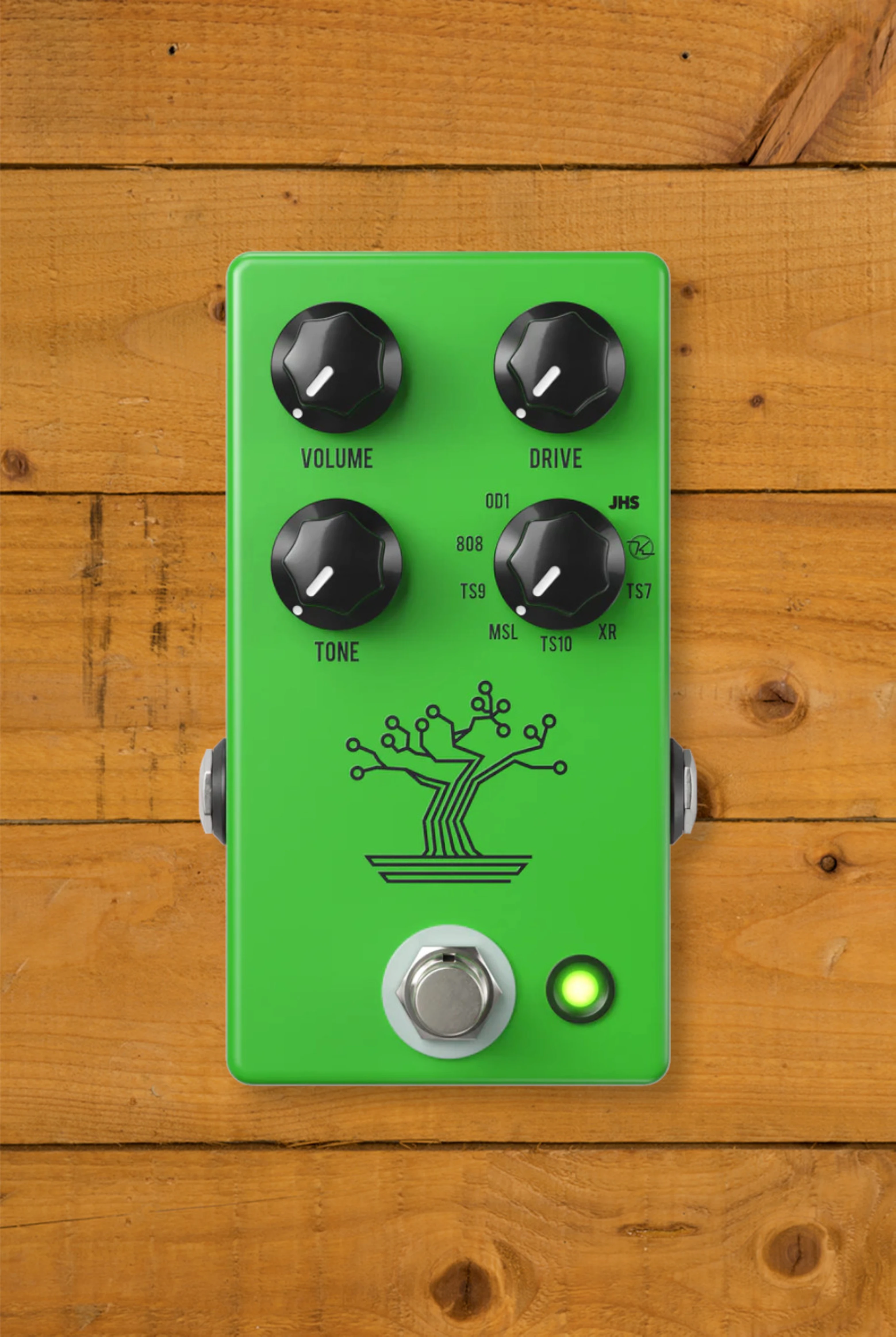 The JHS Bonsai is a comprehensive homage to the Tube Screamer legacy, housing nine distinct analog recreations of classic and rare TS-style circuits. Each mode is built with discrete components to match the original schematics, preserving the unique tonal nuances and clipping characteristics of each version.