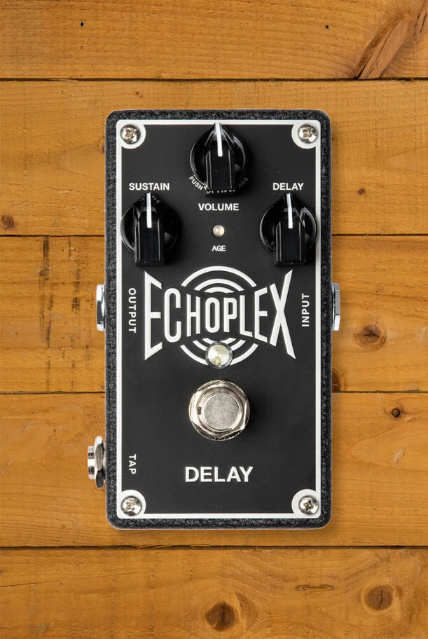 That's where the EP103 Echoplex Delay comes in. It's the size of a Phase 90, and it delivers the EP-3's legendary tones with a simple control interface and a hi-fi all-analog dry path. The Delay control sets the time between repeats - from 65ms to 750ms - the Sustain control sets the number of repeats, and the Volume control sets the output level of your repeats.