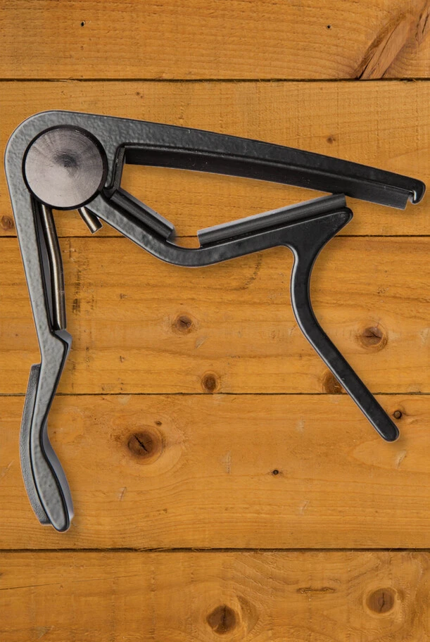 The Dunlop Trigger Capo allows you to quickly and easily change key with a squeeze of the hand. This capo's strong spring-action clamp keeps it firmly in place, while its slim profile ensures that you can play up and down the fingerboard unhindered. Special padding protects your instrument's neck from scratches. Made from lightweight aircraft-grade aluminium, the Trigger Capo is a must on the road when you need to change key on the fly.