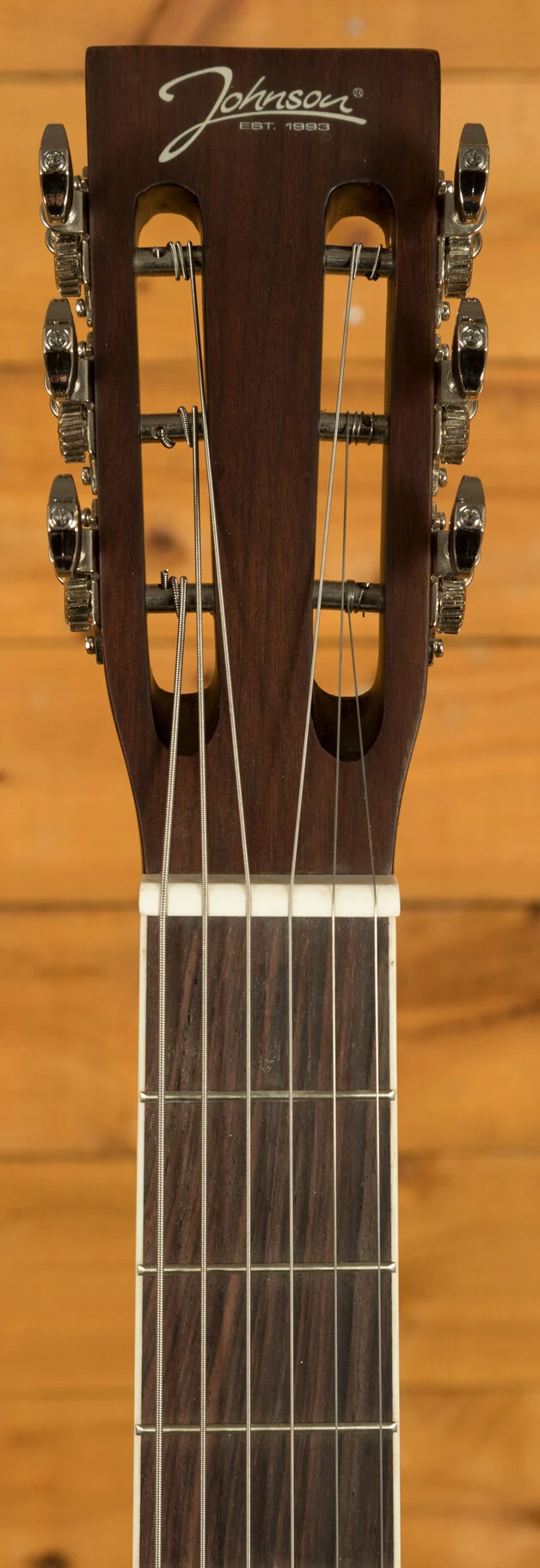 The satin-finished Mahogany neck, paired with a Rosewood fingerboard. Designed for lap-style playing, square neck resonators are typically held flat on the lap and played with a slide. Due to the neck profile and high action, this guitar isn't designed to be fretted but is perfect for slide techniques and open tunings. With a 50mm bone nut and a 25.5-inch scale length, the Johnson 999SQE feels familiar and comfortable for most guitarists.