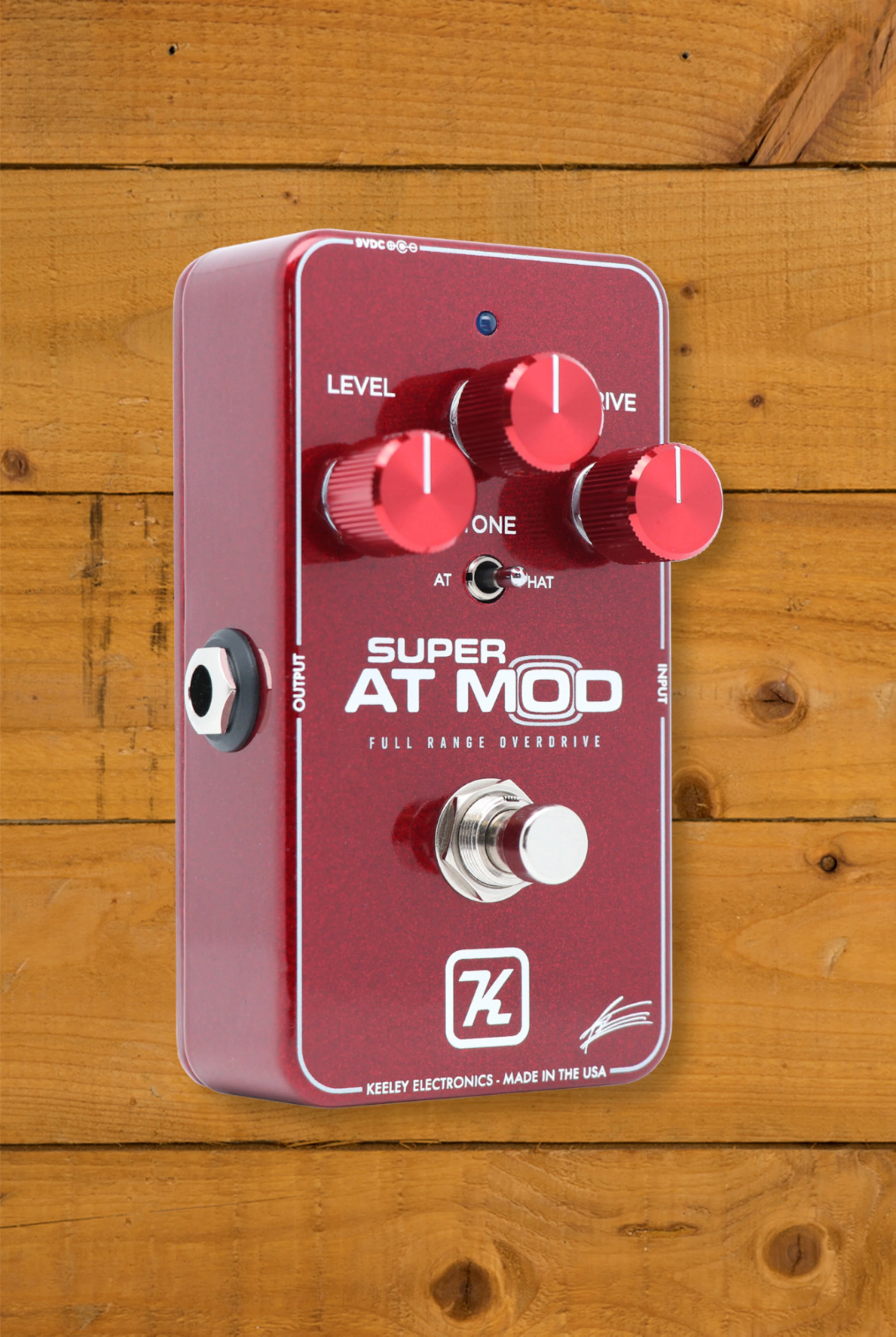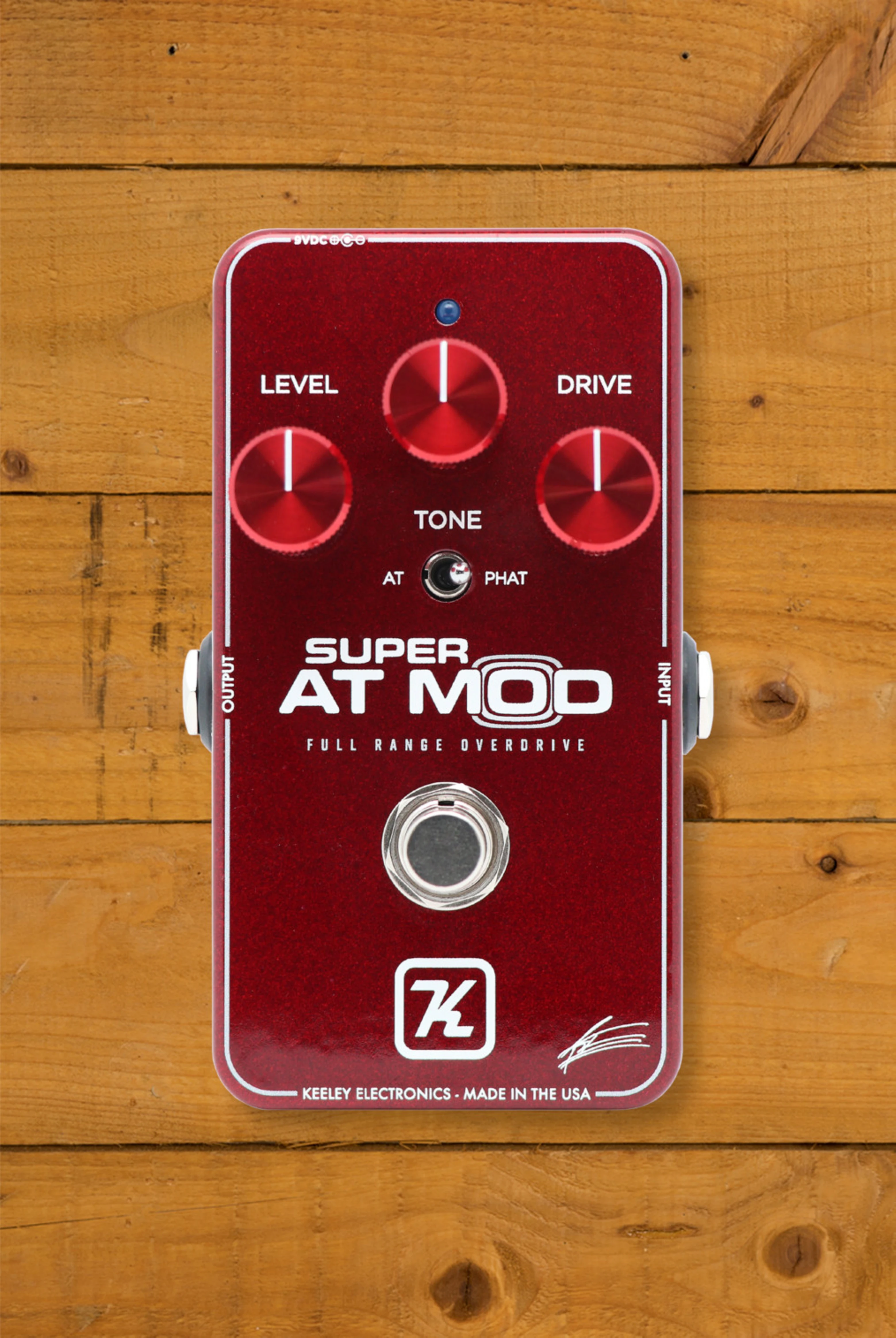 Introducing the Super AT Mod Overdrive - the ultimate overdrive pedal for guitarists who crave exceptional tone and performance. This Andy Timmons Signature Modded Blues Driver pedal, made by Keeley, captures the magic of the original Blues Driver Phat Mod with the addition of AT Mode. This limited edition pedal is one of only 1000 made worldwide, and provides slightly broken up/clean tones and amp-like overdrive. With an asymmetrical tube-style clipping using JFET transistors, the Super AT Mod Overdrive is an amp-in-a-box that responds just like a tube amp. The new Super AT Mod Overdrive features a return to RK's original clipping style, a 20-year-old modification first performed in the Keeley Blues Driver Phat Mod. The added Tone switch provides 2 modes: AT for Humbuckers with lower mid-bass frequencies for a tighter, more transparent response, and Phat for single coils, which adds a slight bass boost. True Bypass Switching and made in Edmond, USA, this pedal is powered by a regular 9V DC PSU.