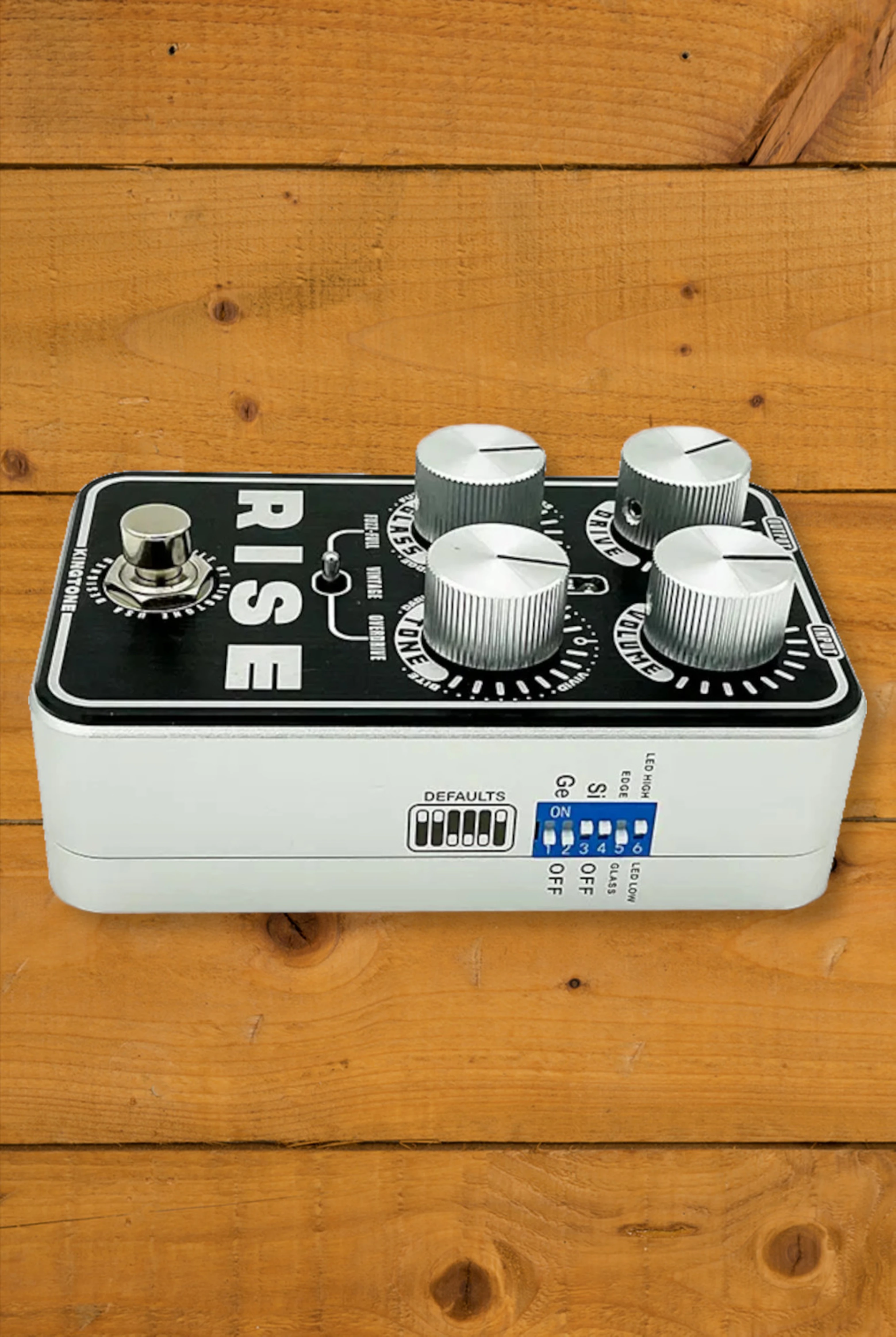 The RISE takes the germanium treble booster out of the past and into the present with its latest reimagining. This pedal has an amazing range of sounds and functions as a clean boost, an overdrive, or a fuzz - and everything in between - with easily accessible and highly versatile controls.