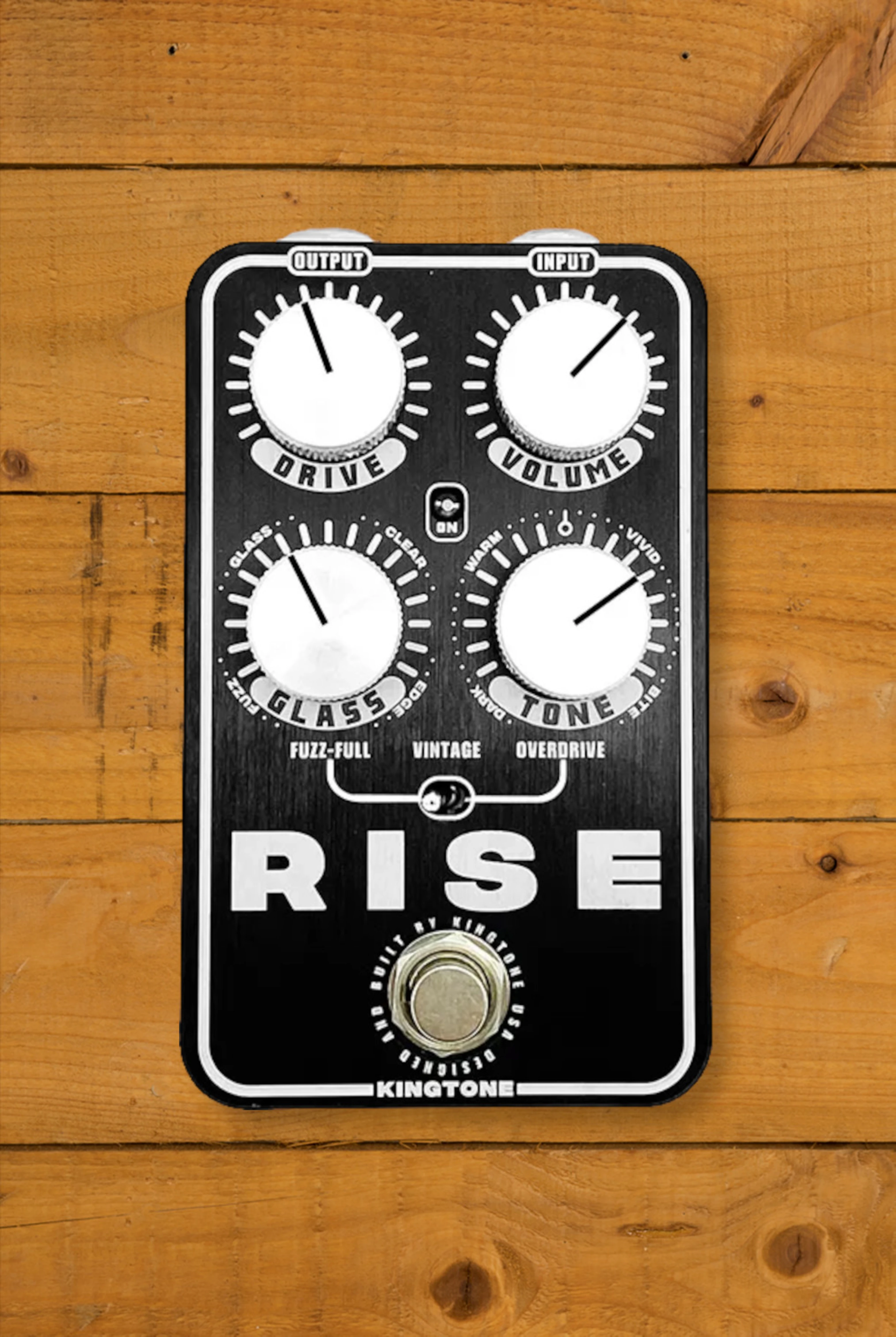 The Glass control adds more versatility to this pedal's tonal array and lets you take it from fuzz to bright glassy clean tones all the way to the edge of breakup. This can be further enhanced by the glass/edge dipswitch on the side. KingTone also included in this pedal the ability to choose between germanium and silicon diodes so that users can take advantage of each transistor's unique characteristics. The Rise also includes a 3-way voicing switch which essentially lets you choose which mode you want to emphasise - full on Fuzz, classic Overdrive, or Vintage which is based on the authentic germanium treble boosters of the past.
