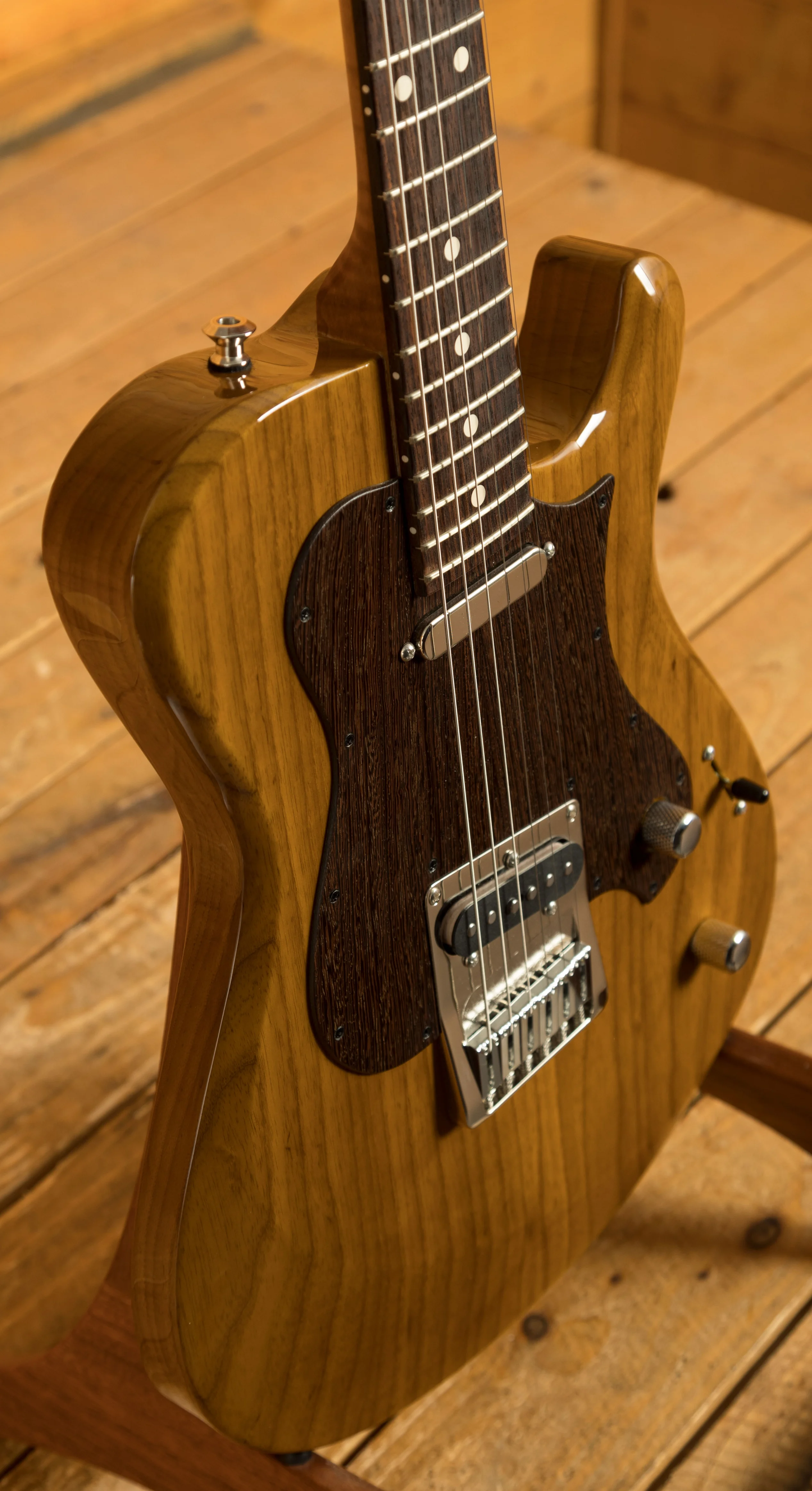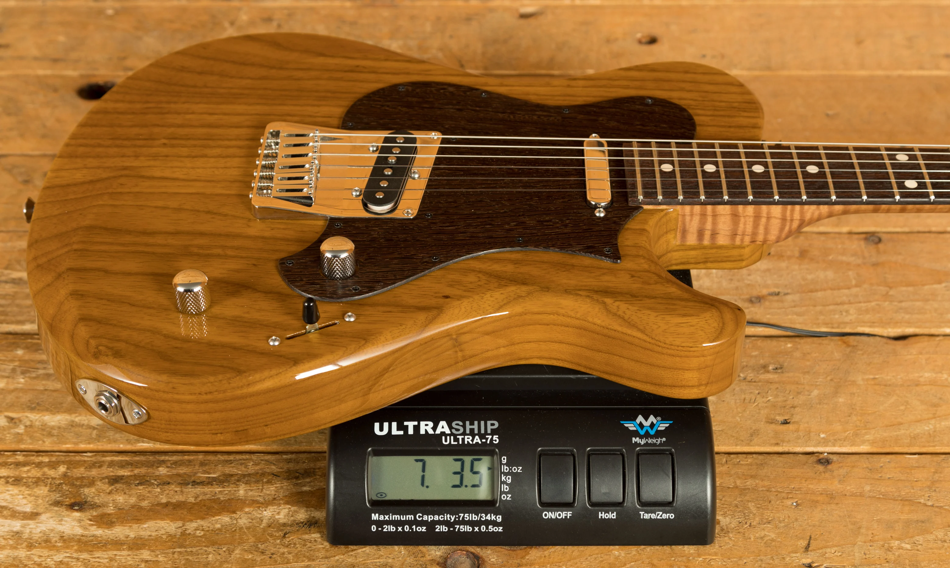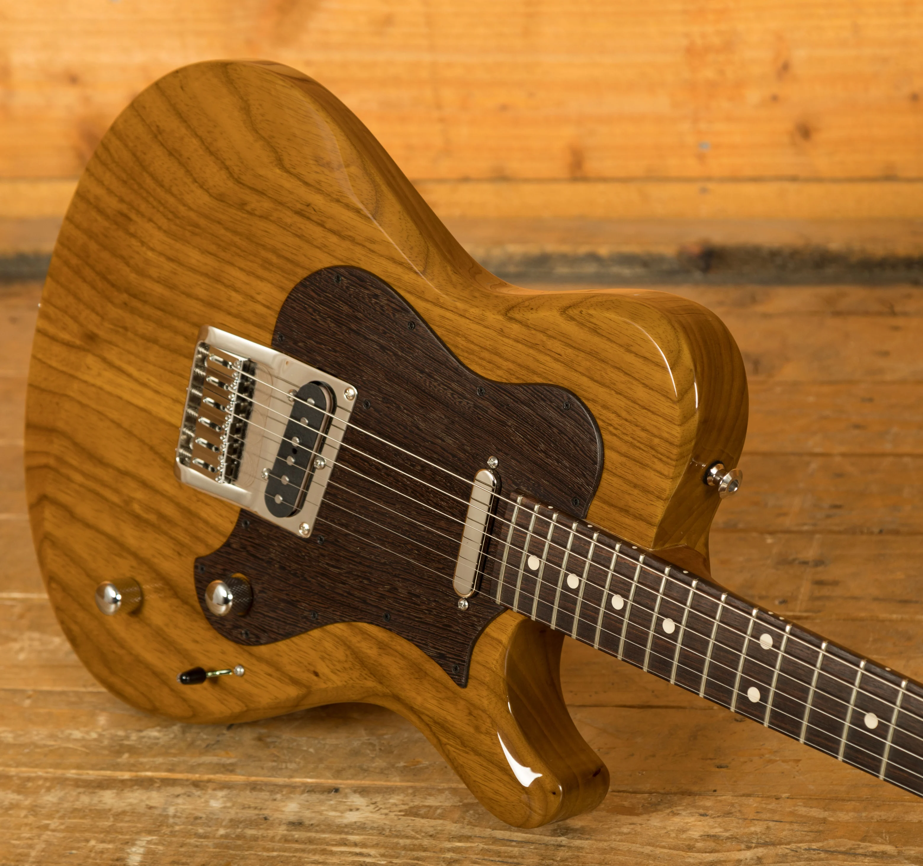 Constructed with precision, the Knaggs Choptank features a roasted Swamp Ash body, stained Butterscotch with a gloss finish. Atop rests a Wenge pickgaurd, contrasting the Butterscotch body perfectly with its rich dark grain. The Tier 1 Roasted Figured Maple set-neck, measuring 25.5" in scale length, is complemented by an East Indian Rosewood fingerboard with a 8.5" radius, 22 frets, dot inlays, an ebony headstock veneer, and a bone nut.