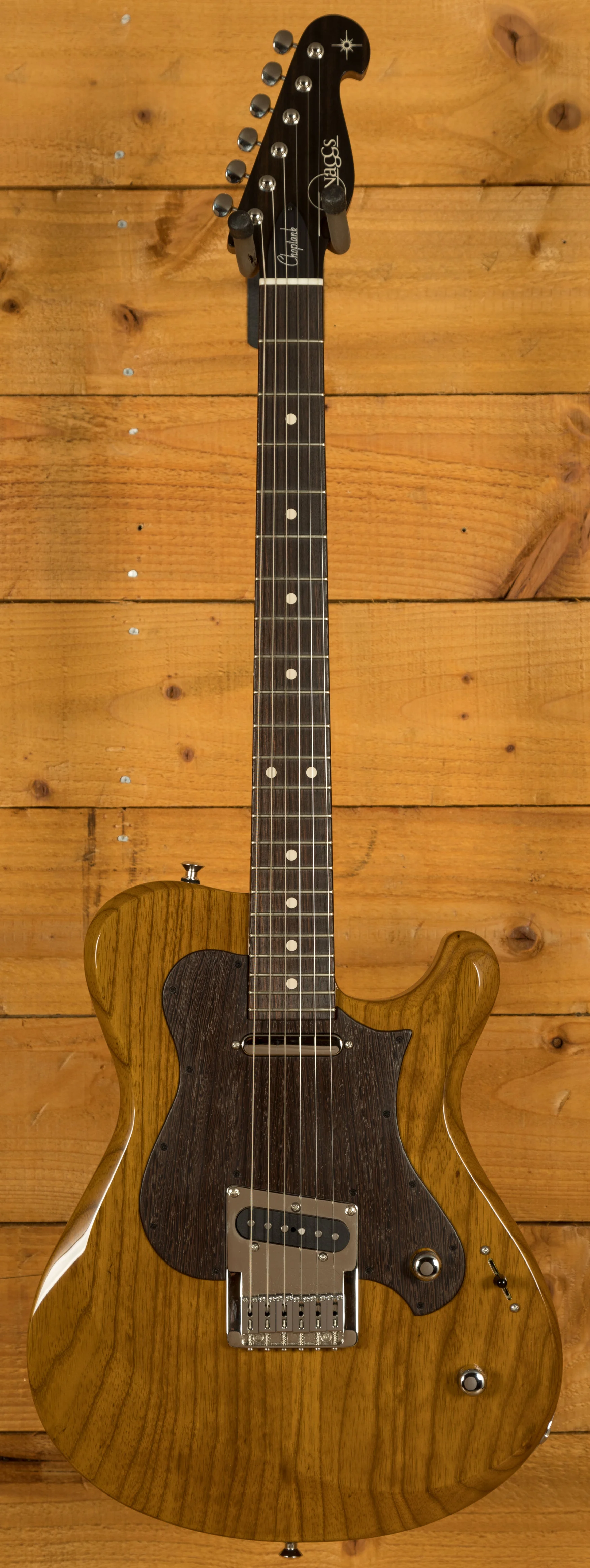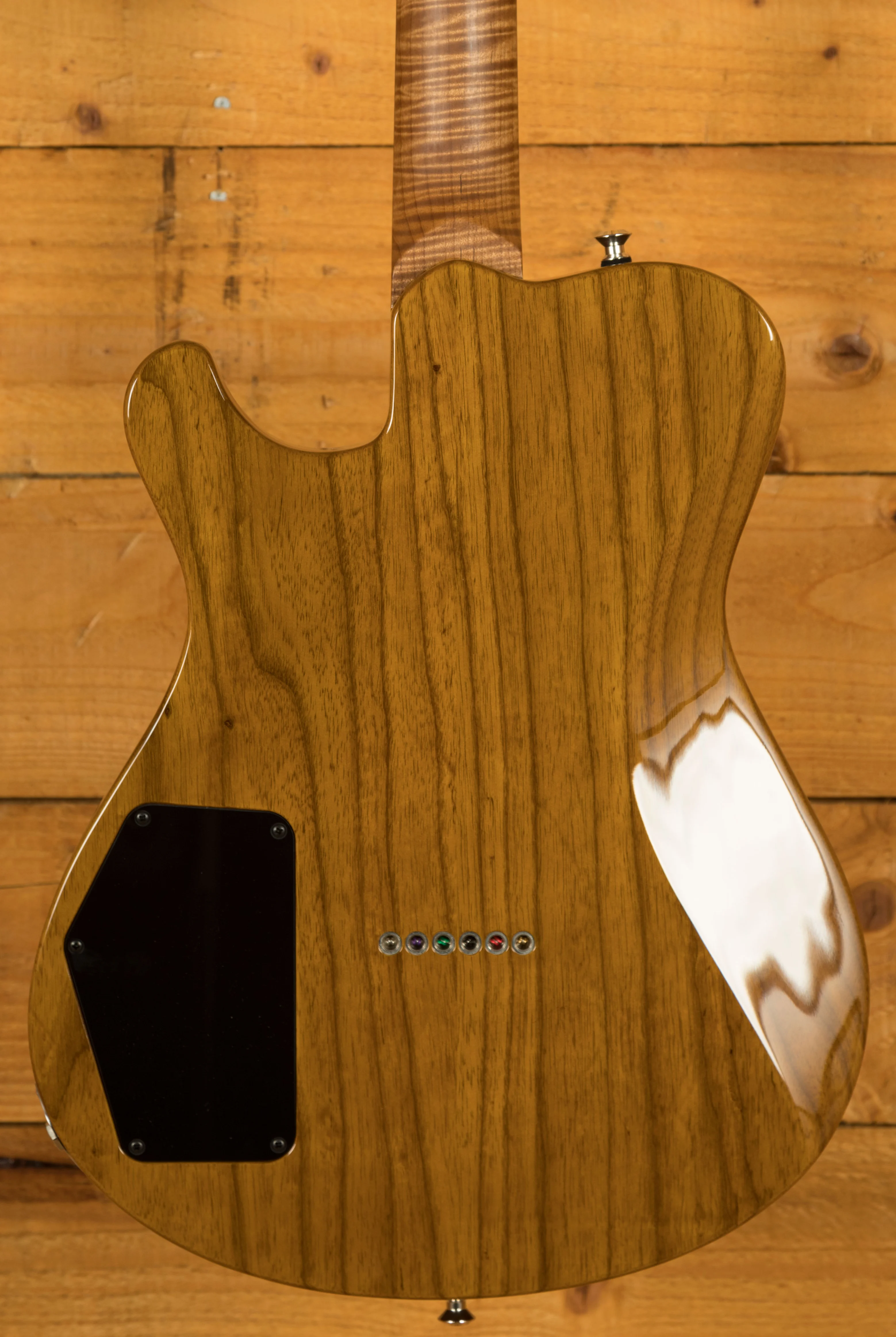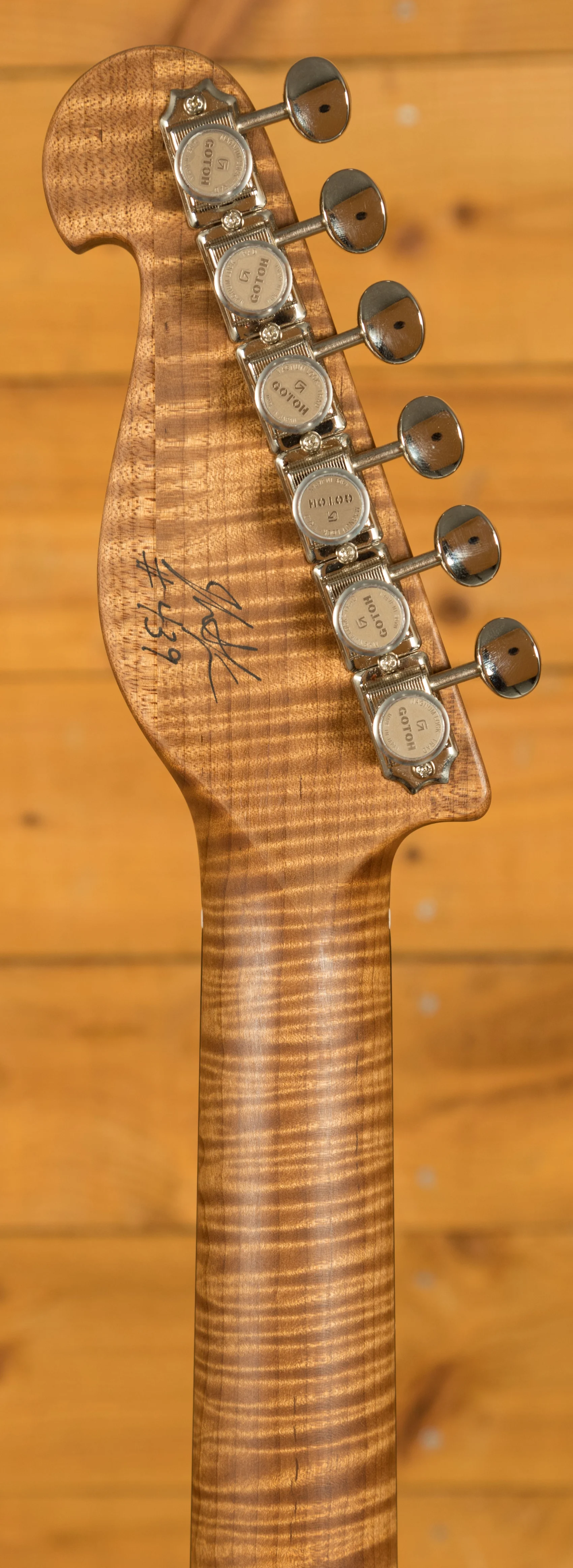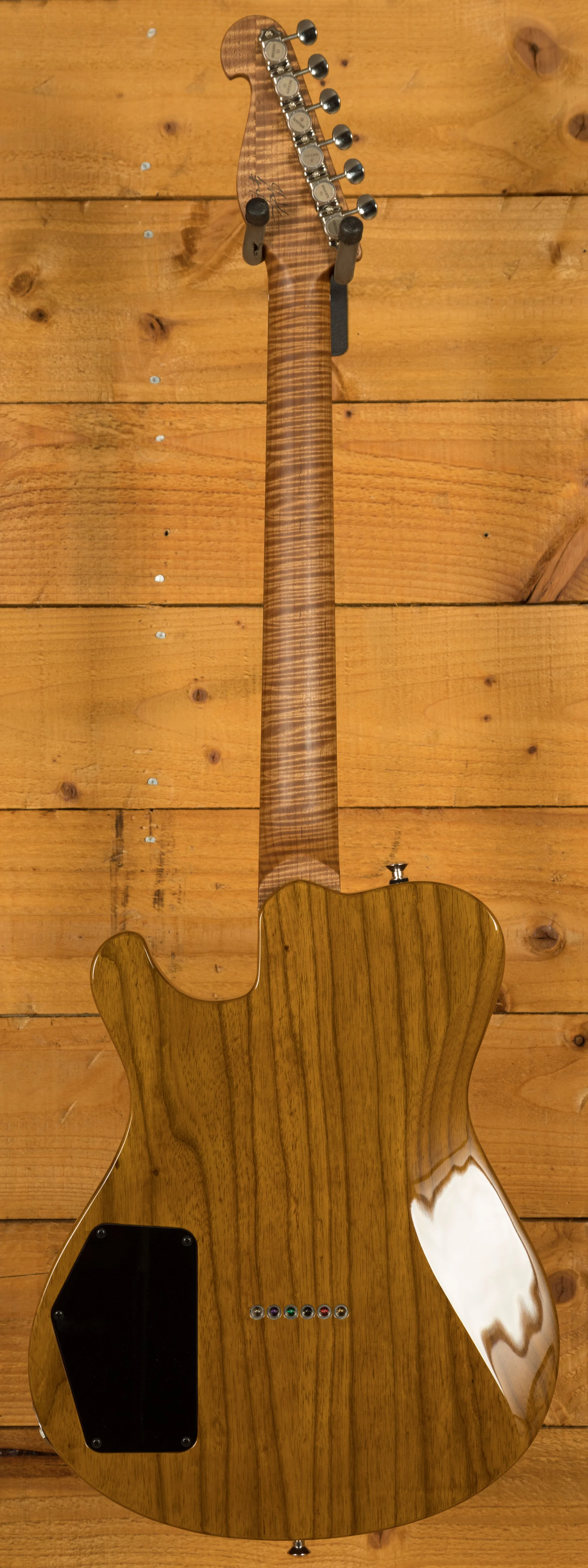 Constructed with precision, the Knaggs Choptank features a roasted Swamp Ash body, stained Butterscotch with a gloss finish. Atop rests a Wenge pickgaurd, contrasting the Butterscotch body perfectly with its rich dark grain. The Tier 1 Roasted Figured Maple set-neck, measuring 25.5" in scale length, is complemented by an East Indian Rosewood fingerboard with a 8.5" radius, 22 frets, dot inlays, an ebony headstock veneer, and a bone nut.