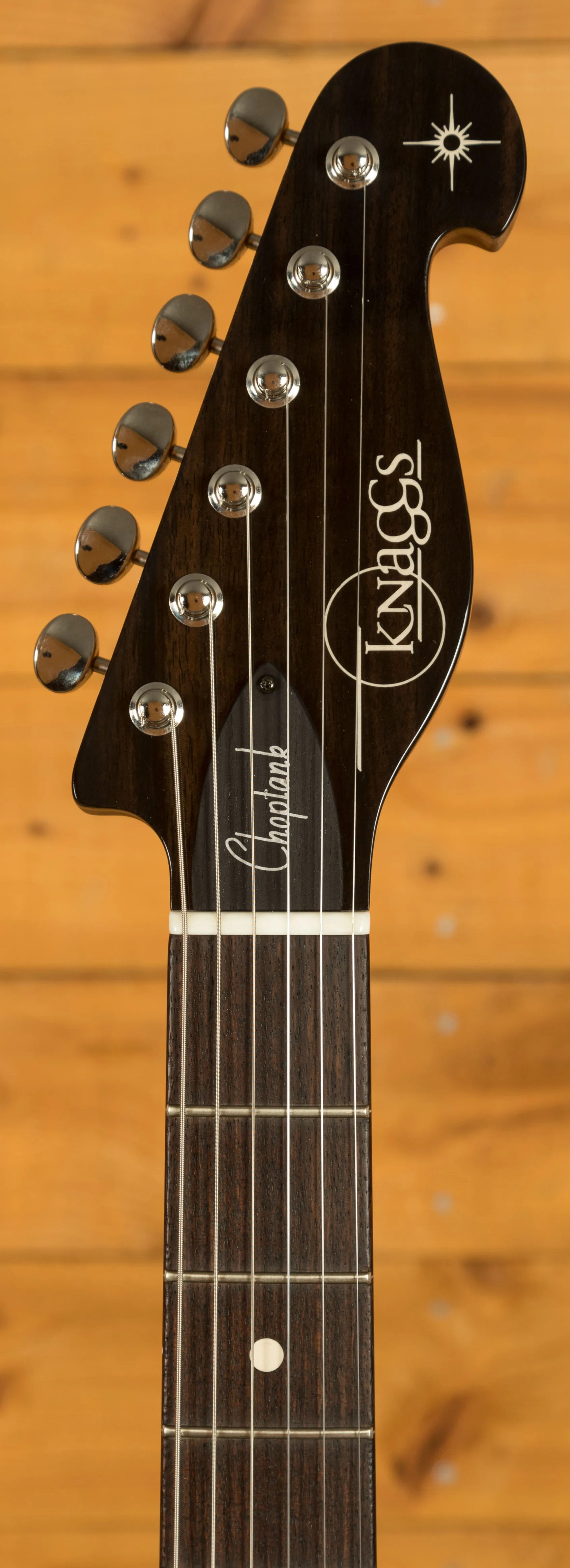 The hardware of the Knaggs Choptank is equally impressive, featuring a Knaggs Chesapeake Hard Tail Bridge, Gotoh Locking Tuners, and Dunlop Strap Locks. With these top-tier components and the craftsmanship synonymous with Knaggs Guitars, the Choptank stands as a testament to the brand's commitment to producing instruments of the highest standard.