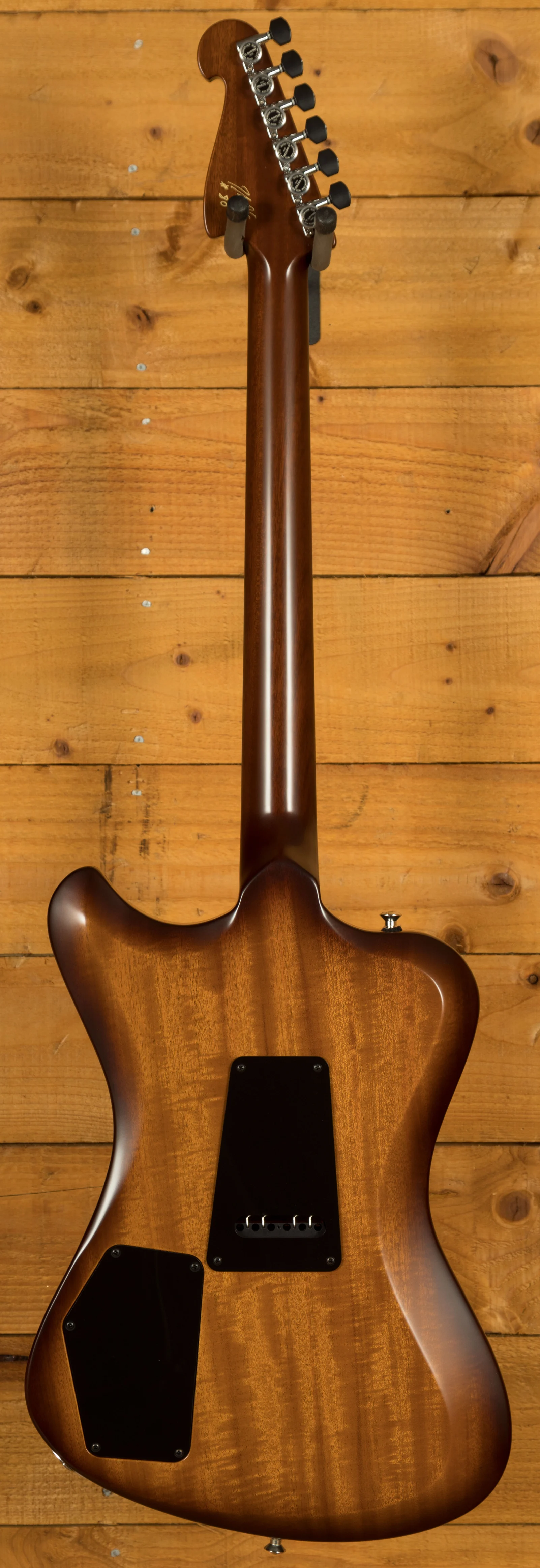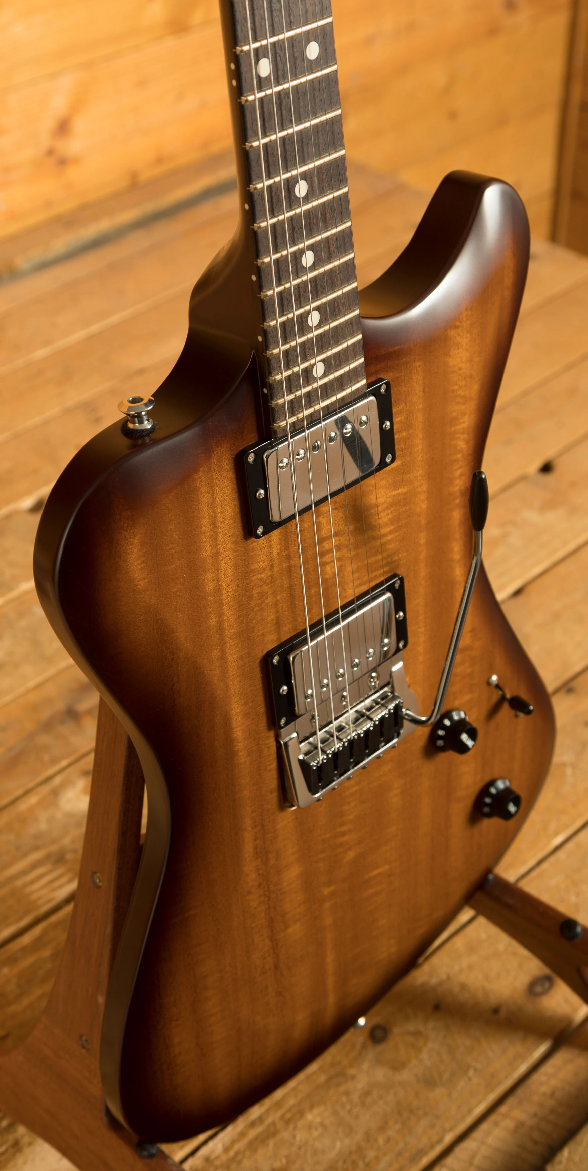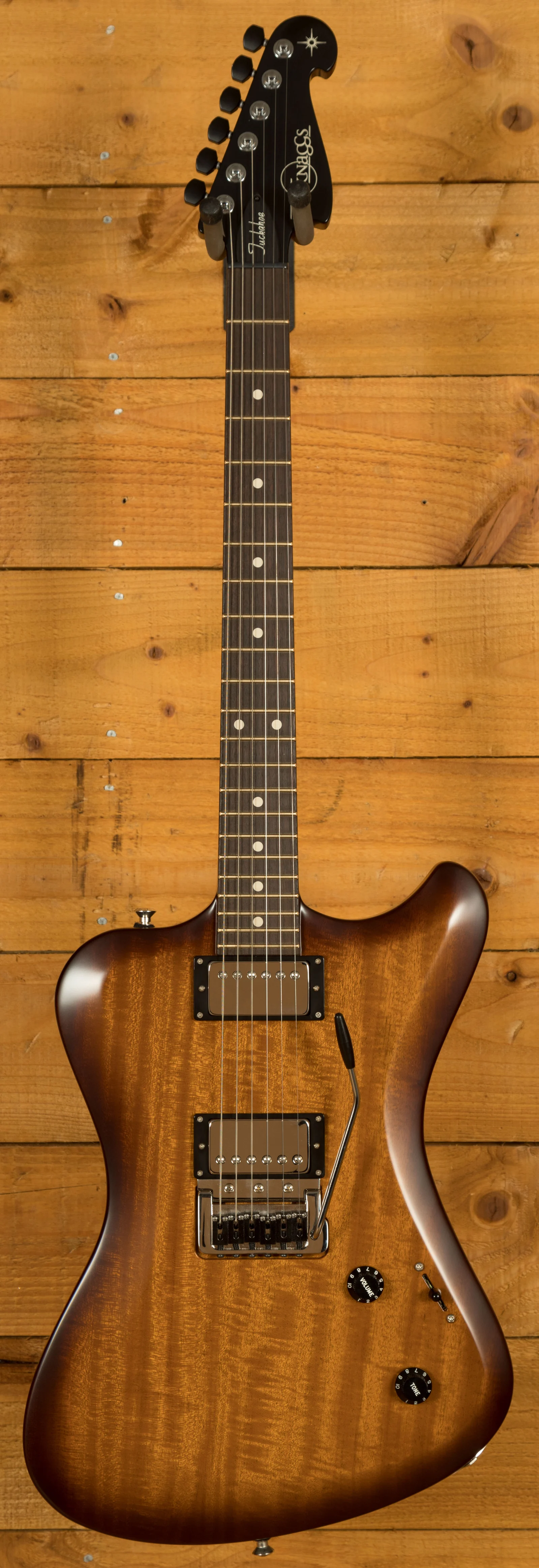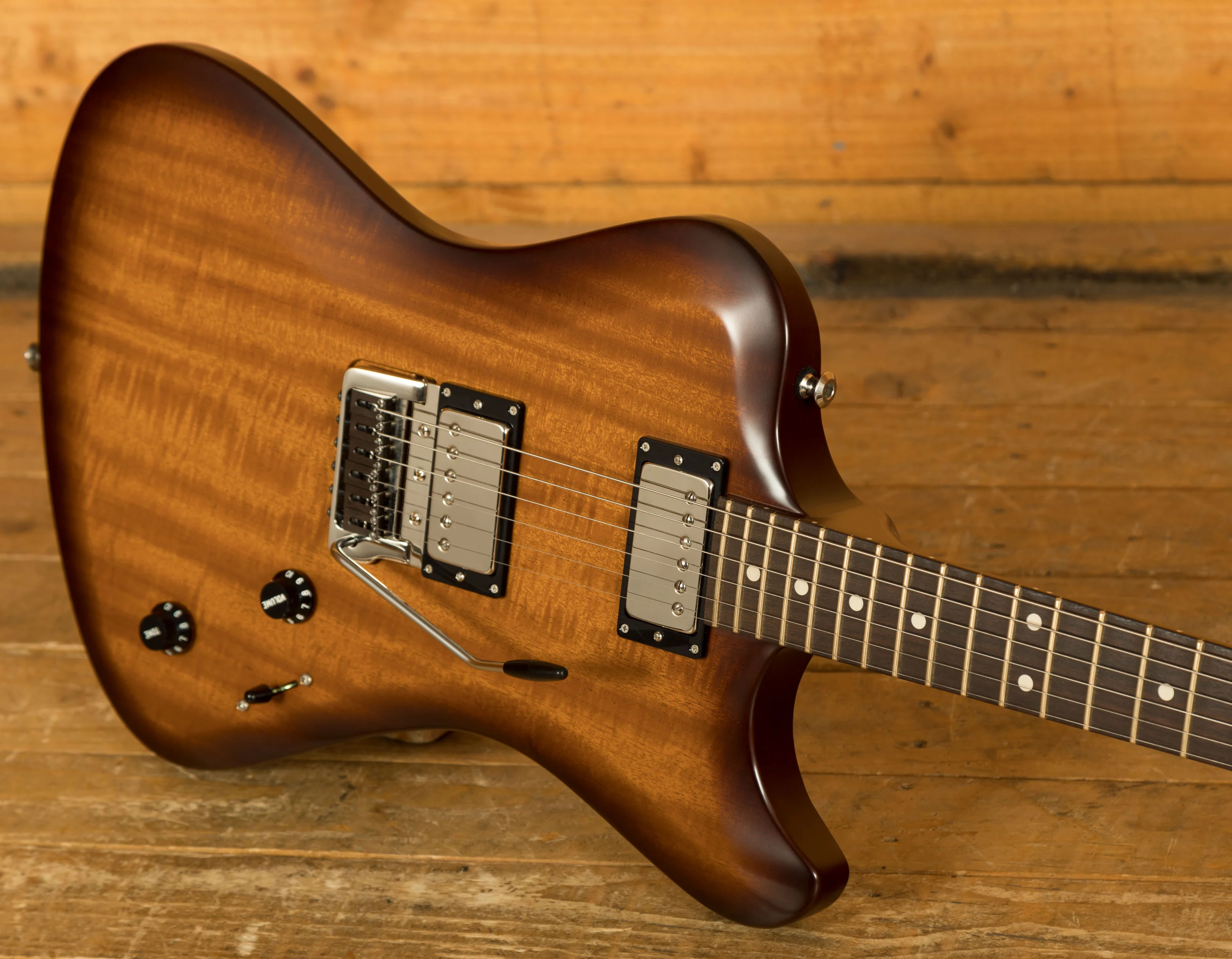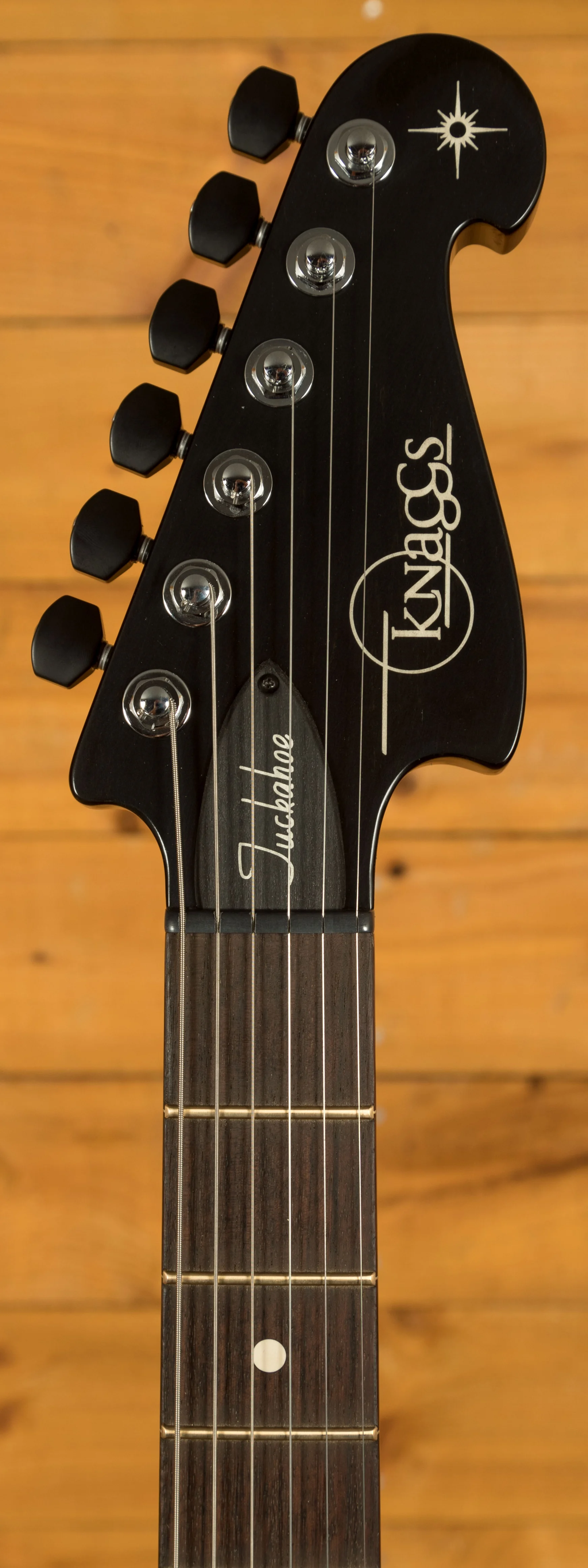 The latest model from Knaggs is the beautiful offset wonder, the Tuckahoe. Named after the Tuckahoe Creek which flows into the Choptank River and then into Chesapeake Bay, it's easy to see where Knaggs get their name inspiration from! Reminiscent of the classic Firebird design, the Tuckahoe is an innovative and flawlessly designed solid body that delivers massively on tone and playability. With a lush Mahogany body, with a Tobacco Burst semi-gloss finish, it has a punchy tone, is perfectly balanced, and is super resonant.