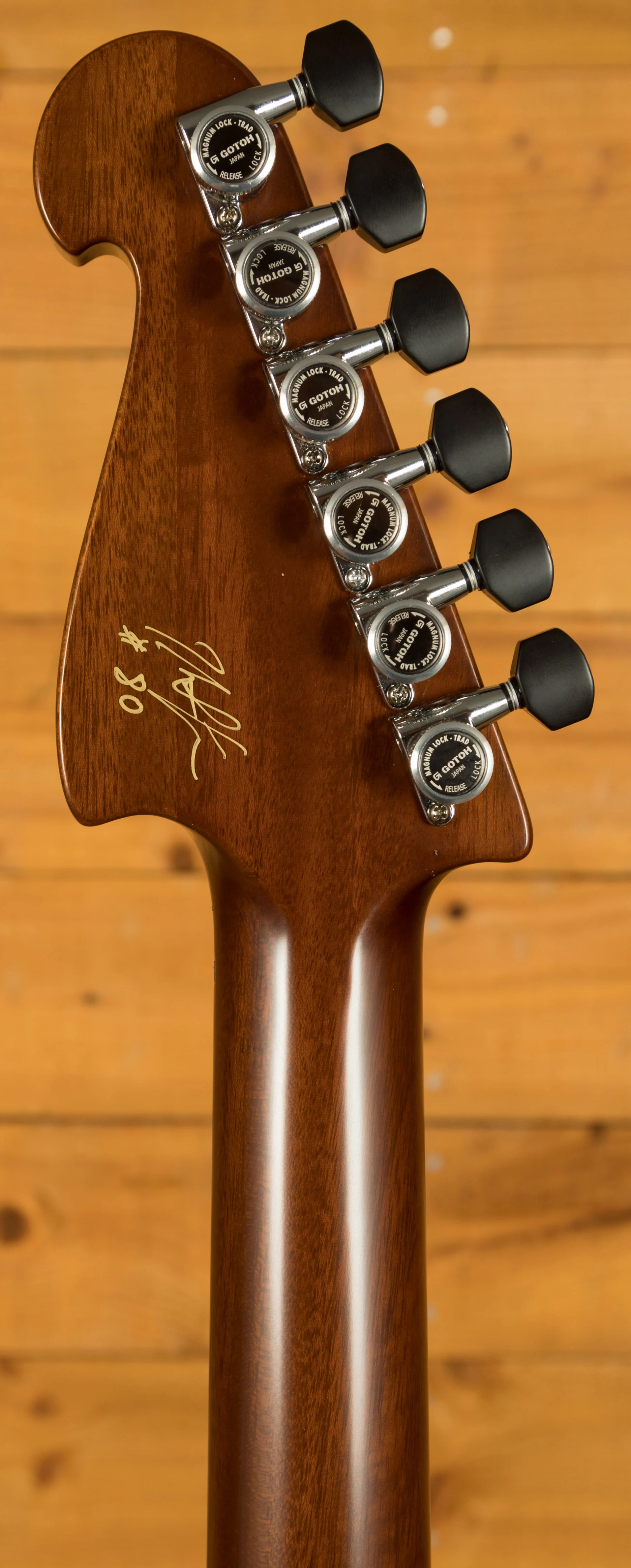 The Mahogany neck features a Rosewood fingerboard with dot inlays and boasts an old school 6 in a line headstock. It's smooth, beautifully finished and balanced, and with great access right up the neck; this guitar is at home playing a wide range of styles. With Gotoh tuners and a Knaggs Chesapeake tremolo bridge, this guitar has great tuning stability and offers a playing experience unlike any other.