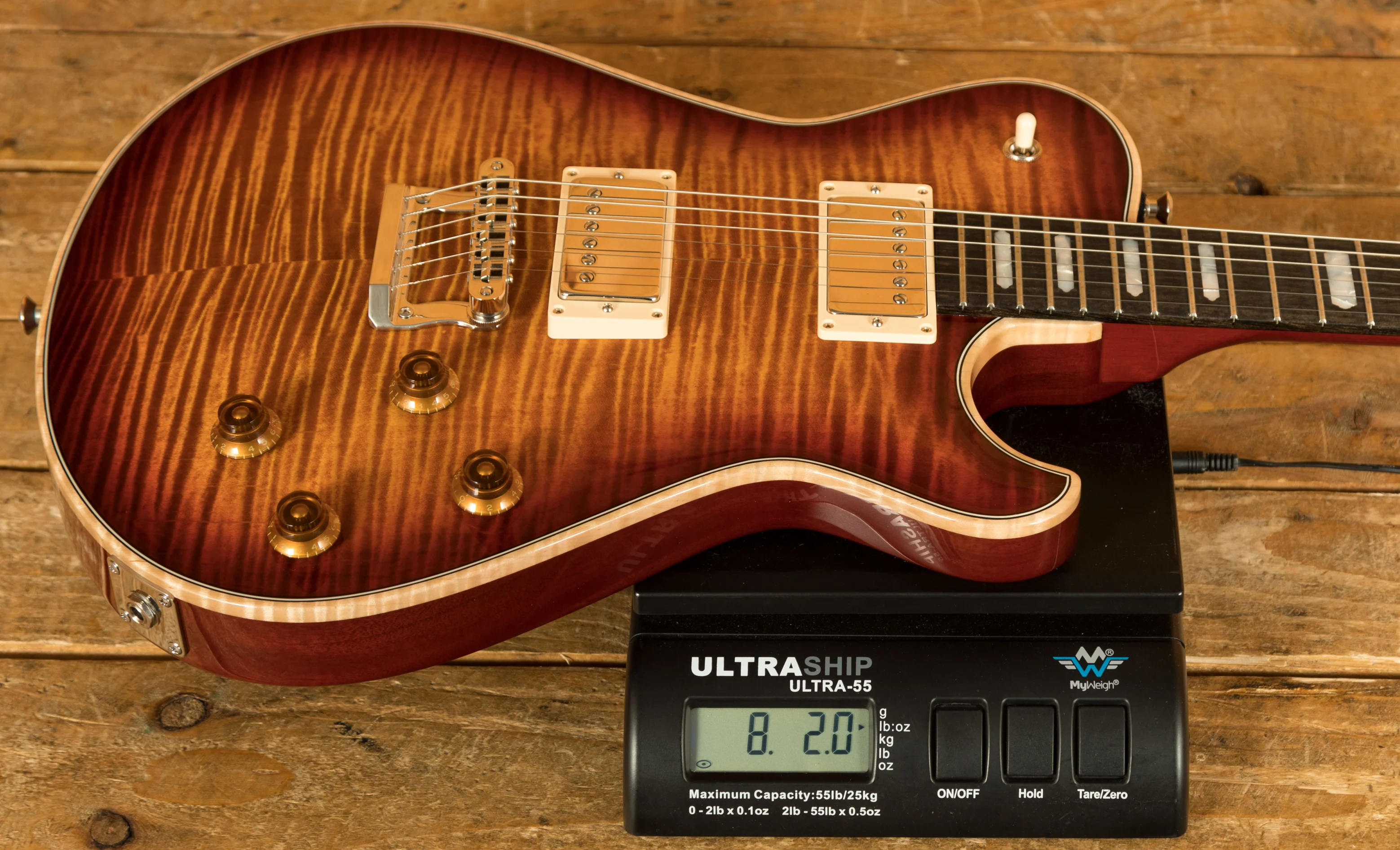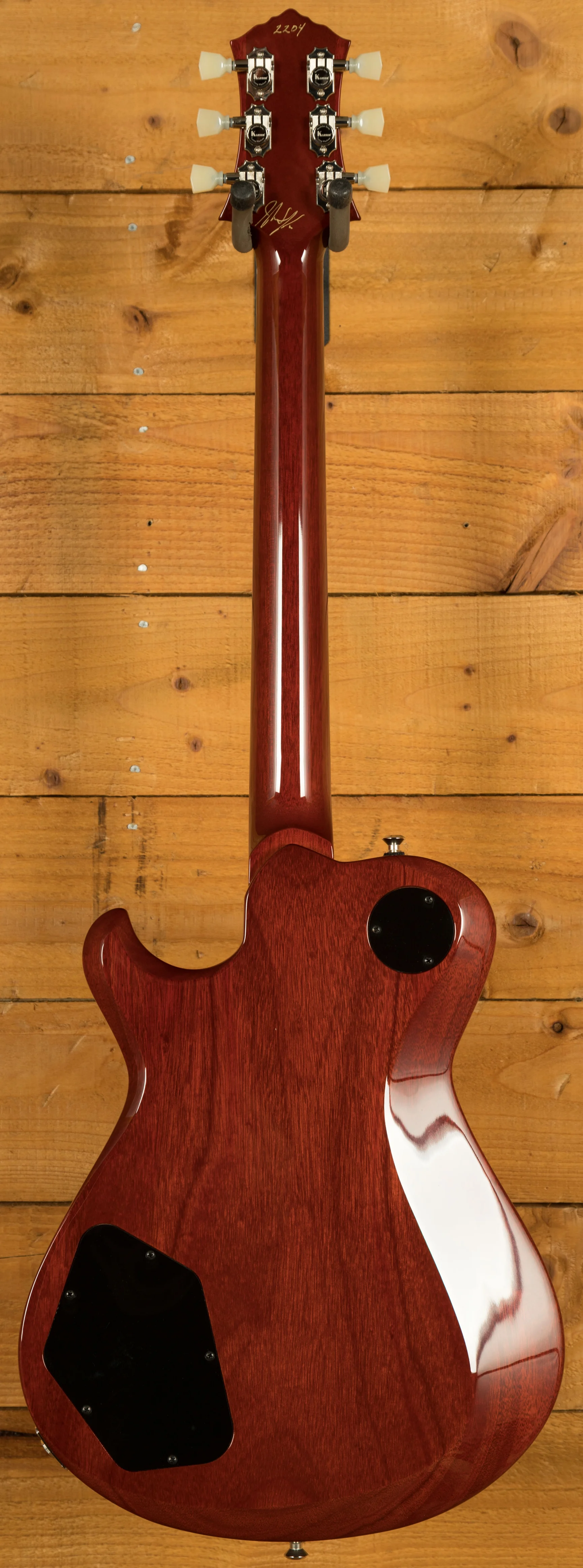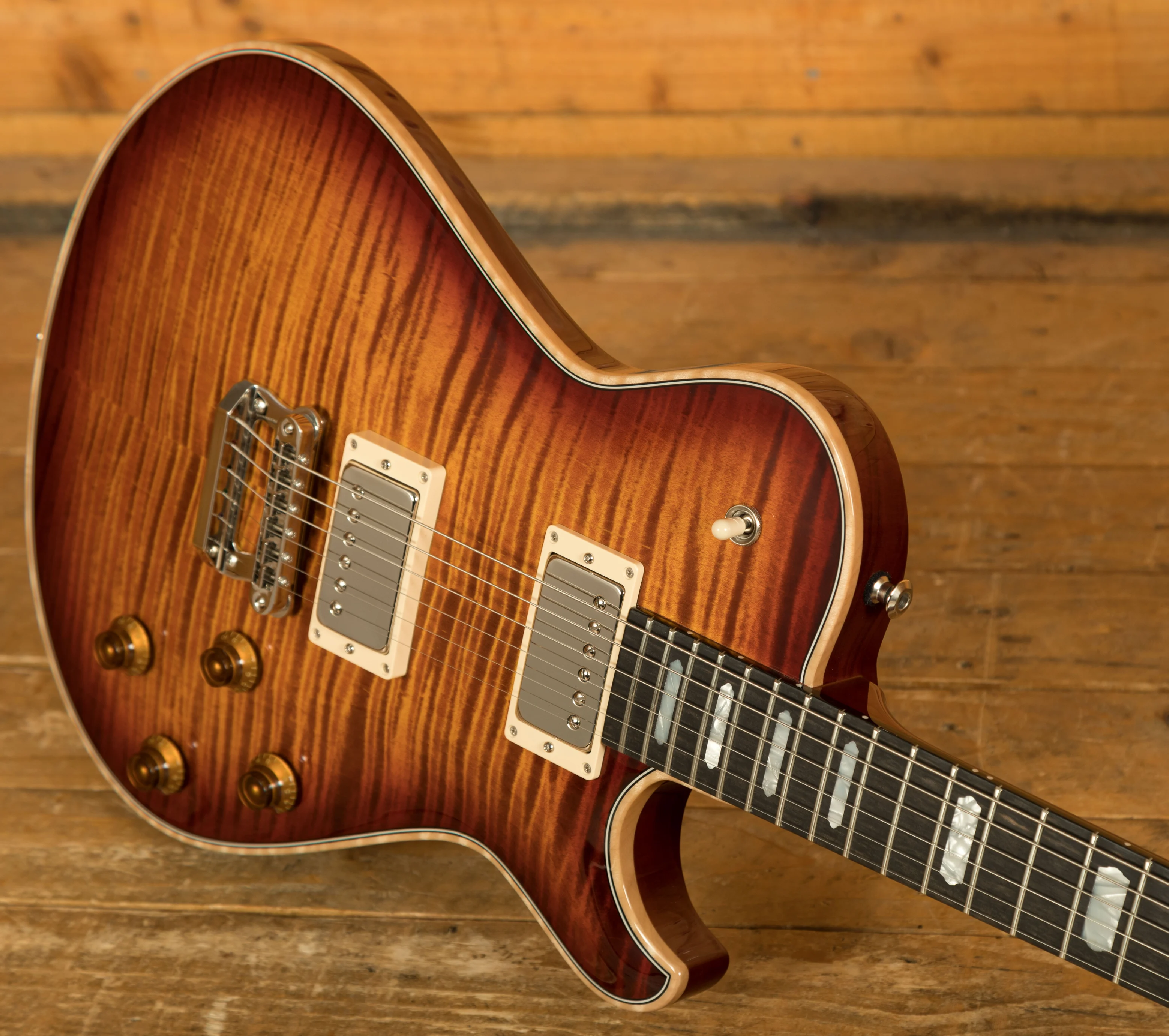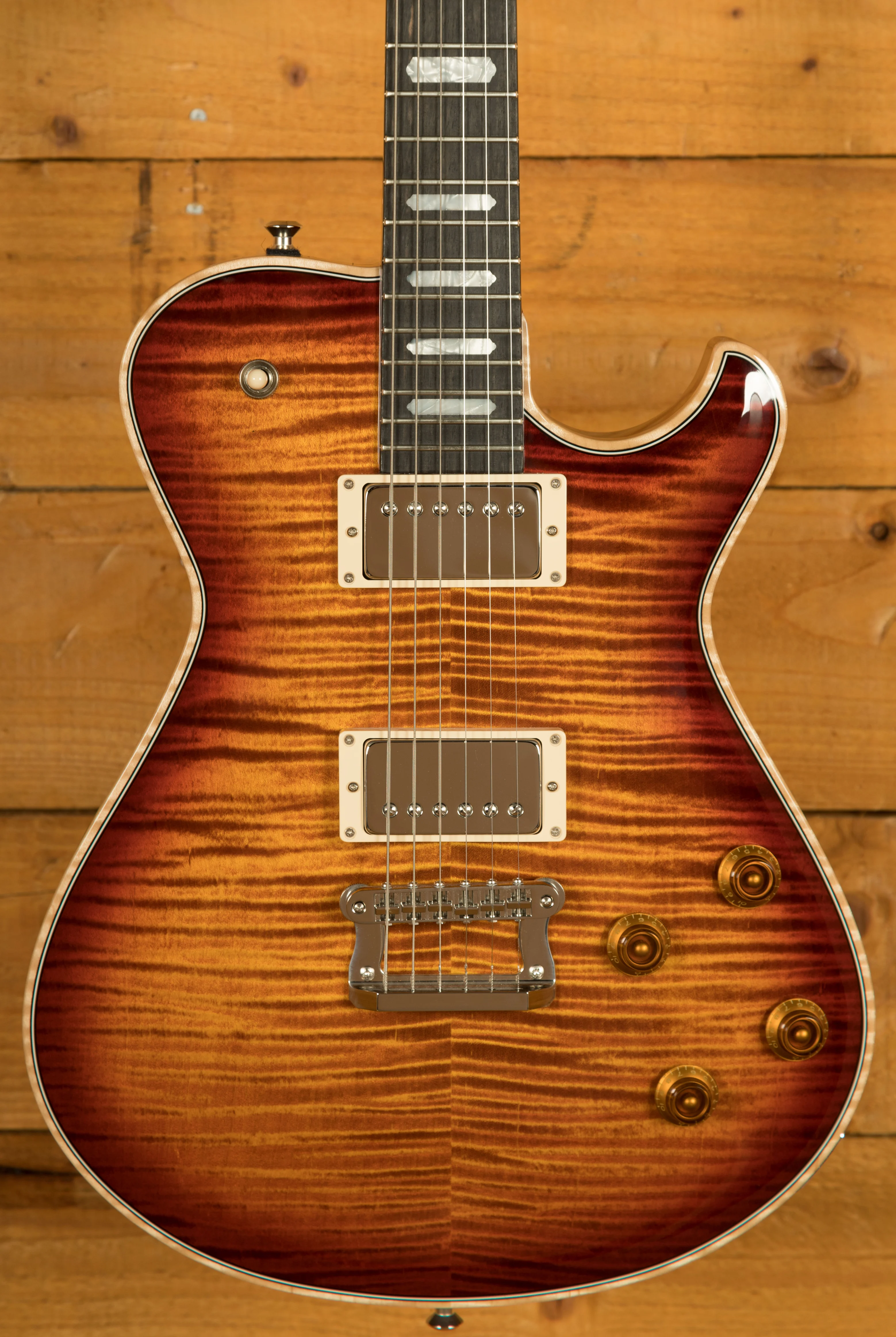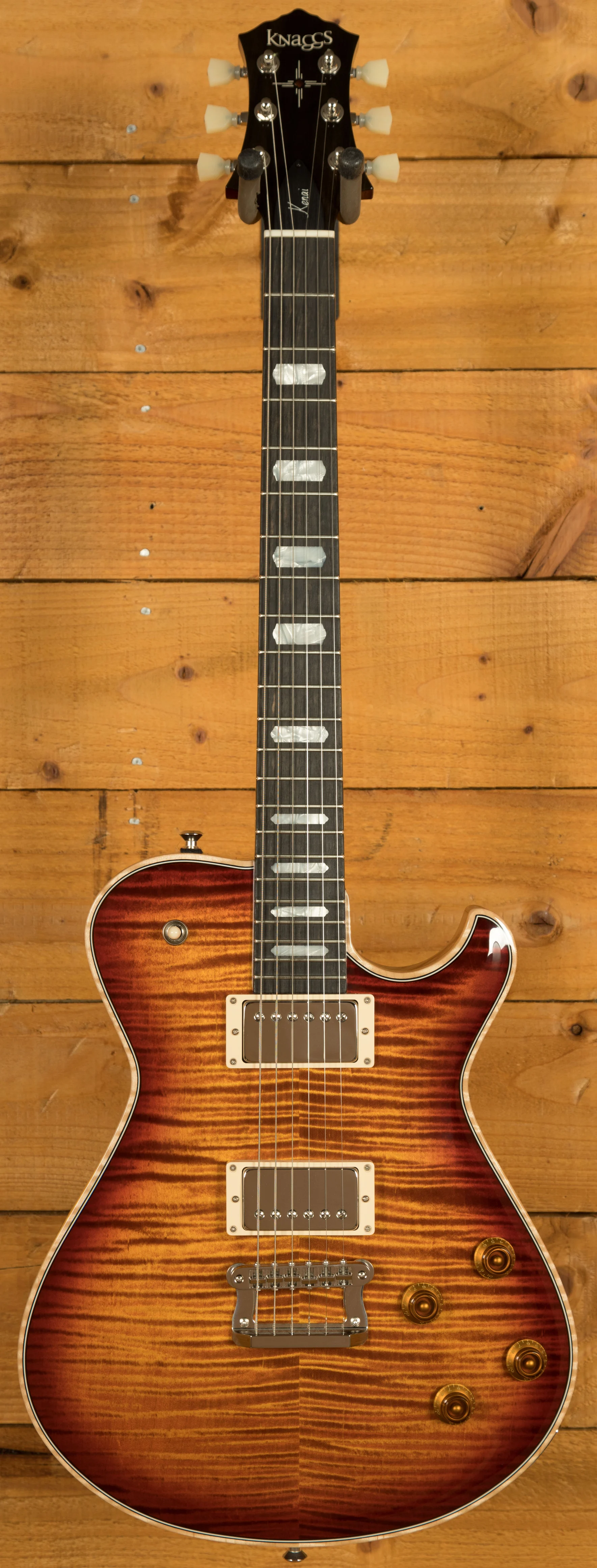 Constructed with precision, the Knaggs Kenai features a mahogany body with a Tier 1 curly maple top, finished in an eye-catching D. Allman Burst gloss nitro finish. The mahogany set-neck, measuring 24.75" in scale length, is complemented by an Ebony fingerboard with a 12" radius, 22 medium frets, block inlays, an ebony headstock veneer, and a bone nut.