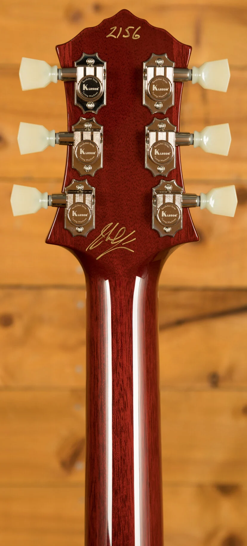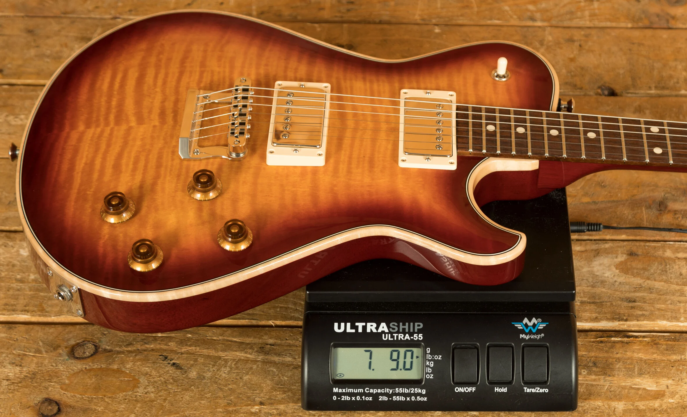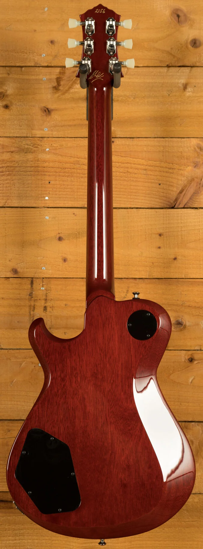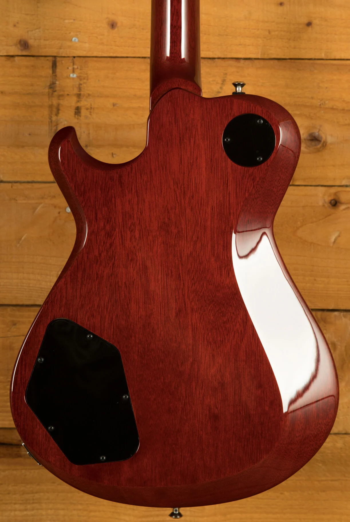 Constructed with precision, the Knaggs Kenai features a mahogany body with a Tier 2 curly maple top, finished in an eye-catching Dark Cherry Burst gloss nitro finish. The mahogany set-neck, measuring 24.75" in scale length, is complemented by a Rosewood fingerboard with a 12" radius, 22 medium frets, dot inlays, an ebony headstock veneer, and a bone nut.