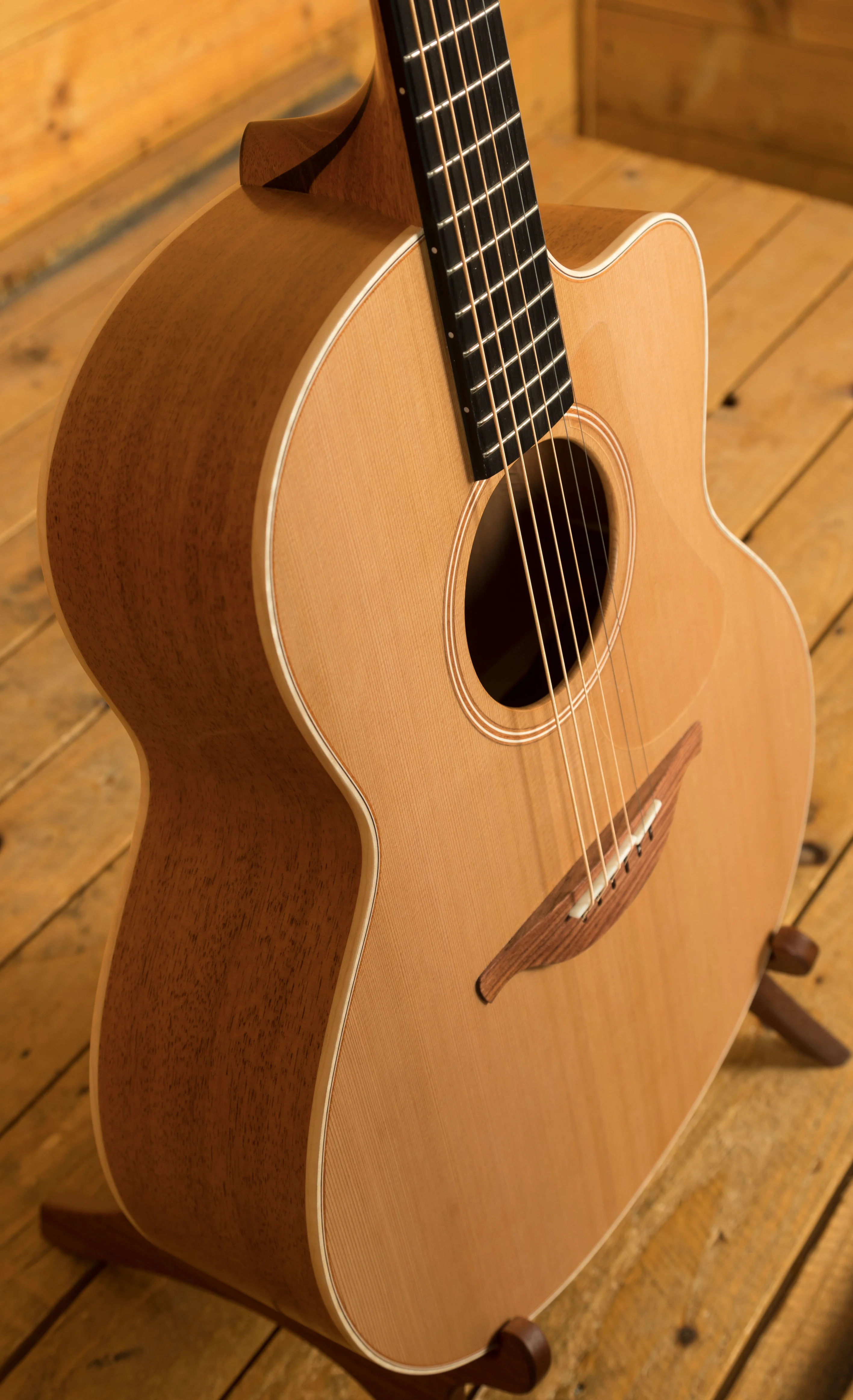 Crafted with a flatpicking shape, the F model ensures superior projection and midrange response, making it ideal for flatpickers seeking power and clarity. However, its versatility extends beyond flatpicking, capturing the hearts of fingerstyle players and blues guitarists alike. The soundbox geometry and carefully voiced bracing offer a balanced bias, neither favouring treble nor bass, resulting in a harmonically rich and well-rounded tone.