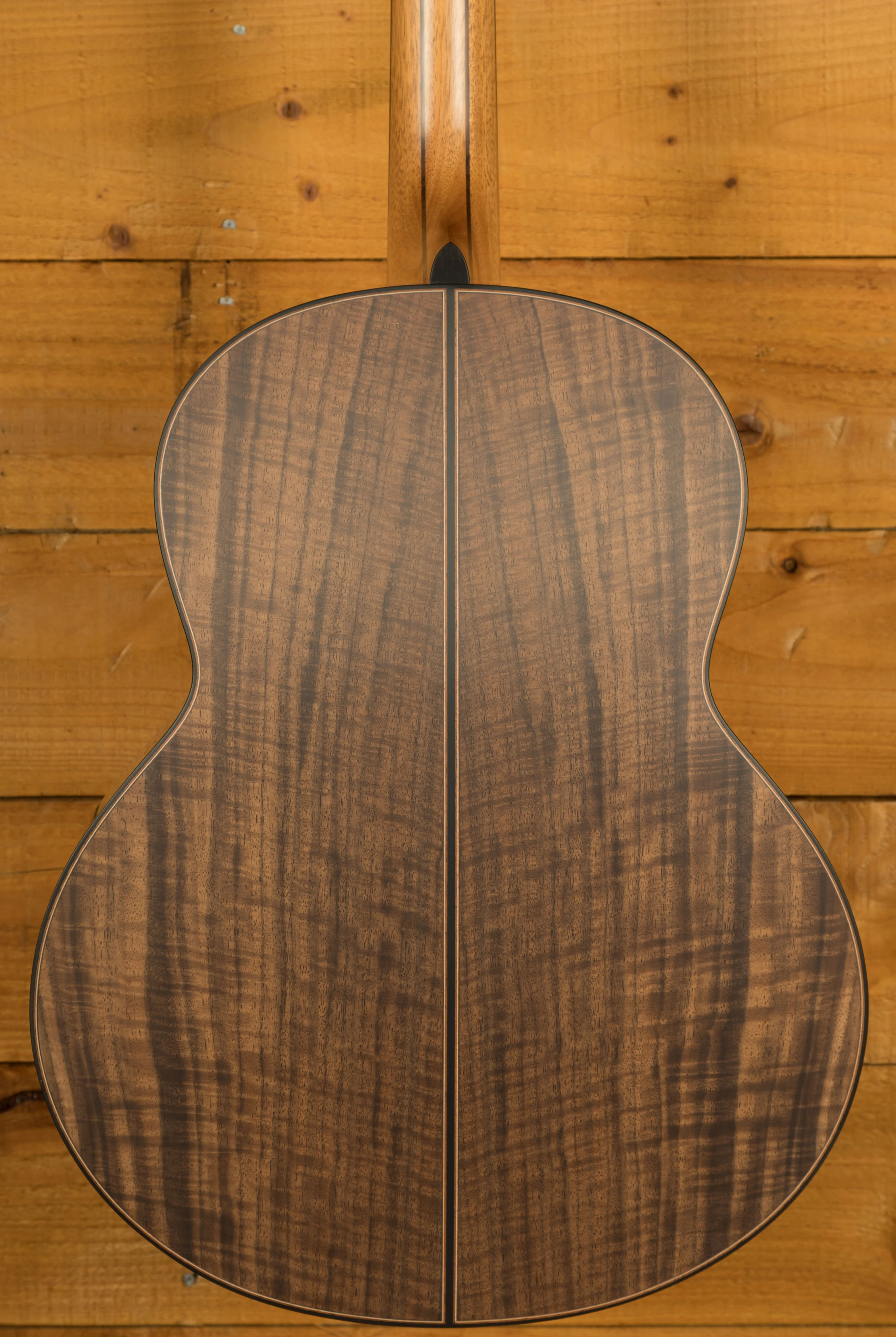 The 50 Series is often described as Lowden's Custom Shop, and for good reason. Every single 50 Series guitar is made from Master Grade tonewoods, which are meticulously selected for their extraordinary tonal and visual characteristics. In fact, these woods are re-graded several times in Lowden's workshop, and only the rarest and most exceptional pieces make it into a 50 Series instrument. This particular F-50 features Master Grade Walnut back and sides, the personal favourite of George Lowden himself, thanks to its crystal-clear tone and stunning visual figuring. Walnut offers exceptional clarity and definition, making this guitar a perfect fit for a wide range of musical styles.