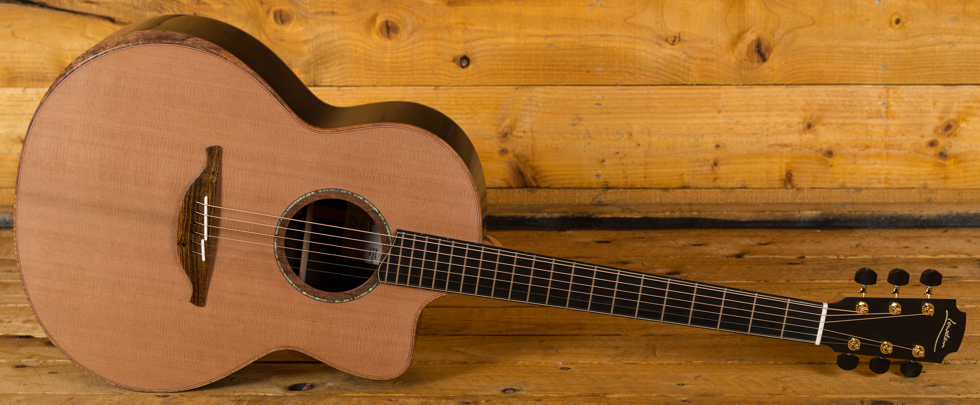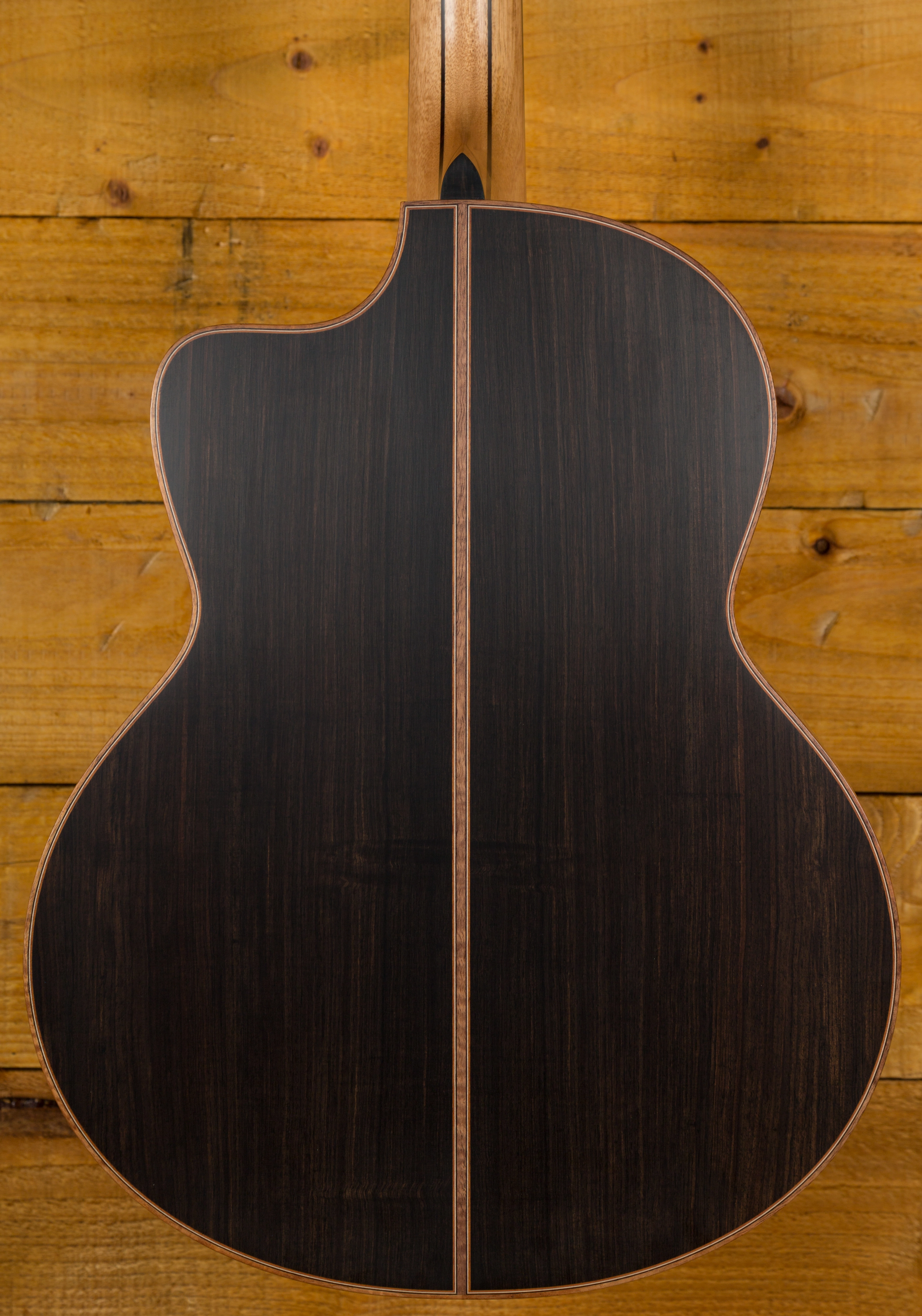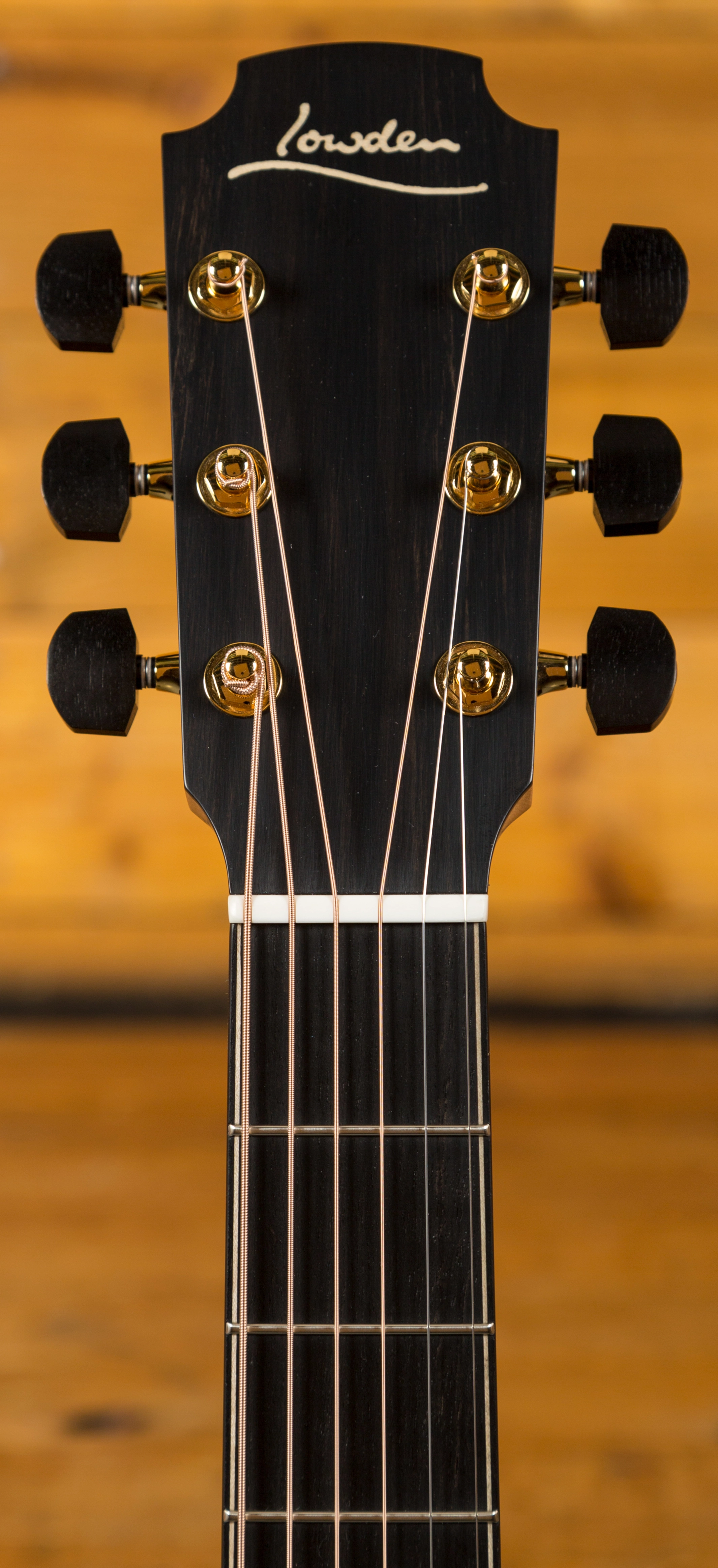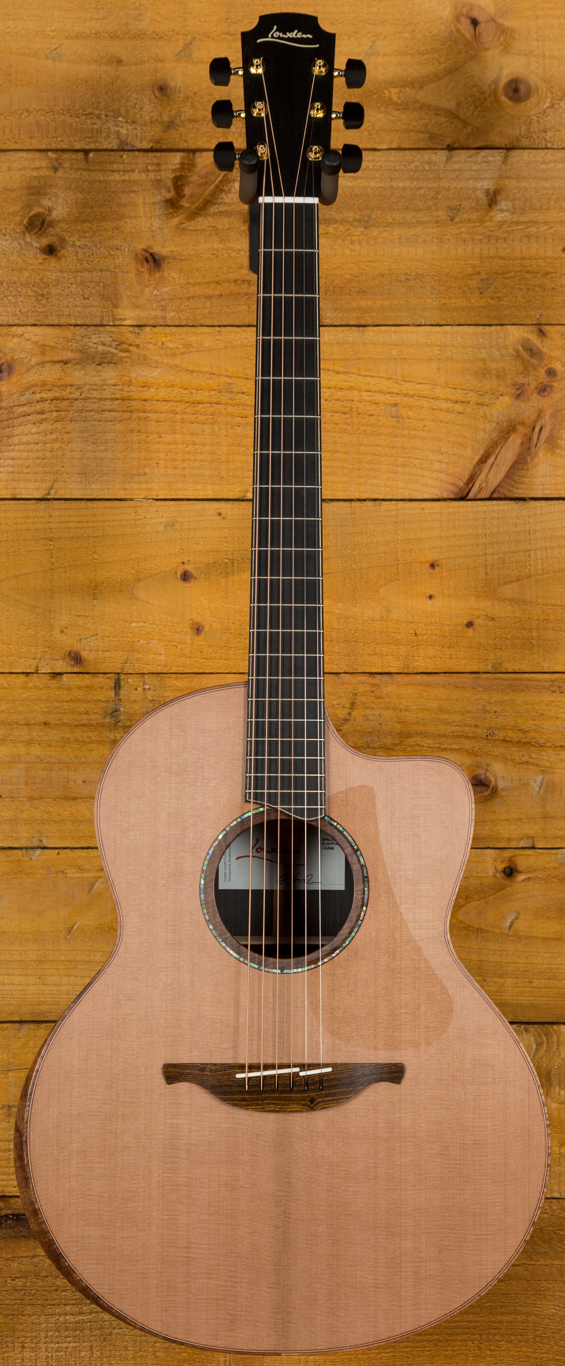Another beautiful Lowden featuring mastergrade tonewoods, figured wood and abalone soundhole edge rosette. This one features a stunning all-solid combination of African Blackwood and Red Cedar.