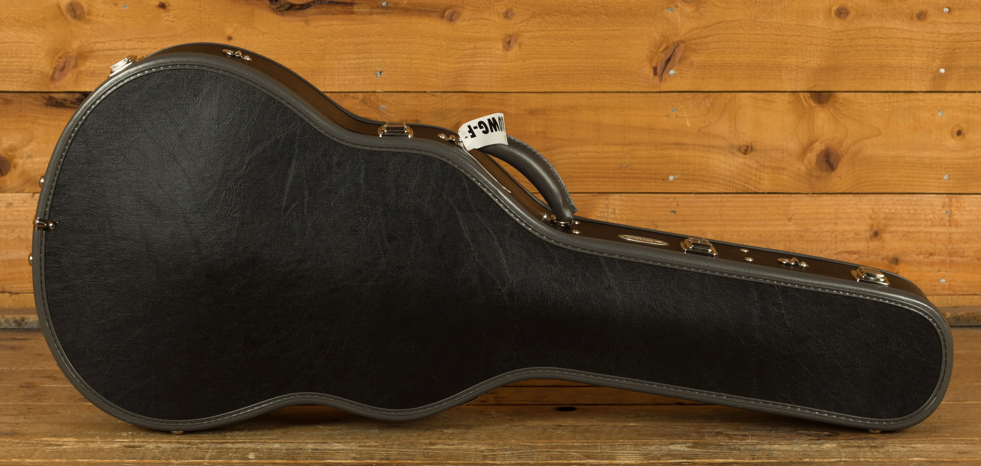 The guitar is beautifully appointed with figured Maple binding and Mahogany-Rocklite-Maple purflings. The tuners are upgraded to Gotoh Gold 510 machine heads with Ebony buttons, ensuring precise tuning stability.