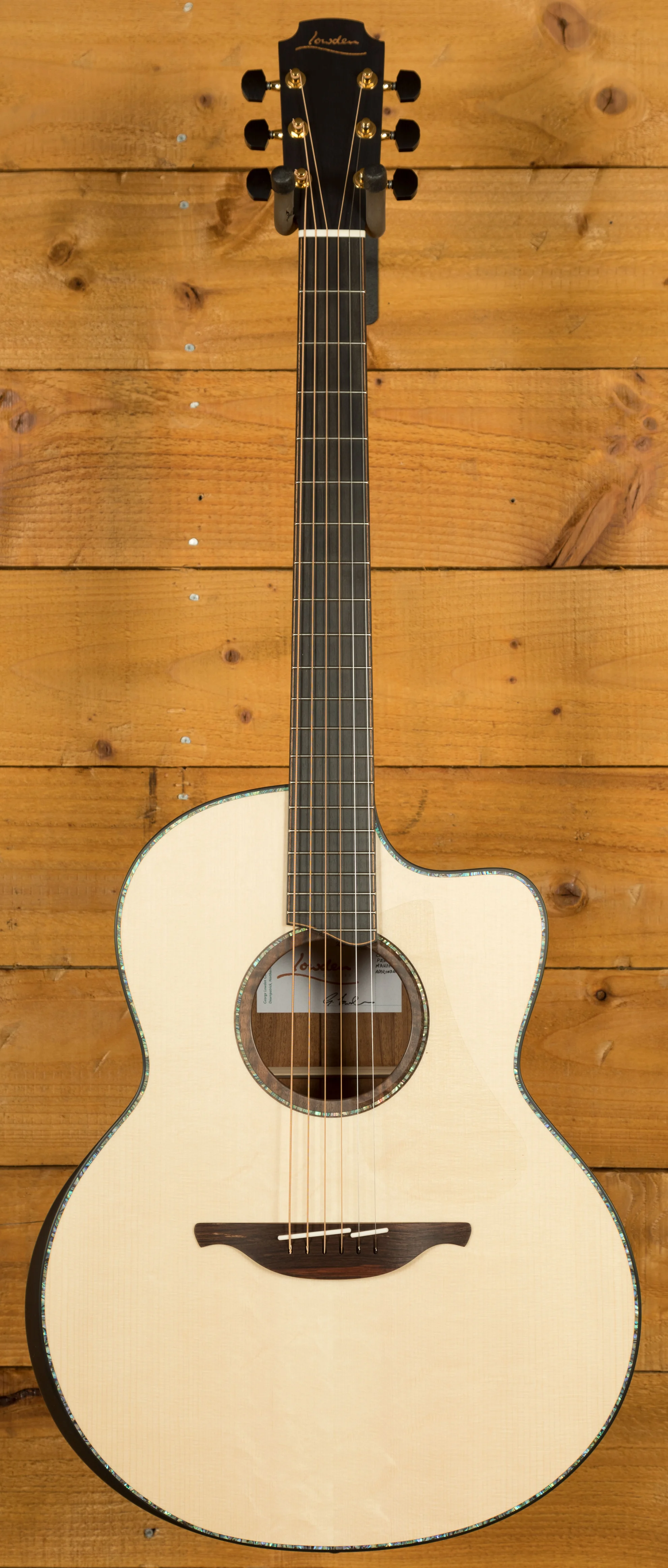 The FM shape, with its reduced body depth compared to the standard F model, is specially voiced to excel in projecting bright, clean lead lines or fingerpicking runs with a focus on the lower mids. It is the perfect guitar to cut through the mix and make your playing stand out. The combination of a Master Grade Adirondack Spruce soundboard and Master Grade Church Pew Mahogany back and sides is a truly remarkable and unique feature of this instrument. This mahogany was originally used to construct the pews in a Belfast church in Northern Ireland, providing a connection to the past and a touch of nostalgia. Being old-growth wood means that the Mahogany comes from trees that have grown for an extended period, typically hundreds of years, before being harvested. Old-growth wood tends to have tighter grain patterns and greater density, resulting in improved tonal characteristics and resonance. By utilising reclaimed Church Pew Mahogany in the back and sides of the FM-50C, Lowden not only showcases their commitment to sustainability and environmental consciousness but also adds a unique story to the instrument. This historic wood contributes to the guitar's overall tone, providing warmth, depth, and a distinct sonic signature.