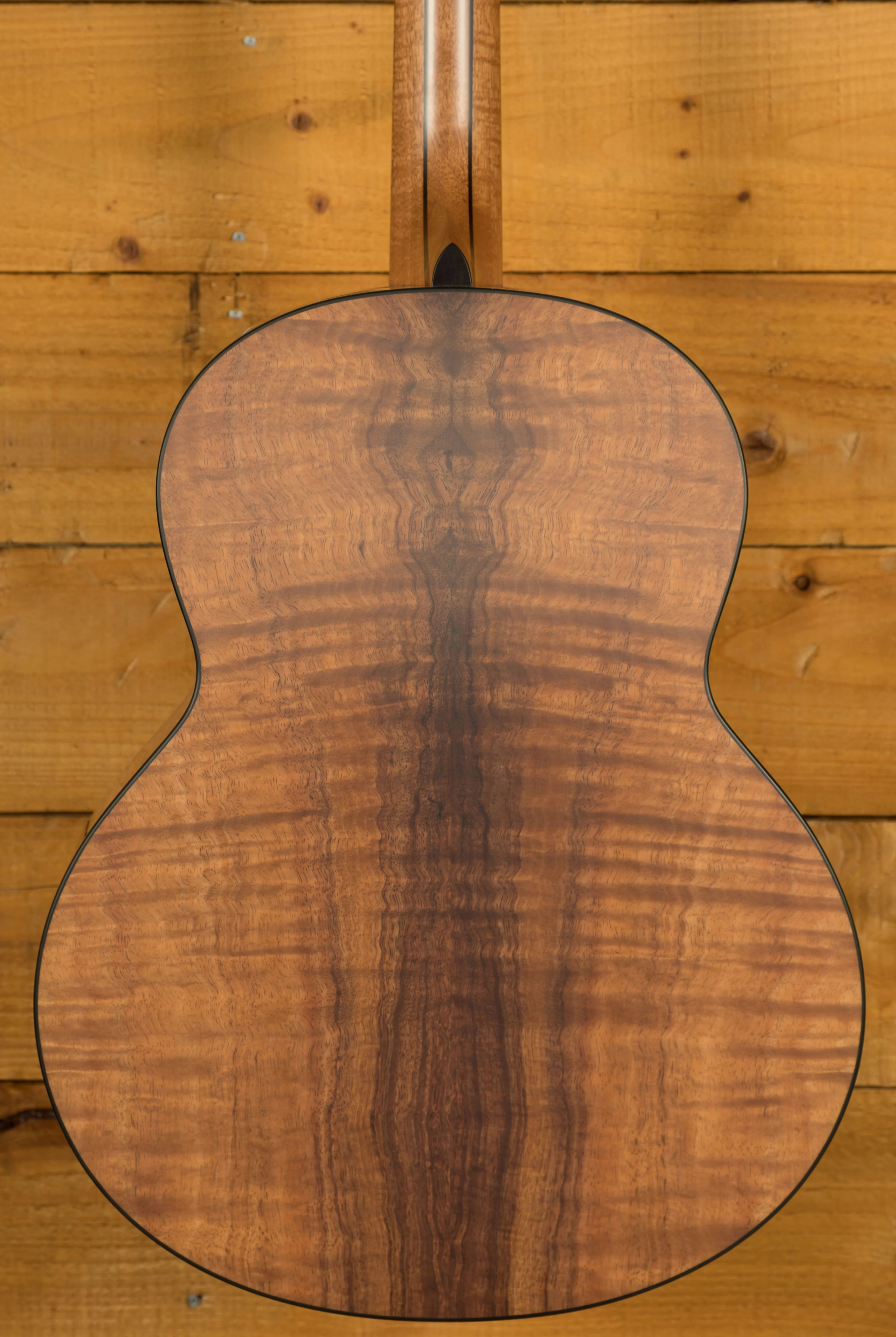 Lowden are known for their subtle use of majestic tone woods and timeless design which is demonstrated perfectly here. This Master Design F-Series features the very best Hawaiian Koa and Sinker Redwood from George’s personal supply, each piece personally selected for its incredible physical beauty alongside it’s mystical tonewood properties. It is crisp, clear and well balanced. Beautifully decorated with Ebony binding as well as a Koa binding inlay strip. Other high end appointments include an Ebony soundbox bevel, Abalone soundbox inlay and a custom Master Series rosette.