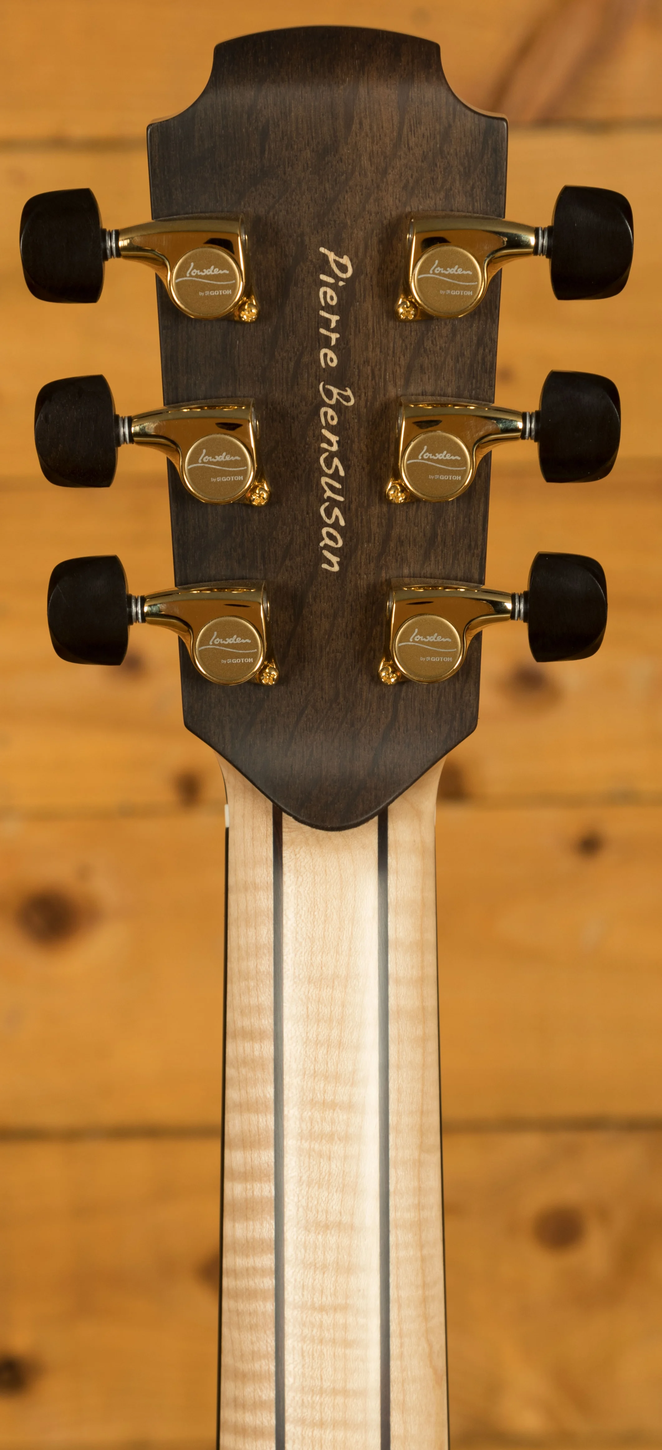 Let's take a closer look at the exquisite Pierre Bensusan model from the Signature Collection. This guitar is a testament to the four-decade-long collaboration between George Lowden and Pierre Bensusan, a relationship rooted in passion and a shared love for music. Back in 1978, George crafted Pierre's first Lowden guitar, an "old lady" that still sings beautifully to this day, a testament to the enduring craftsmanship and playability of Lowden instruments. The 2009 signature model is a celebration of this enduring partnership, showcasing an unrivalled attention to detail and tonal excellence.