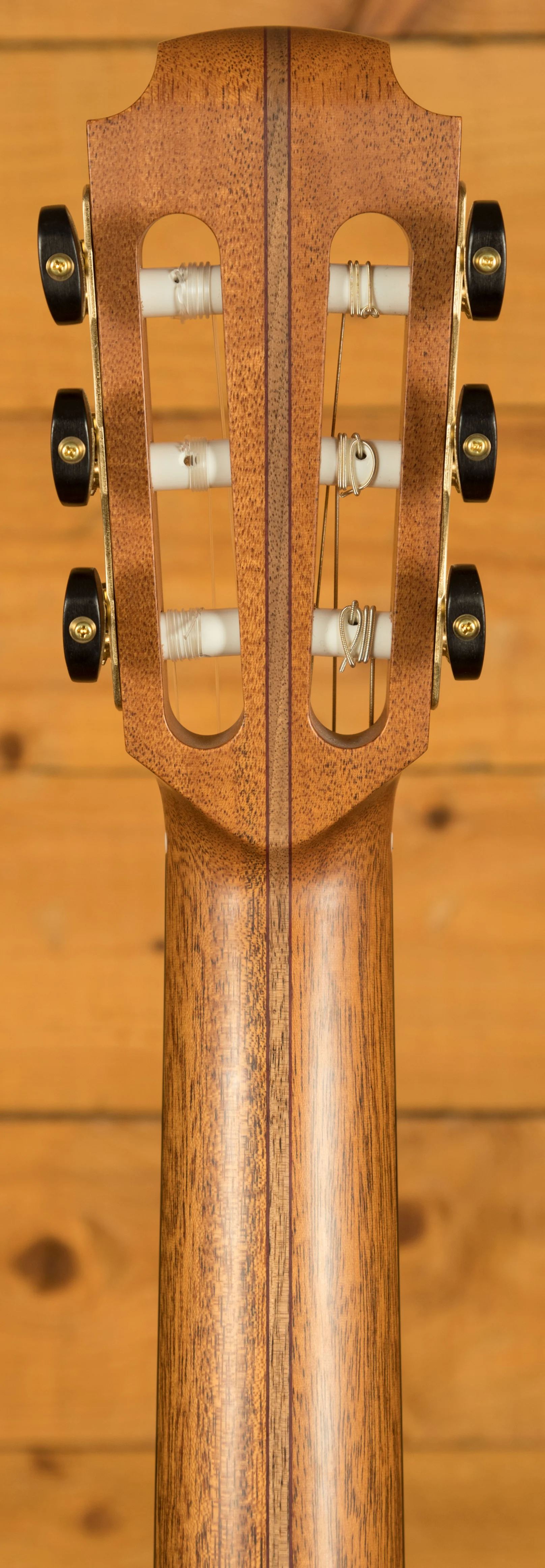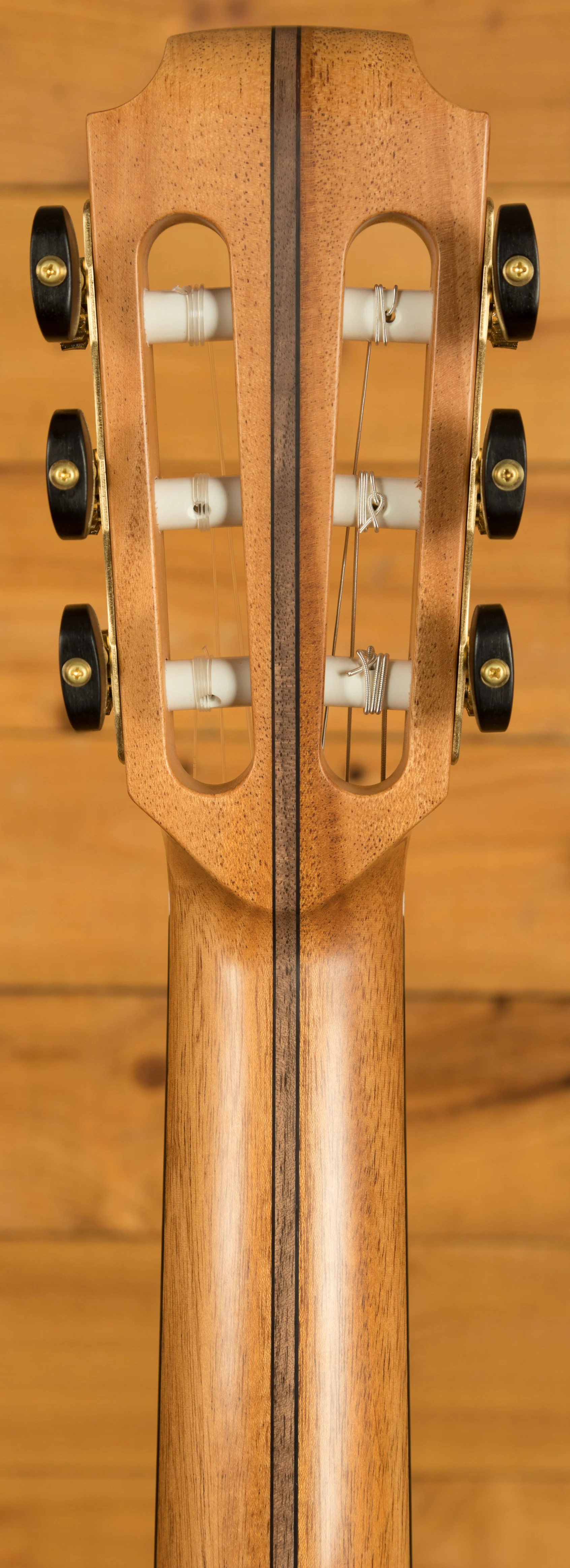 The 5-piece Mahogany/Rosewood/Purpleheart neck has a cambered fingerboard for greater versatility. It's wide enough for classical players but steel players will embrace the comfortable profile and rich tone.