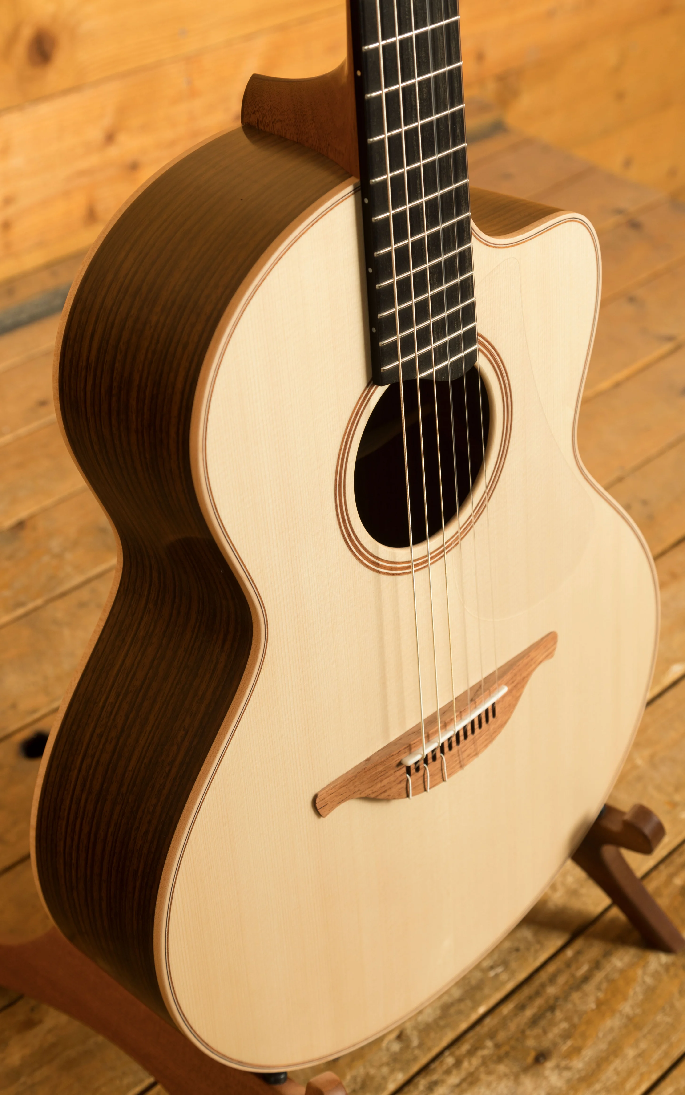 A gorgeous Alpine Spruce top with Indian Rosewood back and sides offers a tonewood dream team, rich, deep and full, it just sings. Super resonant with undeniable clarity, the S-32J is the result of George Lowden's 30 years of concert classical design experience.