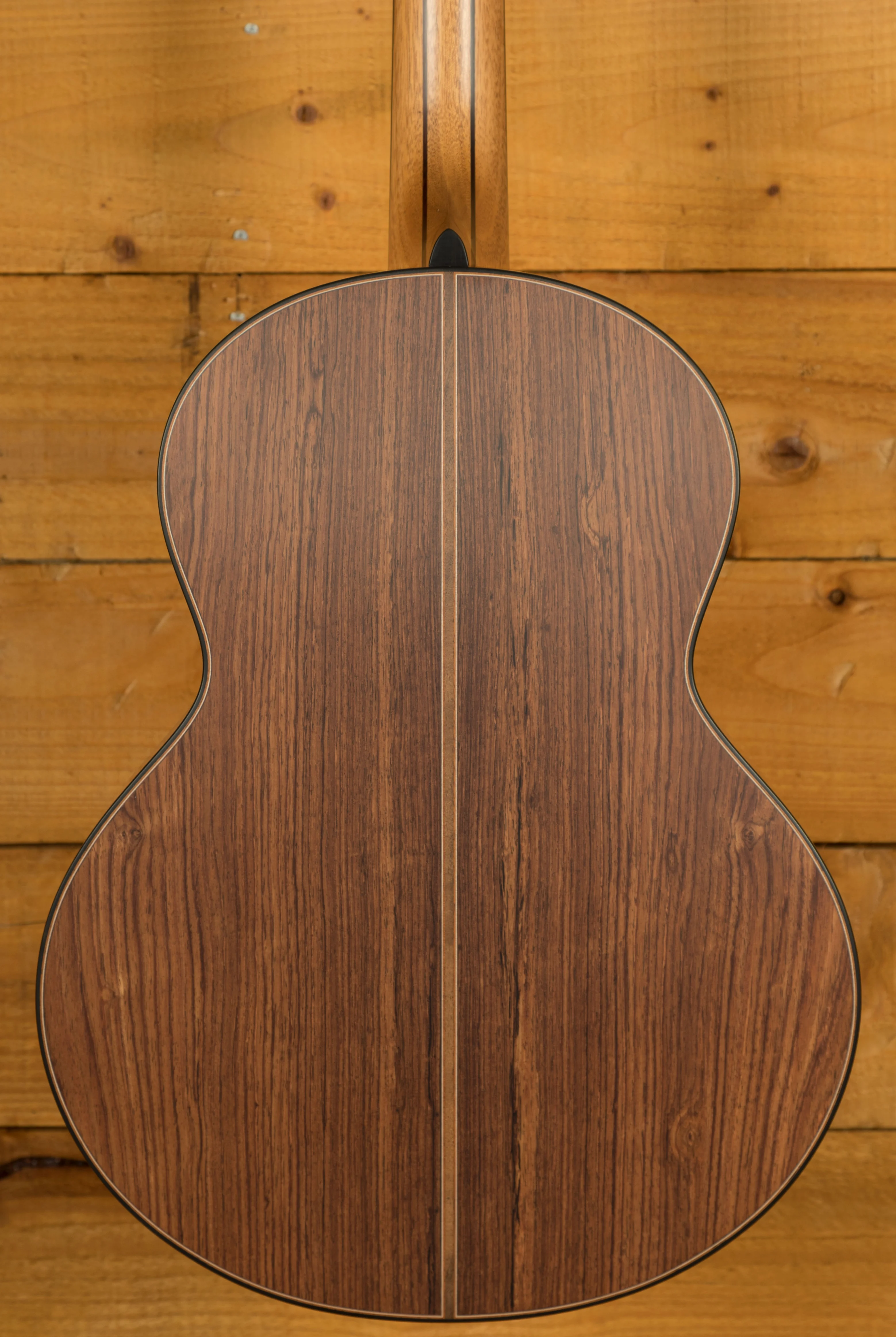 The foundation of this masterpiece lies in the choice of materials. The back and sides are crafted from the finest Master Grade Honduras Rosewood, renowned for its warmth and clarity. The soundboard features Master Grade Alpine Spruce, which requires time to "play-in" and mature. This intentional design approach ensures that your S-50 will continue to improve in tone over time, delivering a rich and nuanced sound that will only get better with age.