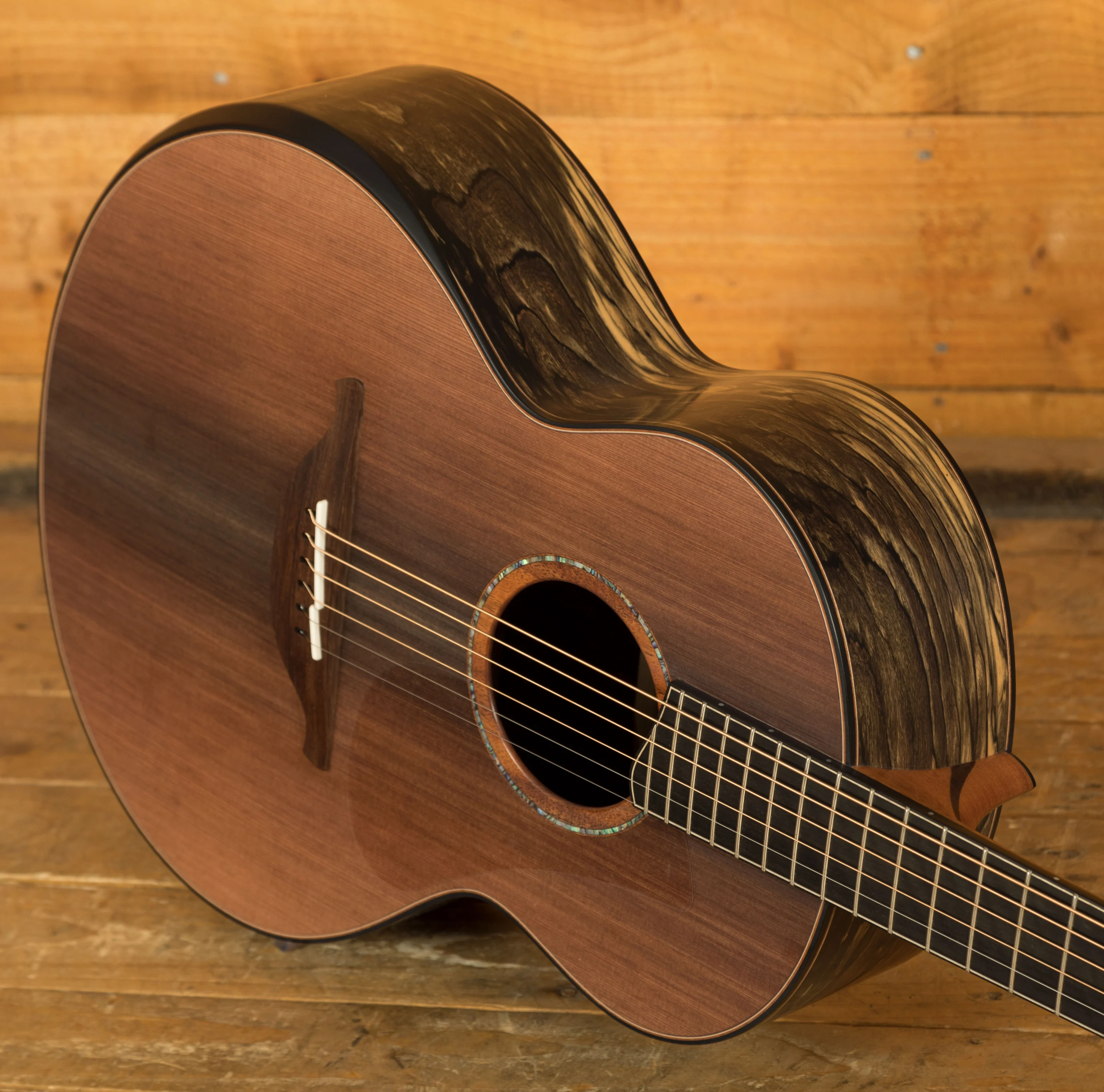 The soundboard is made from an exceptional piece of Master Grade Sinker Redwood. Harvested from logs that sank and remained preserved underwater for decades, the Sinker Redwood offers a resonant-rich alternative to traditional tonewoods. The top on this guitar features a prominent dark stripe in the centre and tight grain. The balance achieved by Sinker Redwood is unparalleled, combining the brightness of spruce with a hint of cedar-style warmth; truly a do-it-all wood that has become a favourite amongst Lowden's discerning clientele.