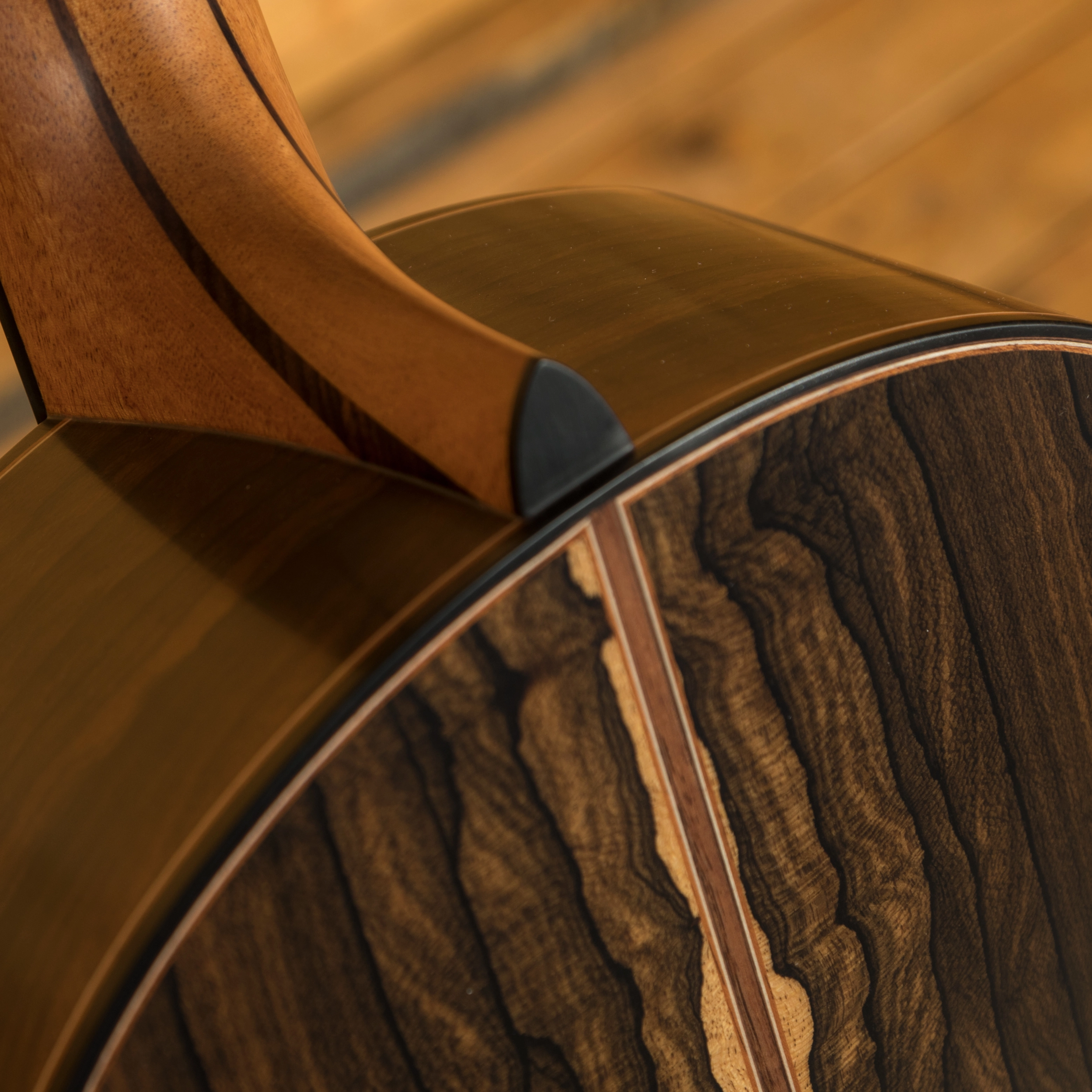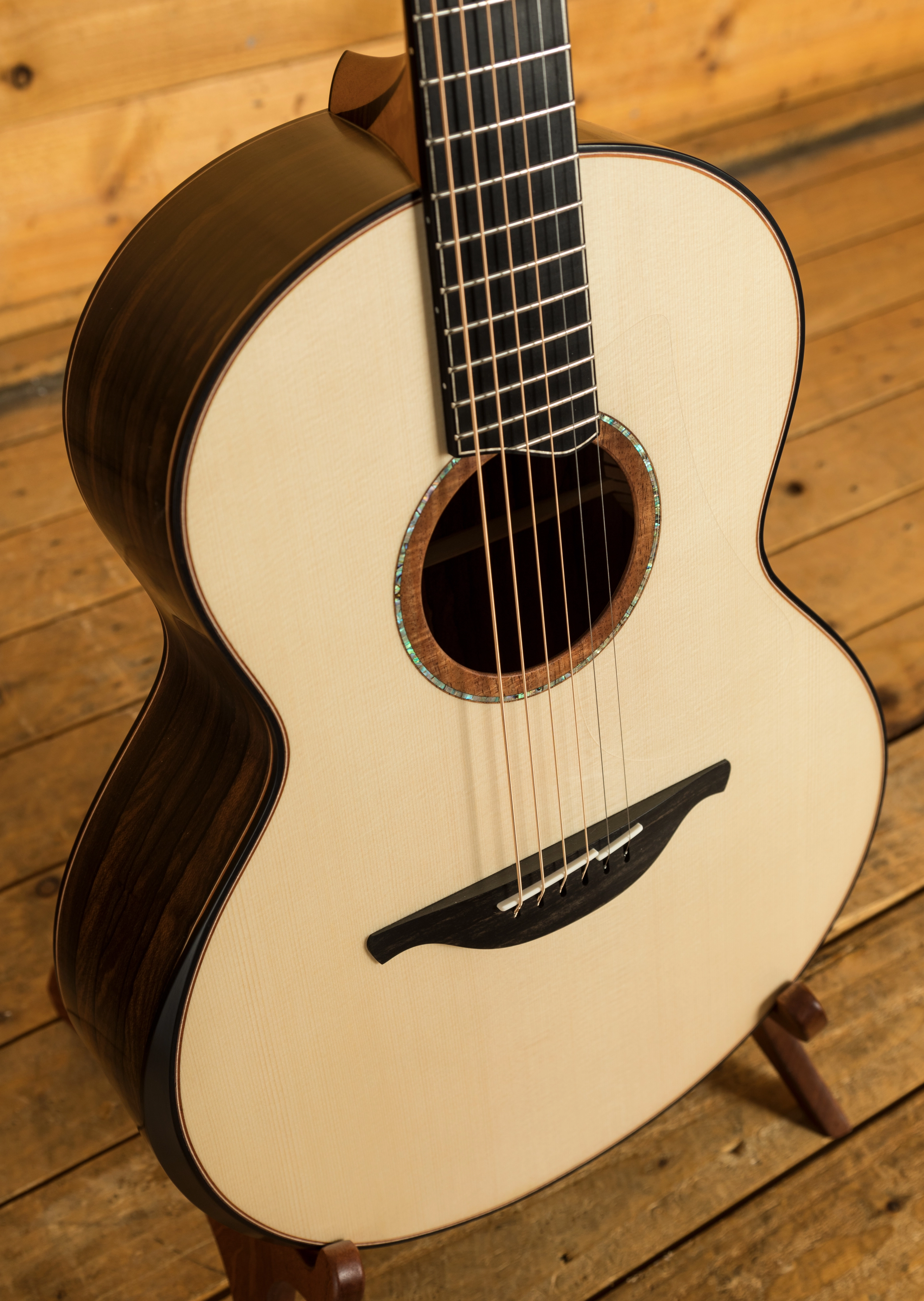 With a rich piano like response and unbelievable clarity it's equally at home as a finger style guitar or strumming big chords. Every element of this guitar has been developed with the highest level of care and attention to detail, the result is simply stunning.