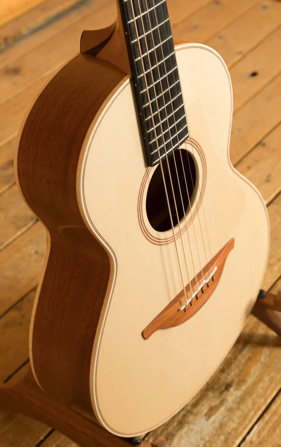 At the heart of this exceptional guitar lies a Sitka Spruce soundboard, carefully selected for its tonal clarity and responsiveness. Paired with the warm and resonant Mahogany back and sides, this combination produces a beautifully balanced and articulate sound, making every note come alive with incredible depth and richness.