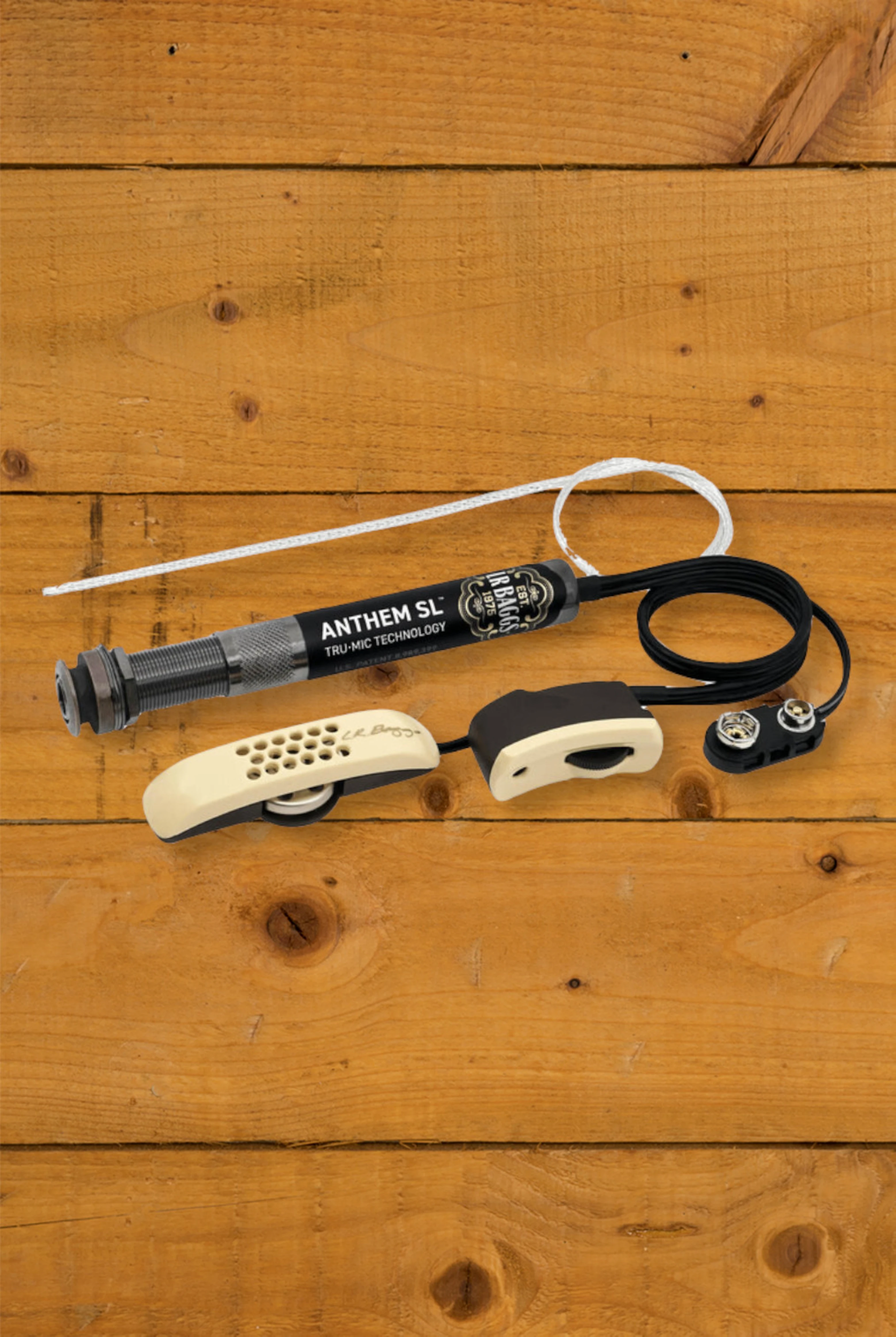 The Award-winning Anthem series, featuring LR Baggs' patented TRUMIC technology, seamlessly combines a proprietary condenser microphone with their acclaimed Element pickup to deliver the warmth and fidelity of a studio-micd guitar anywhere you perform.