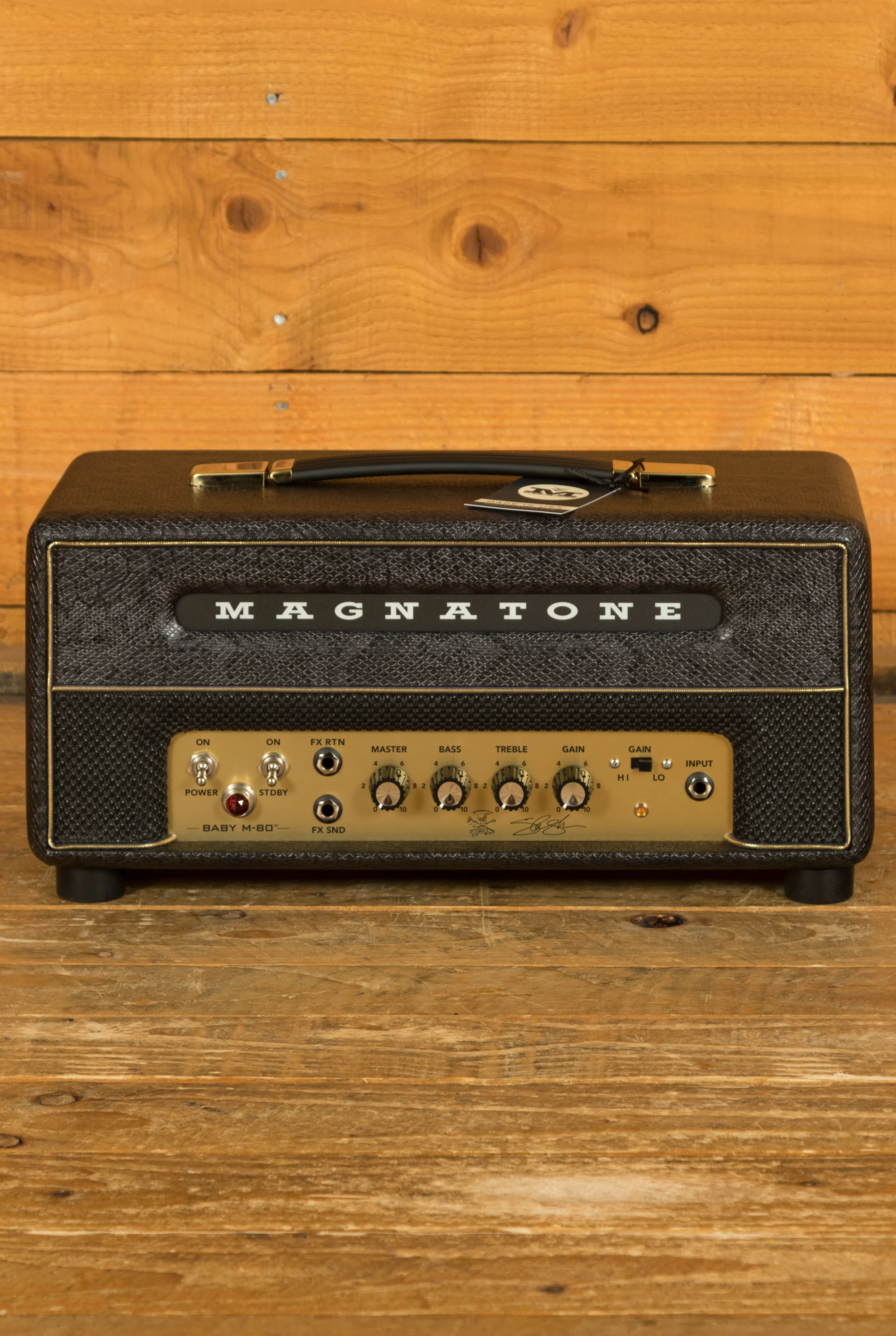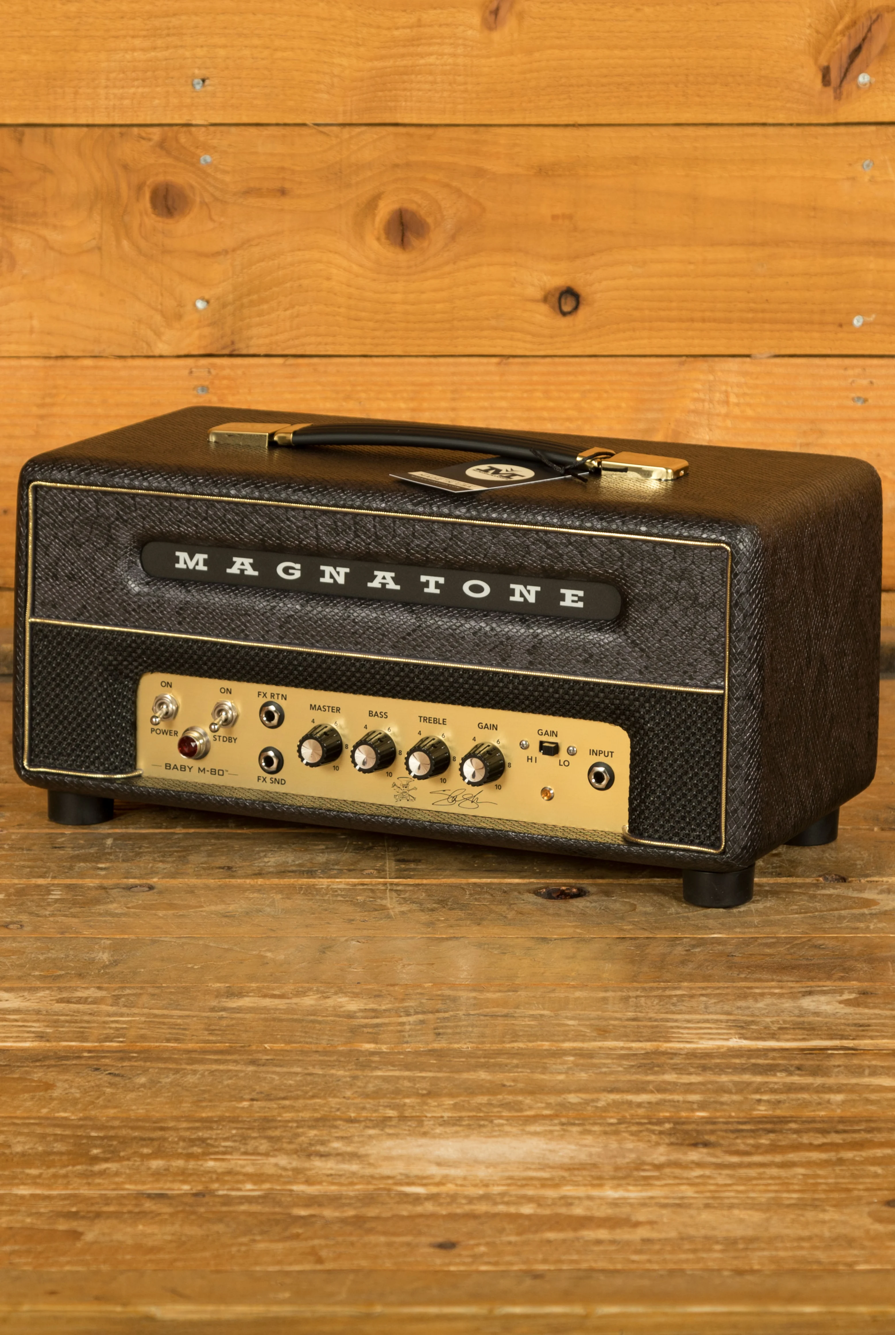 Despite its small size, the Baby M-80 is packed with intuitive controls that make it easy to dial in your perfect tone. From the GAIN knob, which controls overall gain/volume, to the MASTER volume knob, which adjusts the overall volume of the amplifier, every aspect of the amp's sound can be easily tailored to suit your preferences. Plus, with features like a valve-buffered FX loop and a "secret" MID scoop, there's no shortage of sonic possibilities to explore.