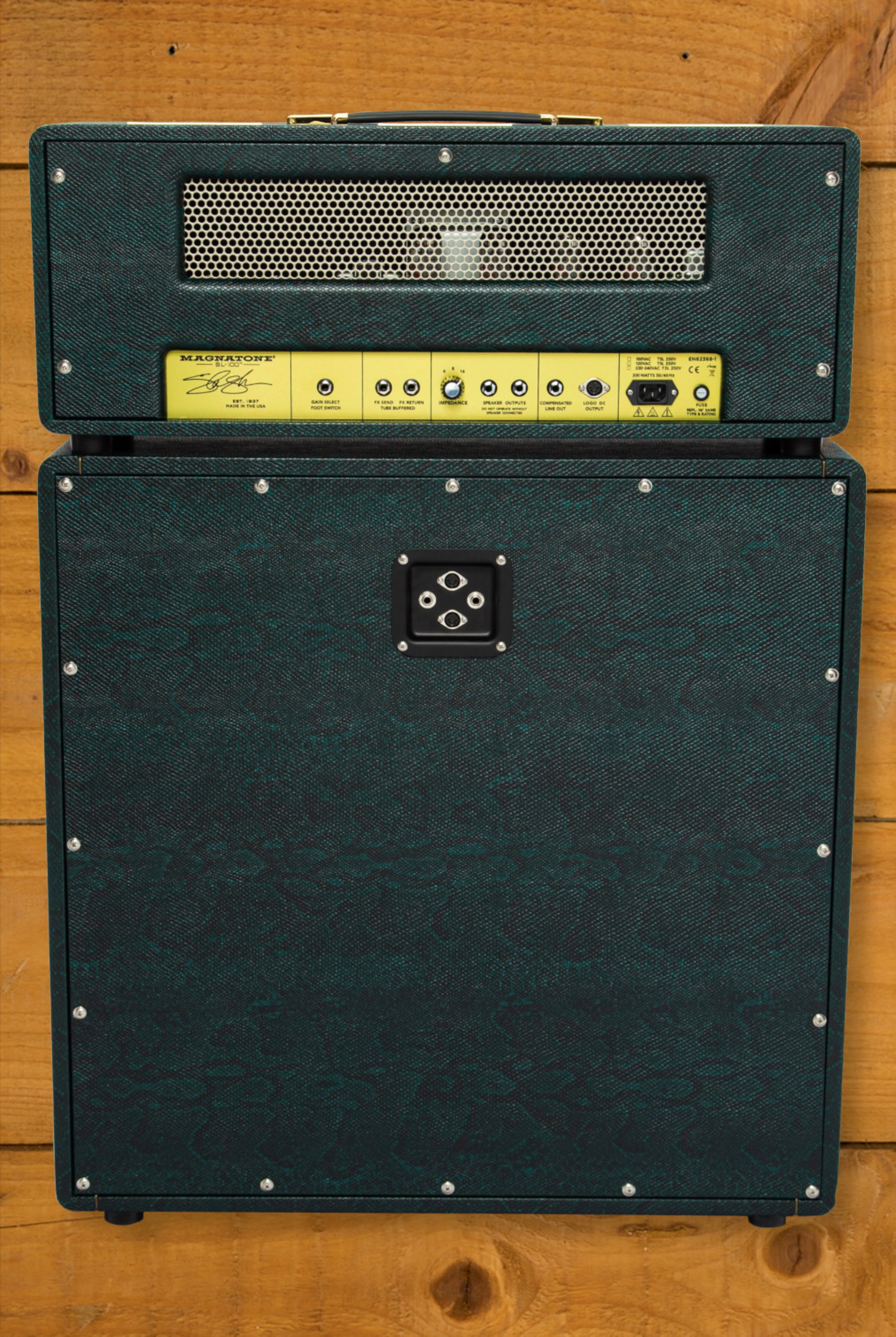 Paired with the SL-412 cabinet, loaded with Celestion Vintage 30 speakers, the half stack delivers bone-crushing sonic attack and visual appeal. Crafted from ¾" Baltic Birch wood with finger joints and a closed-back design, the cabinet showcases the same attention to detail that defines the Magnatone brand.