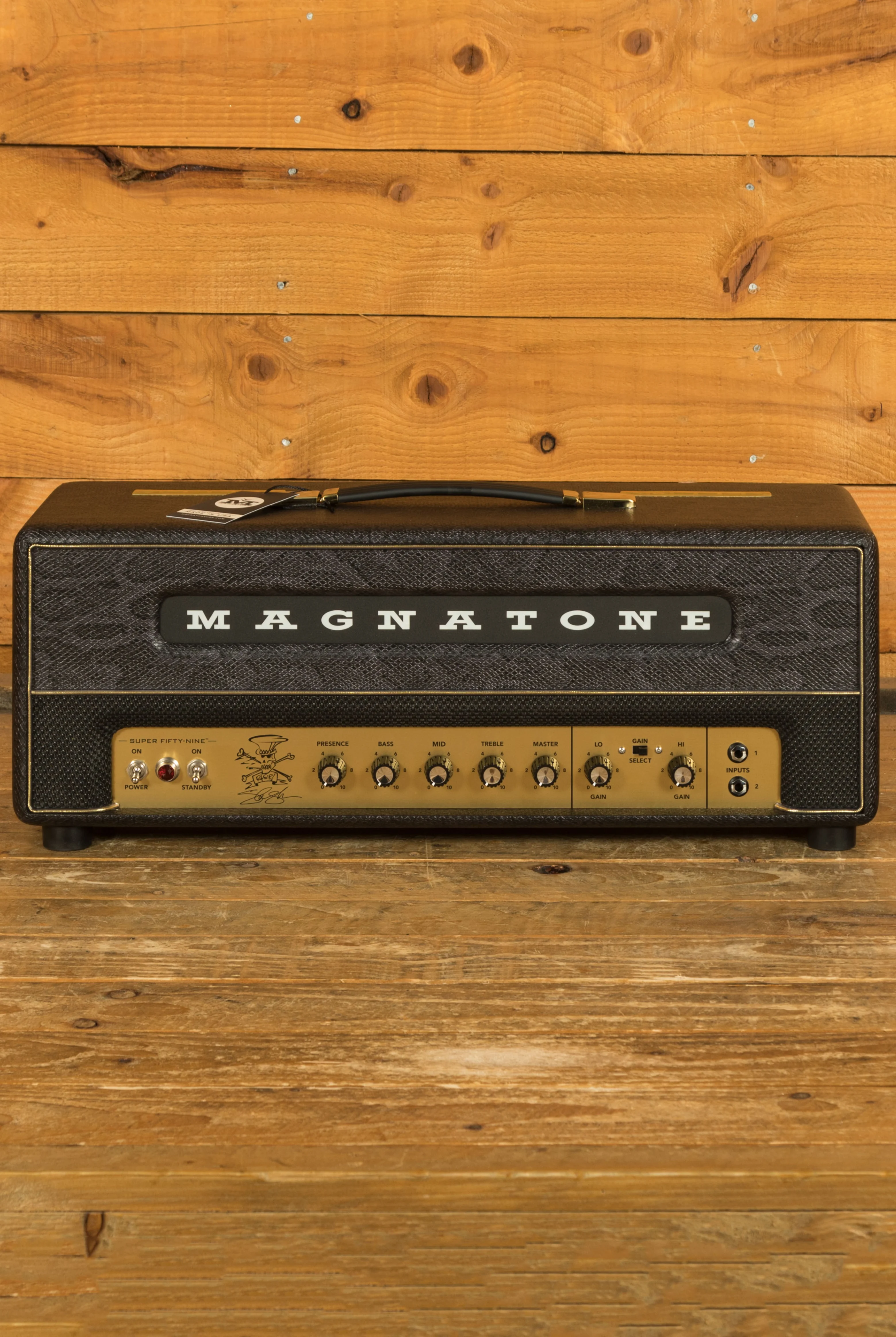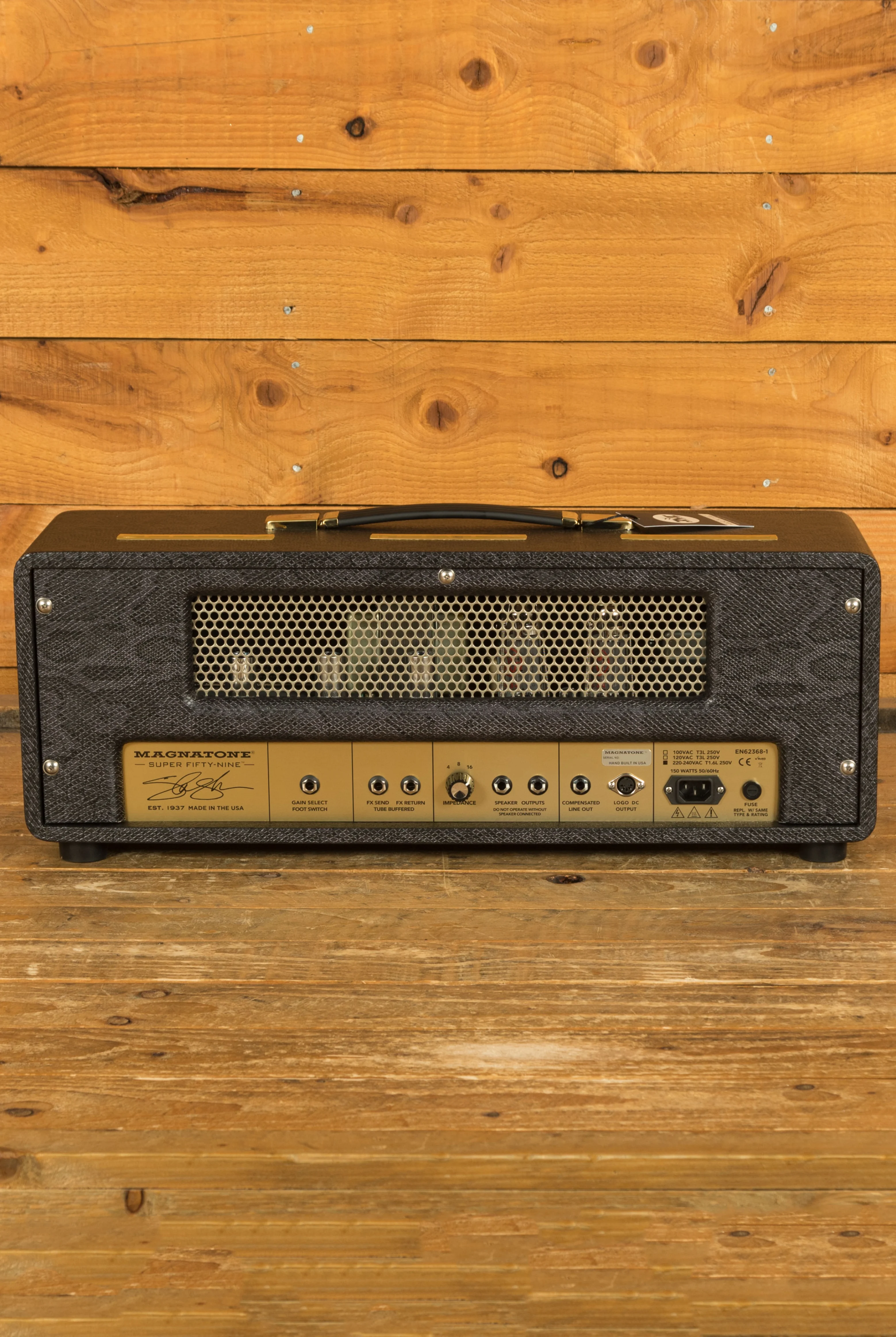 The Magnatone Super Fifty-Nine M80 is a 45-watt, EL34-powered tube amplifier that combines the gain structures of both the MKI and MKII models into a single, highly flexible format. This 80th Anniversary edition allows guitarists to access both low-to-medium gain tones from the MKII and the additional gain stage from the MKI, all controllable via a front panel switch or the included footswitch. This streamlined design gives players immediate access to a broad range of classic British-inspired tones without the need for multiple amplifiers.