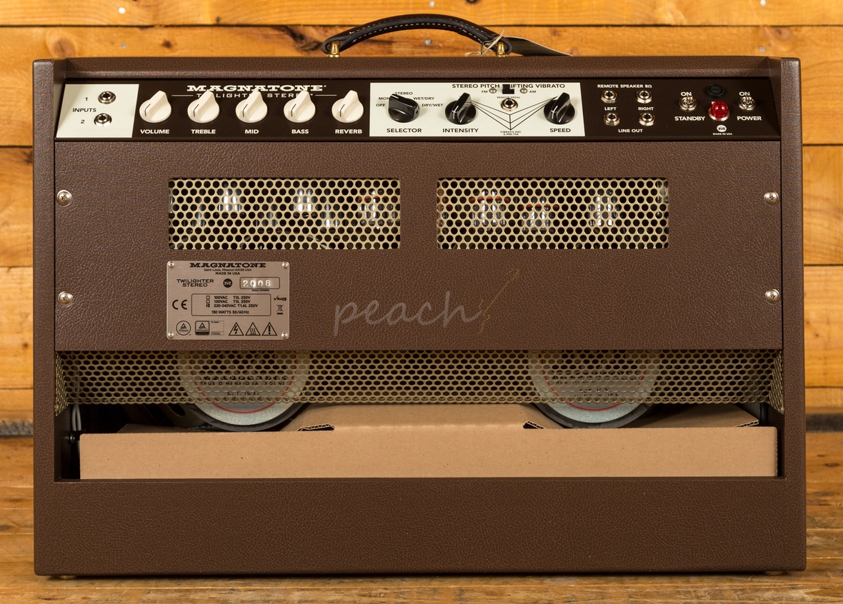 The Twilighter picks up were the classic American combo amps of the past left off. With 4 6V6 power tubes and a GZ34 rectifier, the Twilighter offers 22 watts of clean, robust tone in a 2x12" speaker combo that is light yet durable. Add the tube driven reverb, tremolo, and varistor true pitch shifting vibrato and you have a new American classic that is sure to please! Never before has this effect been recreated in its original form, Magnatone's Stereo Pitch Shifting Vibrato is truly dimensional sound.
