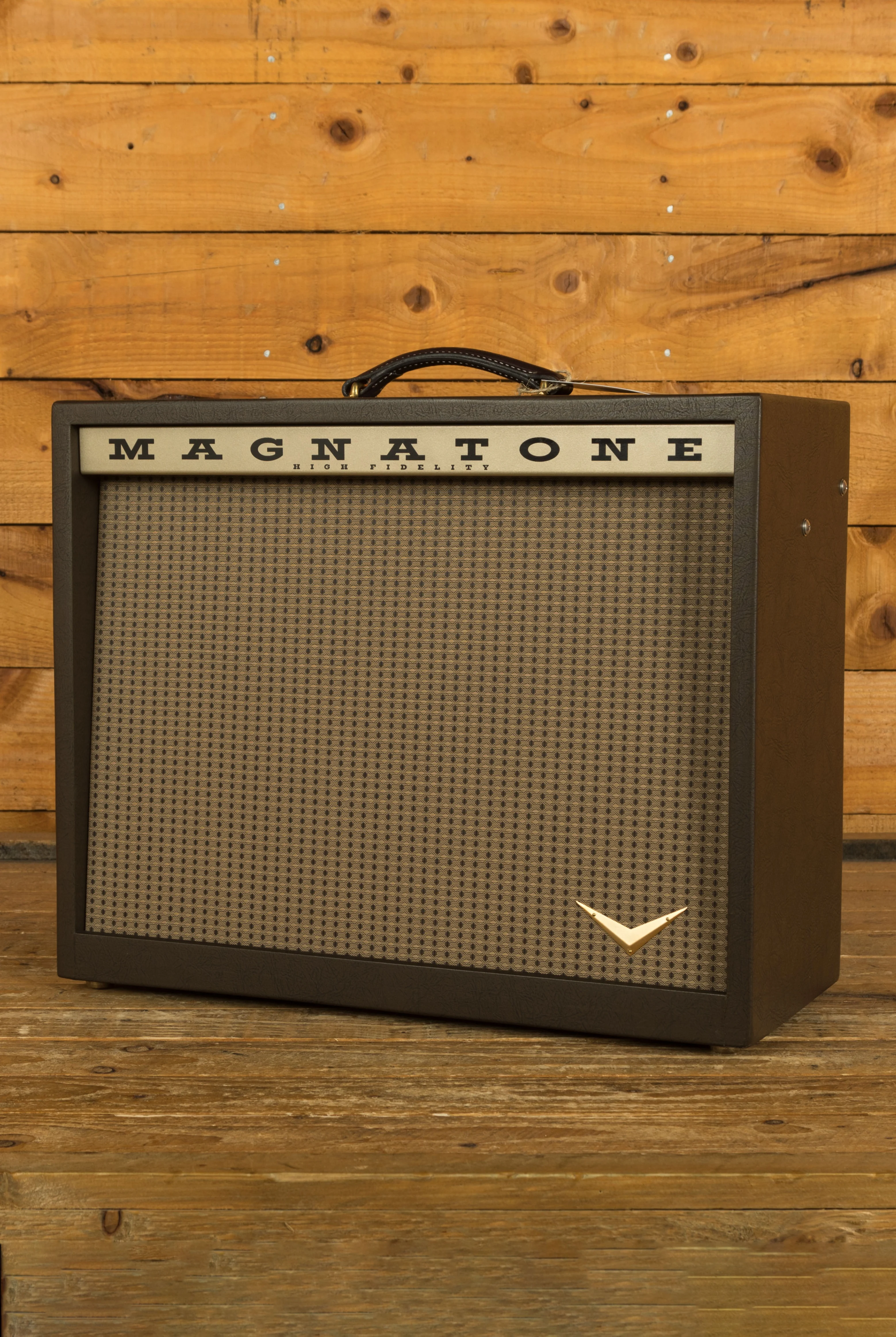 With the traditional Magnatone vintage brown and gold cosmetics and custom Magnatone 12" speaker, this popular tube amplifier is bright and lively, full of colour and harmonics.