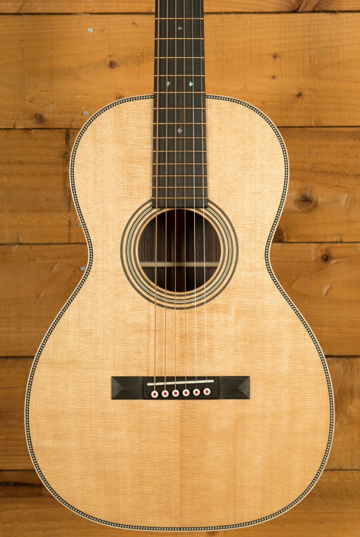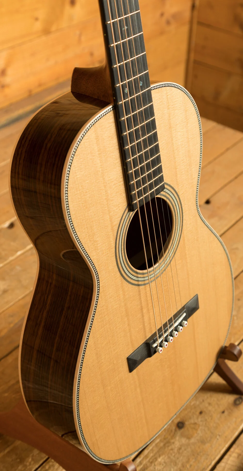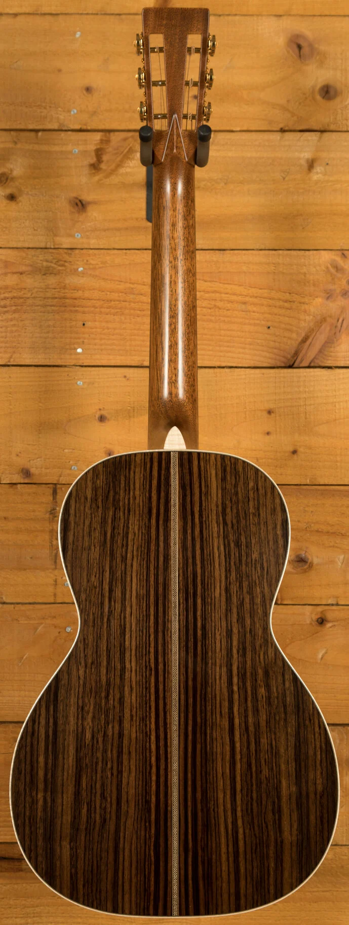 The 012-28 offers an incredible playing experience, making it one of the hottest models in the Modern Deluxe Series. Its packed with tonnes of custom features and modern technology. With an incredible Spruce top you get a really dynamic and vibrant tone. Pair that with the East Indian Rosewood back and sides and you have a tonal dream team, it's visually and tonally stunning. The top also has the amazing VTS treatment, which allows Martin to make a brand new guitar sound like an 80 year old vintage instrument. The top is heat treated to remove the moisture, which allows it to have the quickest response and the most detailed tone. The body is beautifully decorated with European Flame Maple binding and a Bold Herringbone top inlay.