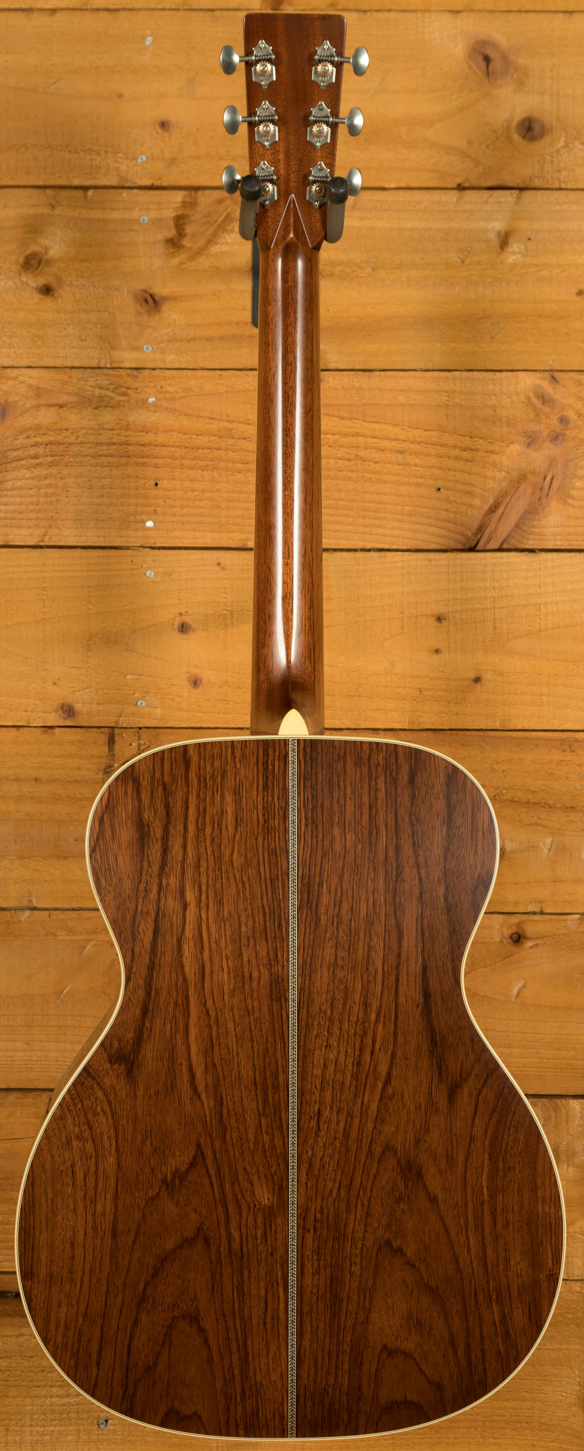 This guitar is built with a solid Adirondack spruce top treated with an antique toner, offering a rich, resonant tone with excellent clarity and projection. The solid Guatemalan rosewood back and sides enhance warmth and depth, making it well-suited for both fingerstyle and strumming techniques. Inside, the scalloped Adirondack spruce Golden Era-inspired bracing increases resonance and sustain, ensuring a powerful, full-bodied sound.