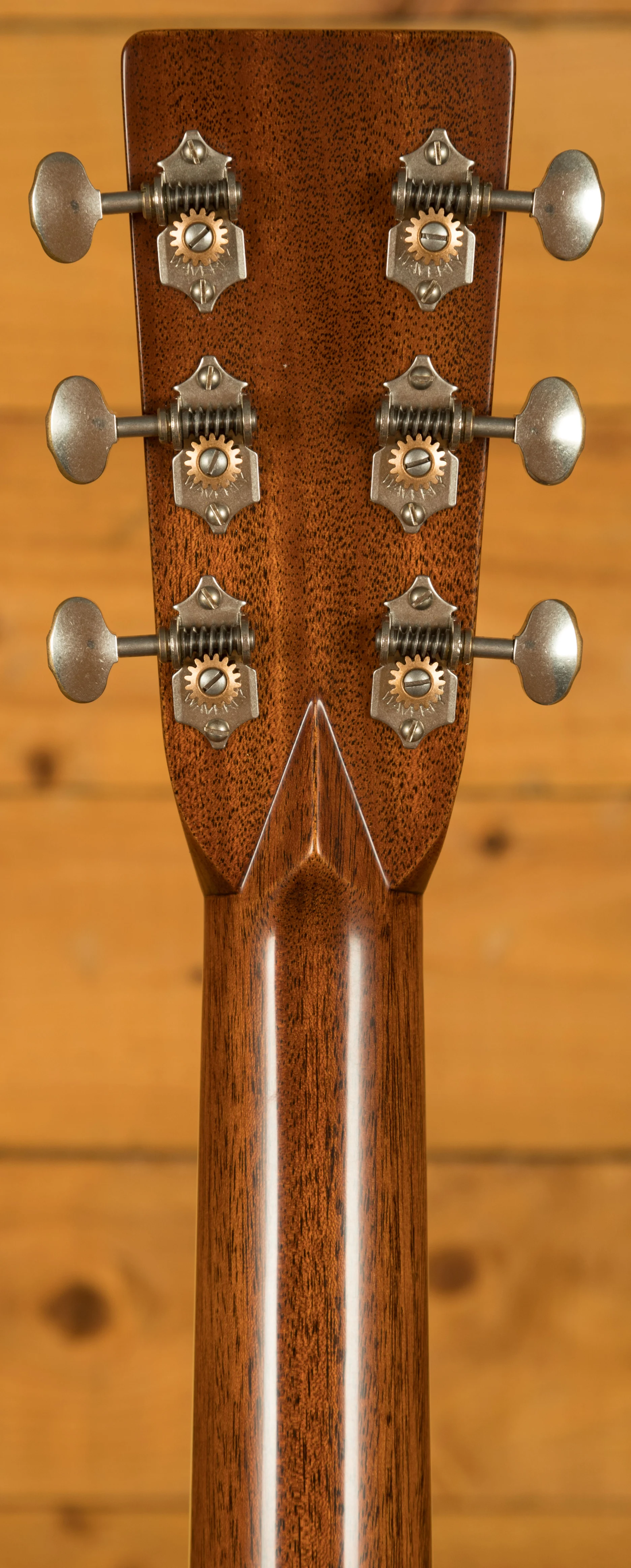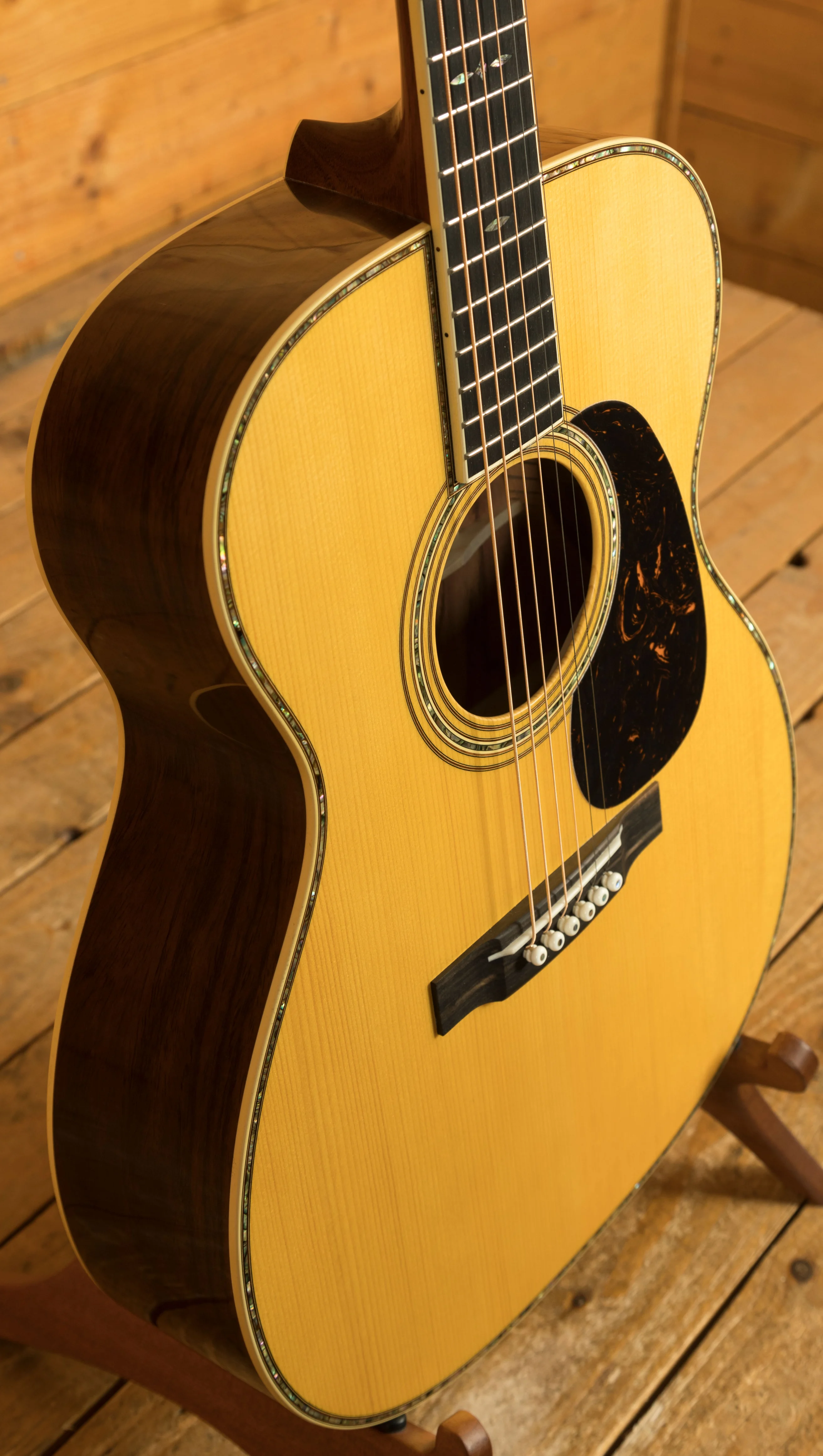 For playability, the genuine mahogany neck is shaped to an Authentic 1939 profile with a slightly thinner nut width, providing a comfortable grip for a variety of playing styles. The ebony fingerboard, adorned with Golden Era 42-style snowflake inlays, enhances both aesthetics and smooth playability. The combination of these features ensures a vintage-inspired feel with modern precision.