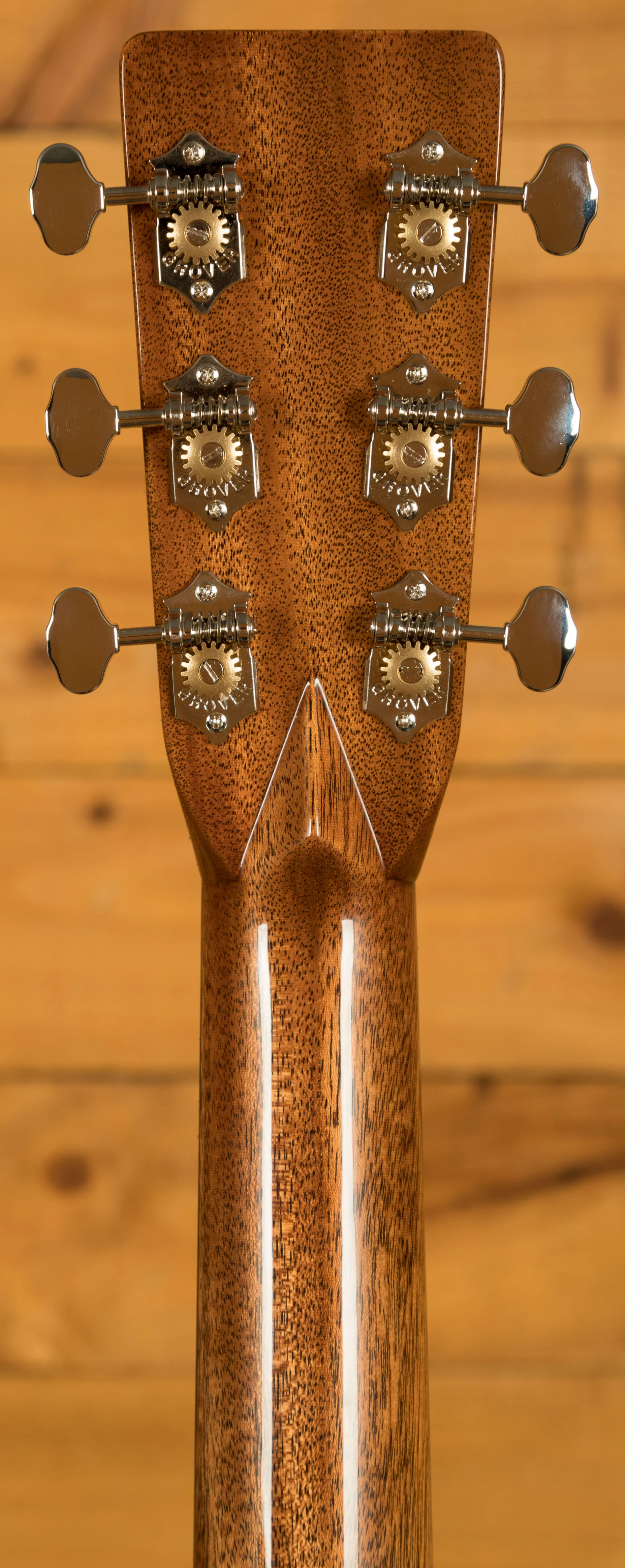 The neck of the 000-EC 30th Anniversary is crafted from genuine mahogany and shaped in an Authentic 1939 profile, inspired by the pre-war Martin Clapton famously played on MTV Unplugged. This vintage-style neck features a slightly narrower 1 11/16" nut width, making it comfortable for both fingerstyle and flatpicking techniques. The ebony fingerboard is adorned with Golden Era 42-style snowflake inlays, combining elegant aesthetics with smooth playability. The short scale length contributes to a softer feel, reducing string tension and making fretting easier.