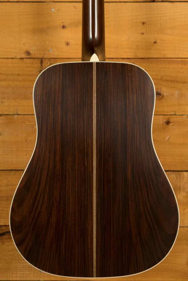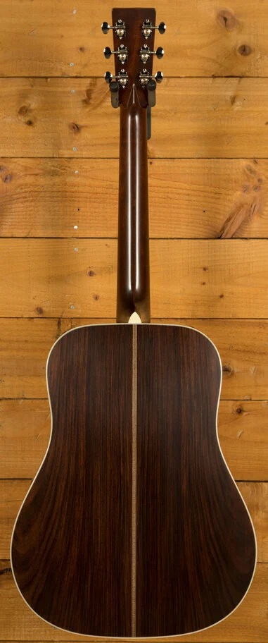 Transport yourself to the heart of musical history with the Martin D-28 Authentic 1937. Imagine the year 1937, a time of innovation and artistry. The forward-shifted hand-scalloped X-bracing, a hallmark of that era, is flawlessly recreated in this instrument. This structural marvel not only enhances the guitar's stability but also contributes to its unparalleled resonance and projection. The top is adorned with the finest Adirondack spruce, a wood known for its responsiveness and exquisite tonal properties. As your fingers grace the strings, you'll be greeted by rich, harmonically rich notes that carry the unmistakable timbre of a bygone era.