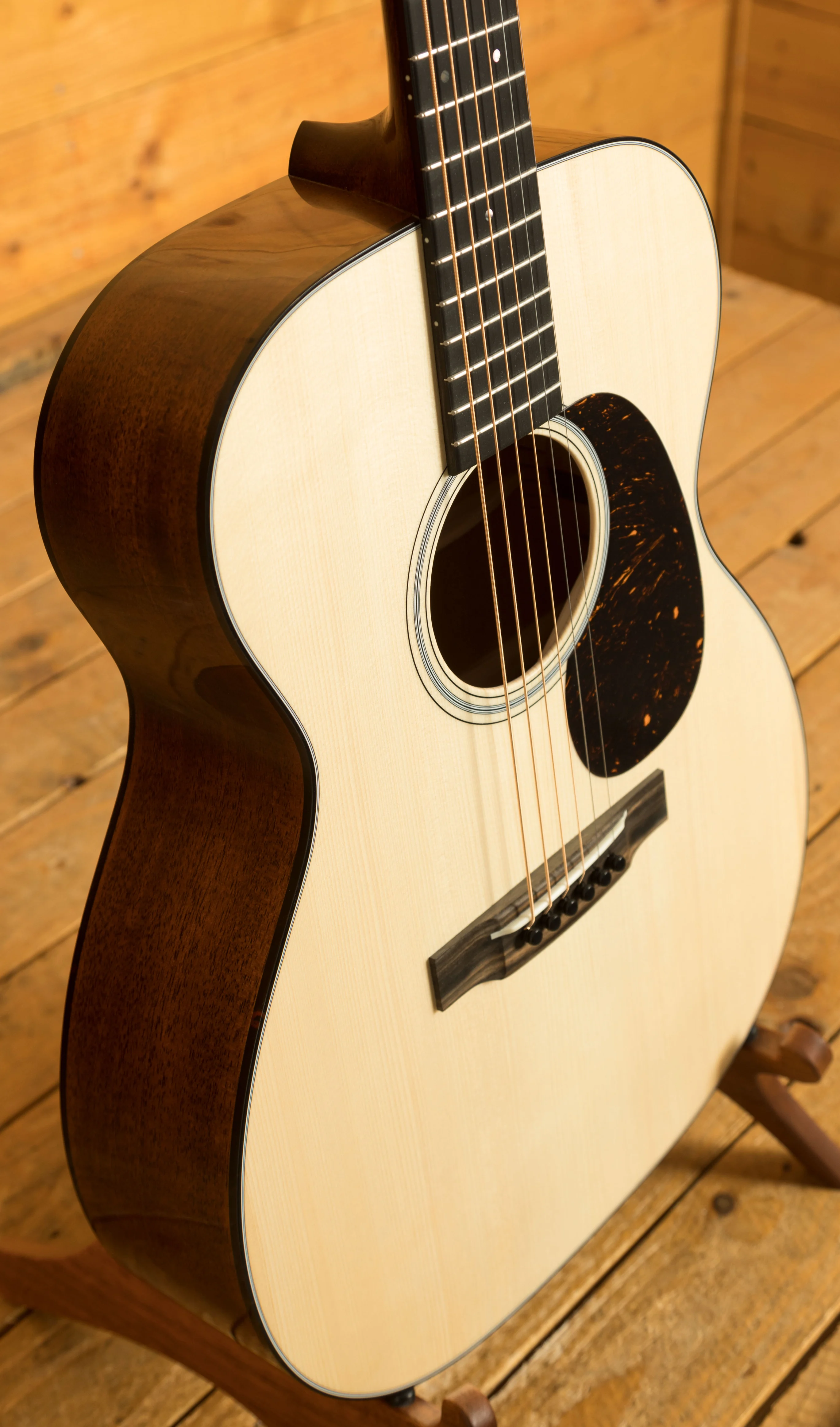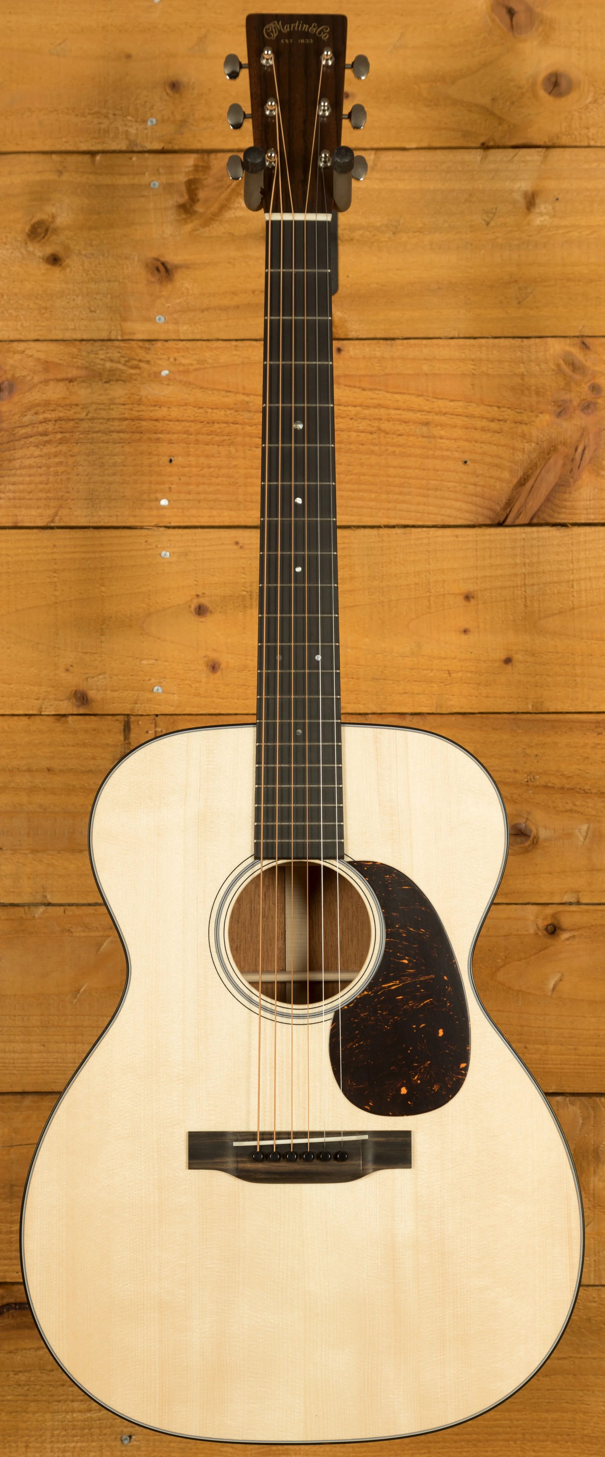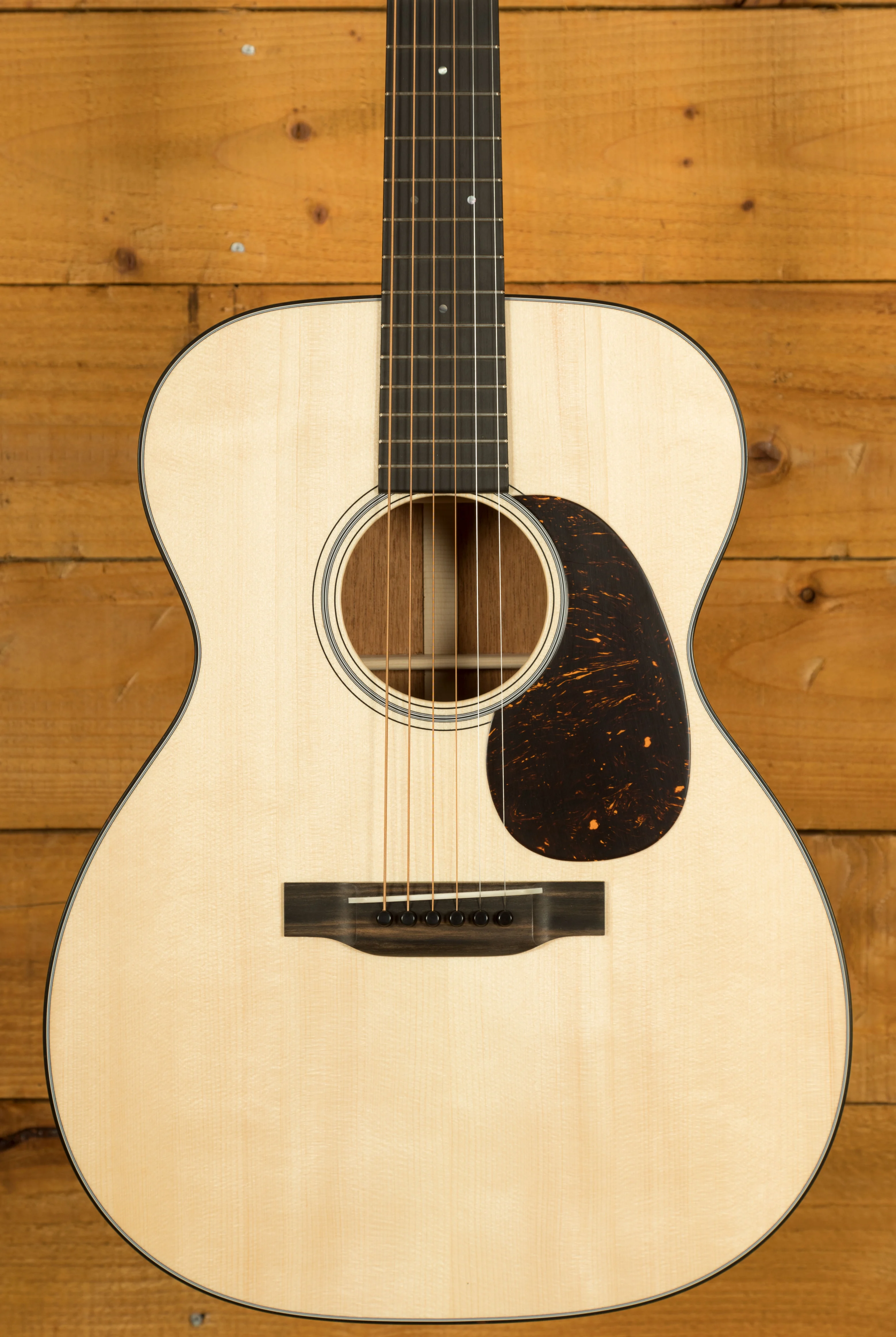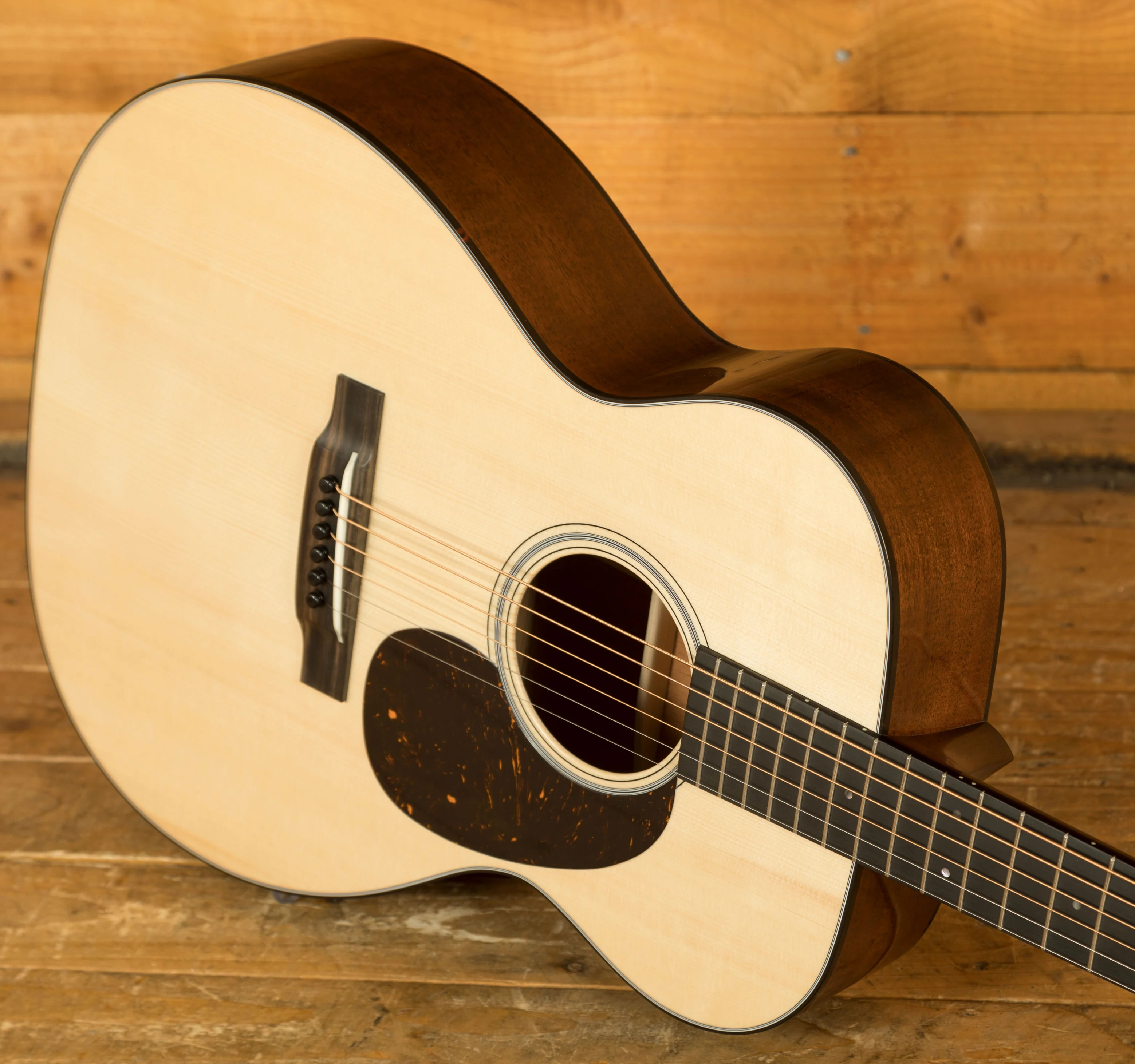 The C.F Martin Custom Shop 000-18 1937 offers authentic vintage styling, every element of this guitar has been designed to offer a true vintage playing experience. With a clear vintage gloss Adirondack Spruce top and genuine Mahogany back and sides, thanks to an authentic 1937 forward shifted X-brace the Custom Shop Expert 000-18 is equally at home fingerpicking or strumming big, brash chords. The stunning Spruce top is topped off with an Old Style 18 Multi-Stripe Rosette and Old Style 18 Abalone inlays, it looks super slick.
