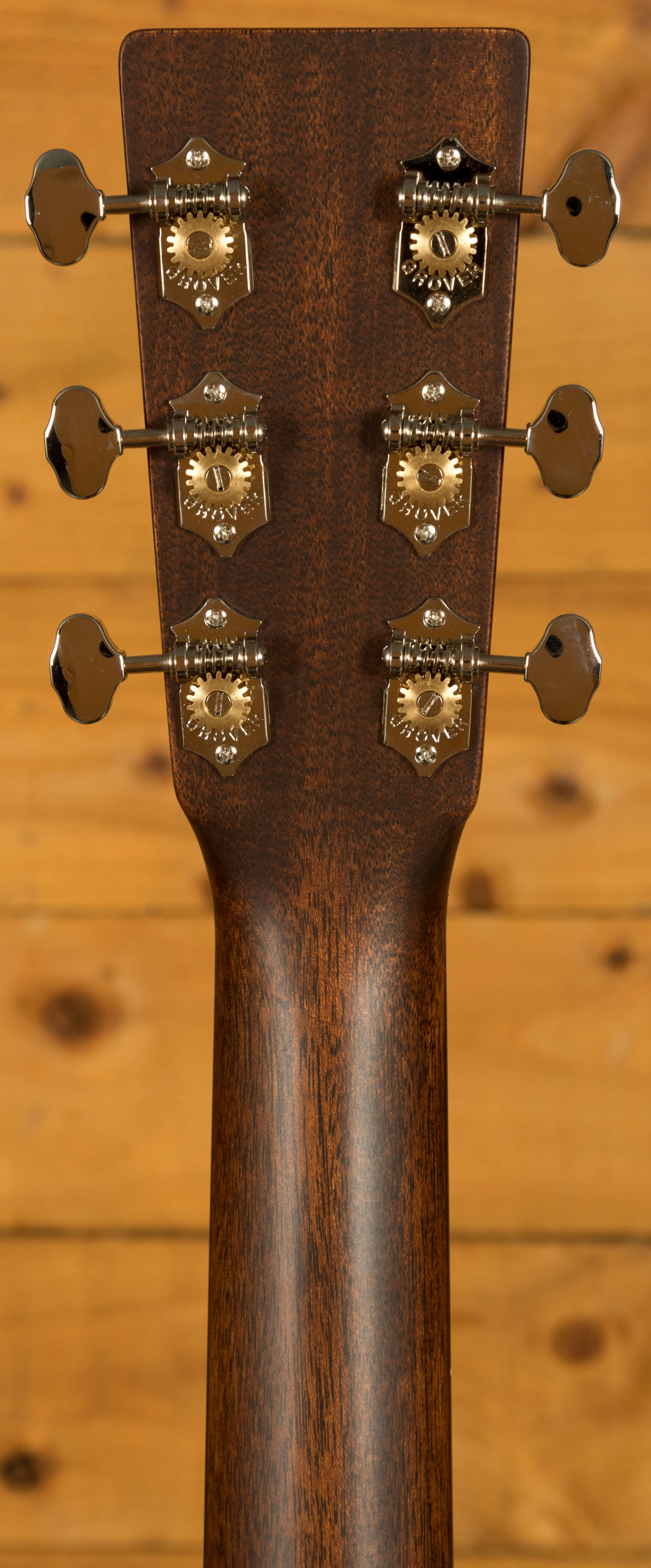 To help capture not only the visual beauty but also the tonal heaven of the Golden Era, Martin have used Adirondack Spruce tops (as opposed to Sitka) and Golden Era X-bracing. Adirondack offers lots of volume and can be pushed hard whilst staying clear and crisp. The Golden Era X-bracing is also made of Adirondack - 1/4" thick but then carefully hand-shaped and scalloped for tonal bliss. This style of bracing was used until around 1945. It is lighter in mass and allows the top to vibrate freely, with extra bass produced. It was stopped as people were using high-gauge strings and Martin wanted to combat the extra-tension this gave to their lightly built guitars by giving extra stiffness to the top braces.