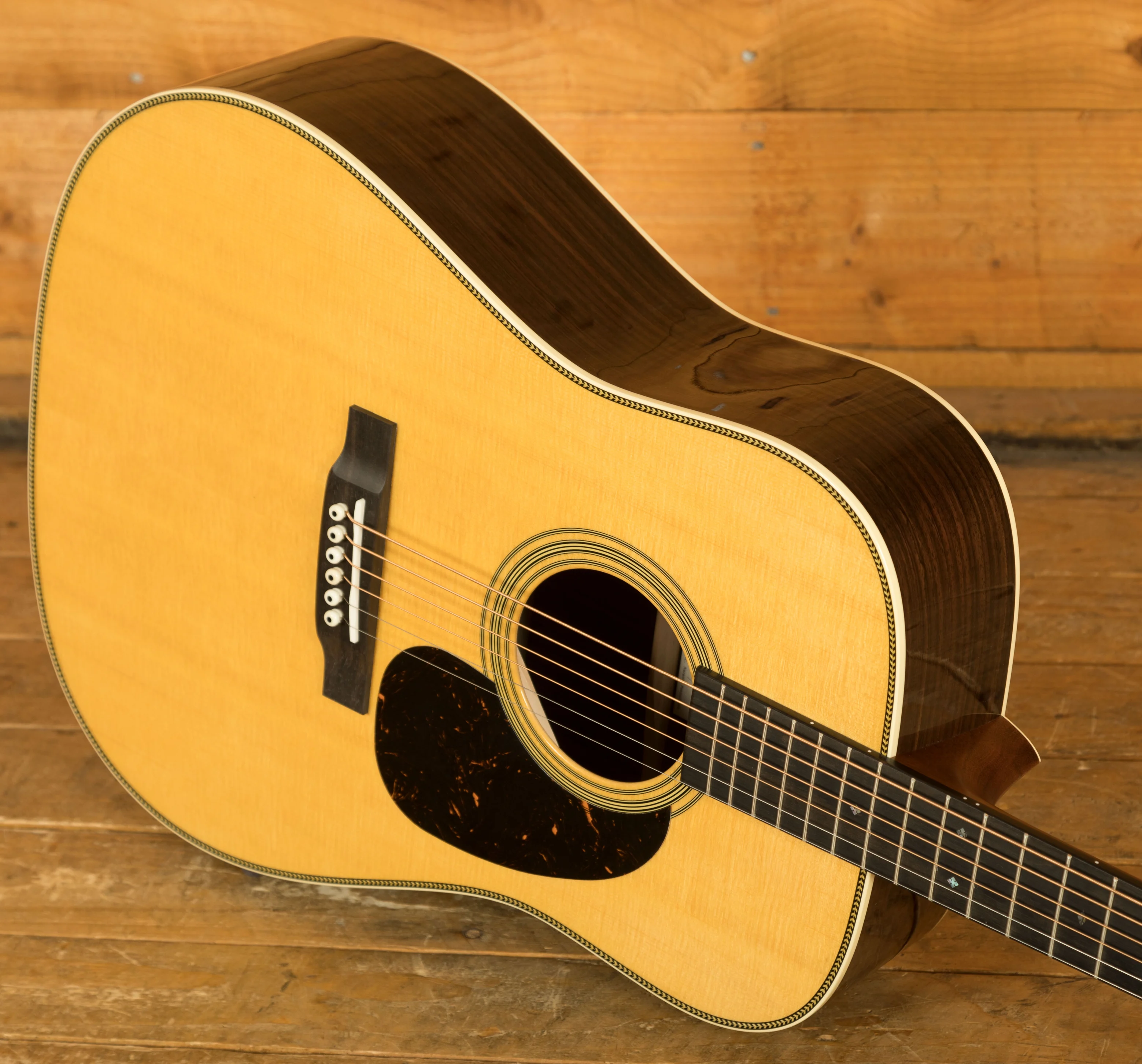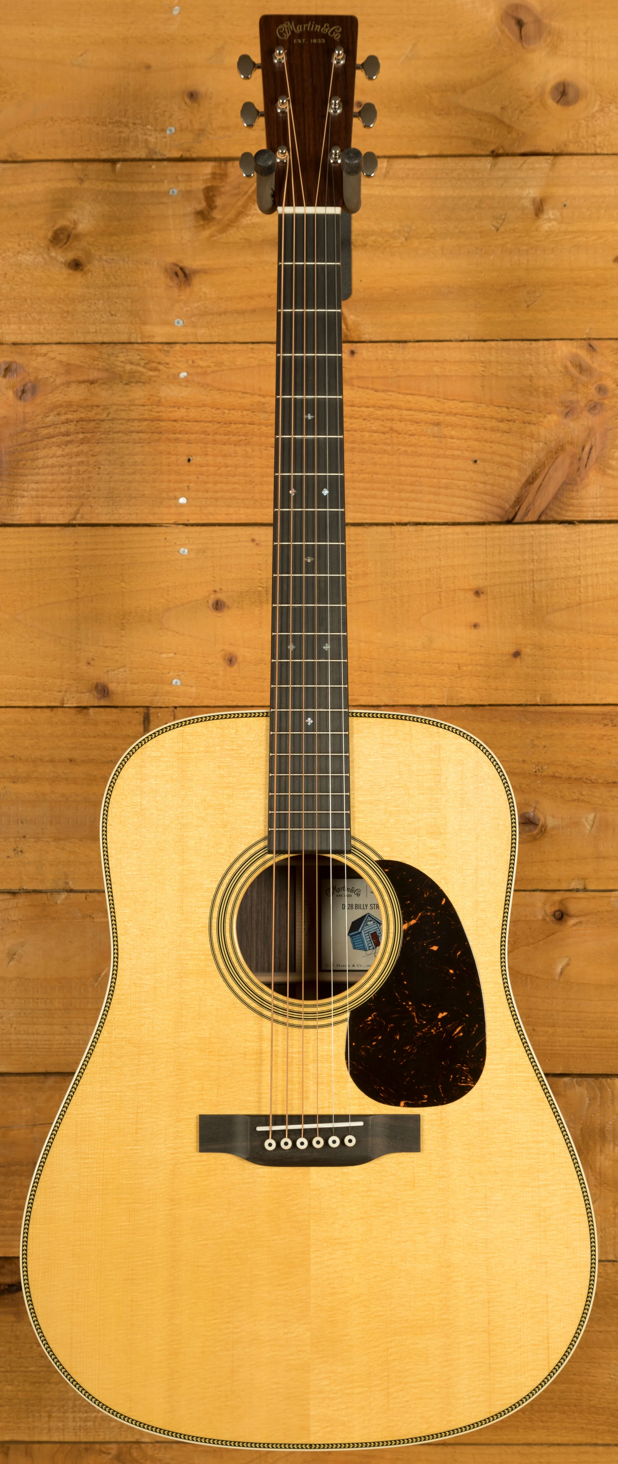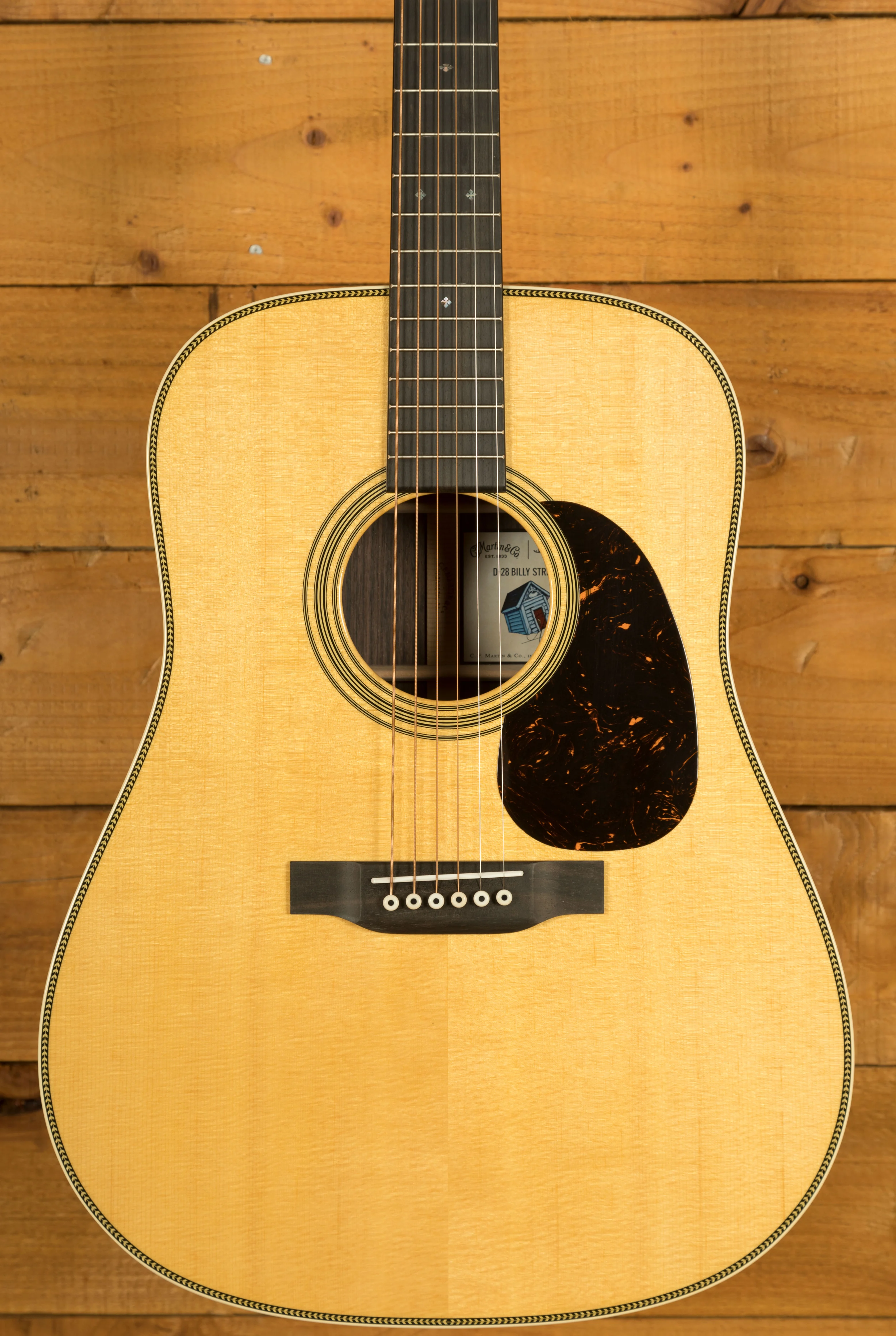 Inspired by the cherished 1940 D-28 of bluegrass virtuoso Billy Strings, the Martin D-28 Billy Strings model represents a fascinating blend of vintage aesthetics and contemporary playability. This signature Dreadnought isn't simply a replica; it's a carefully crafted instrument designed to meet the demands of Billy's lightning-fast, intricate playing style while retaining the timeless appeal of a classic Martin.