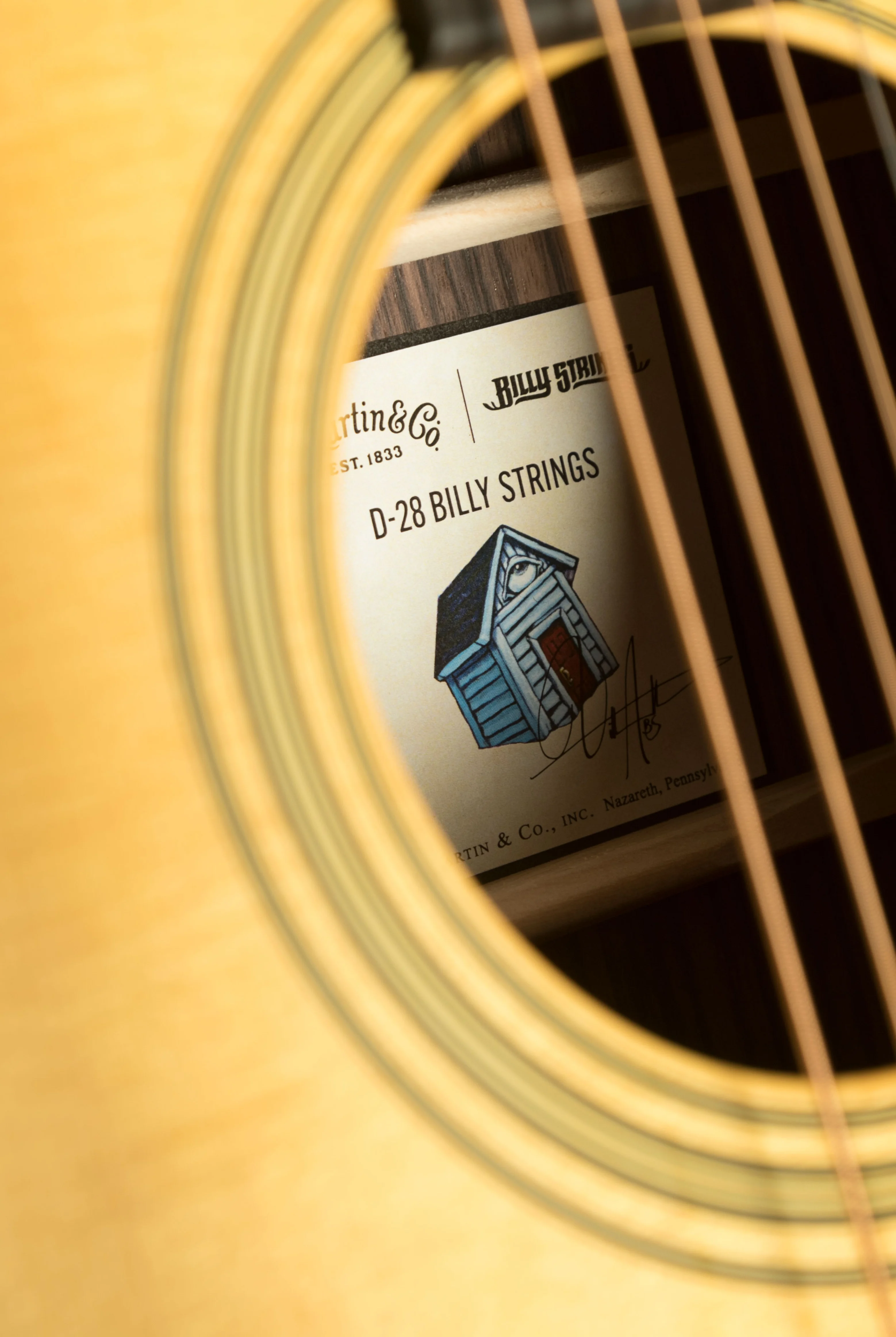 In essence, the Martin D-28 Billy Strings is a testament to the enduring legacy of Martin guitars and a testament to Billy Strings' innovative approach to bluegrass. It seamlessly blends traditional craftsmanship with modern playability, mirroring Billy's own genre-bending musical style. As a final touch of authenticity, each guitar features a custom paper label with Billy's pre-printed signature and a unique graphic.